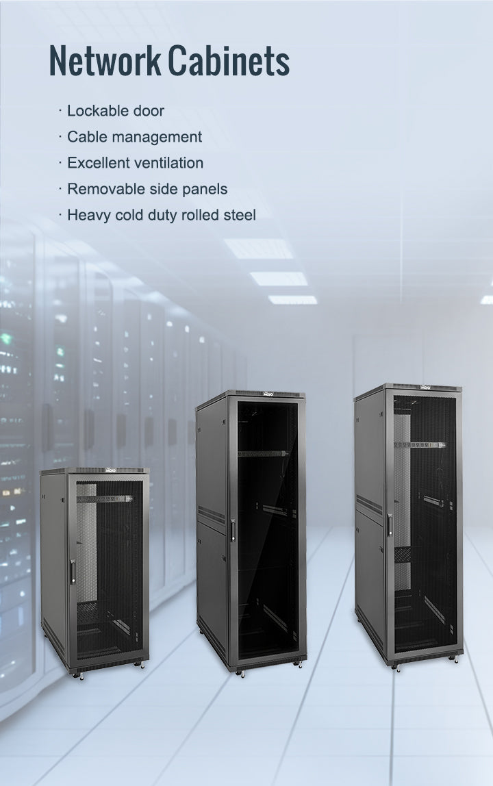 Cable entry at the top and bottom with cable manager finger to run cable through out the cabinet.