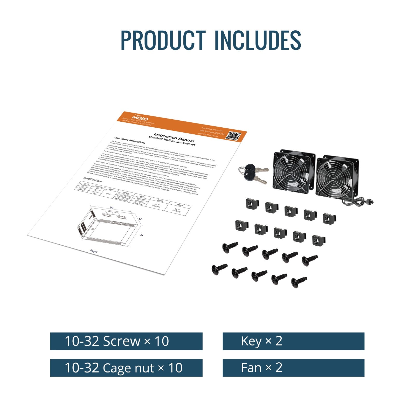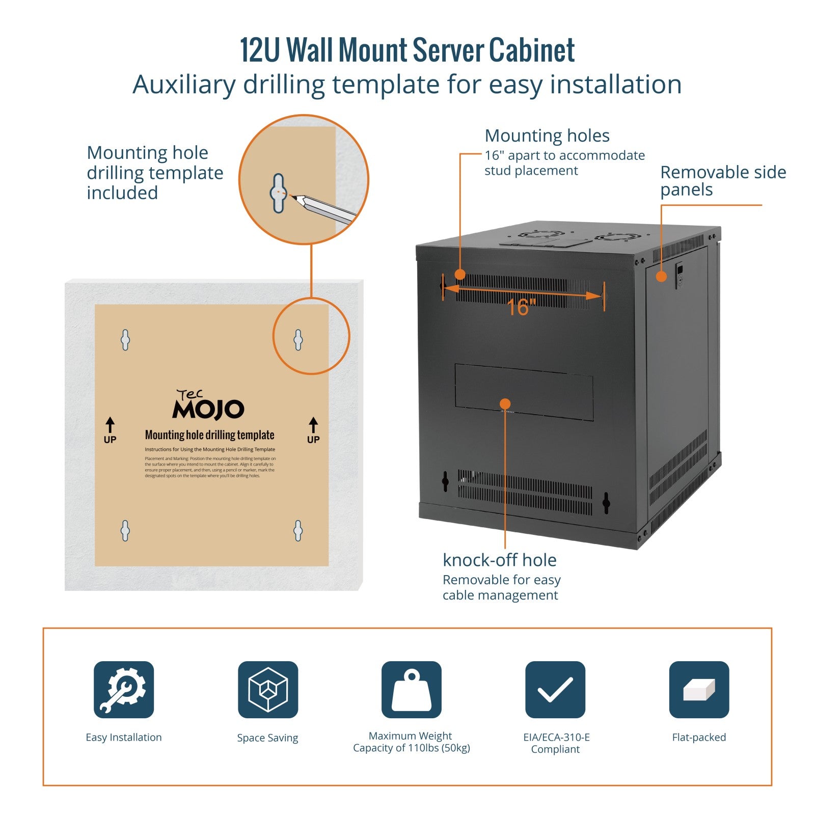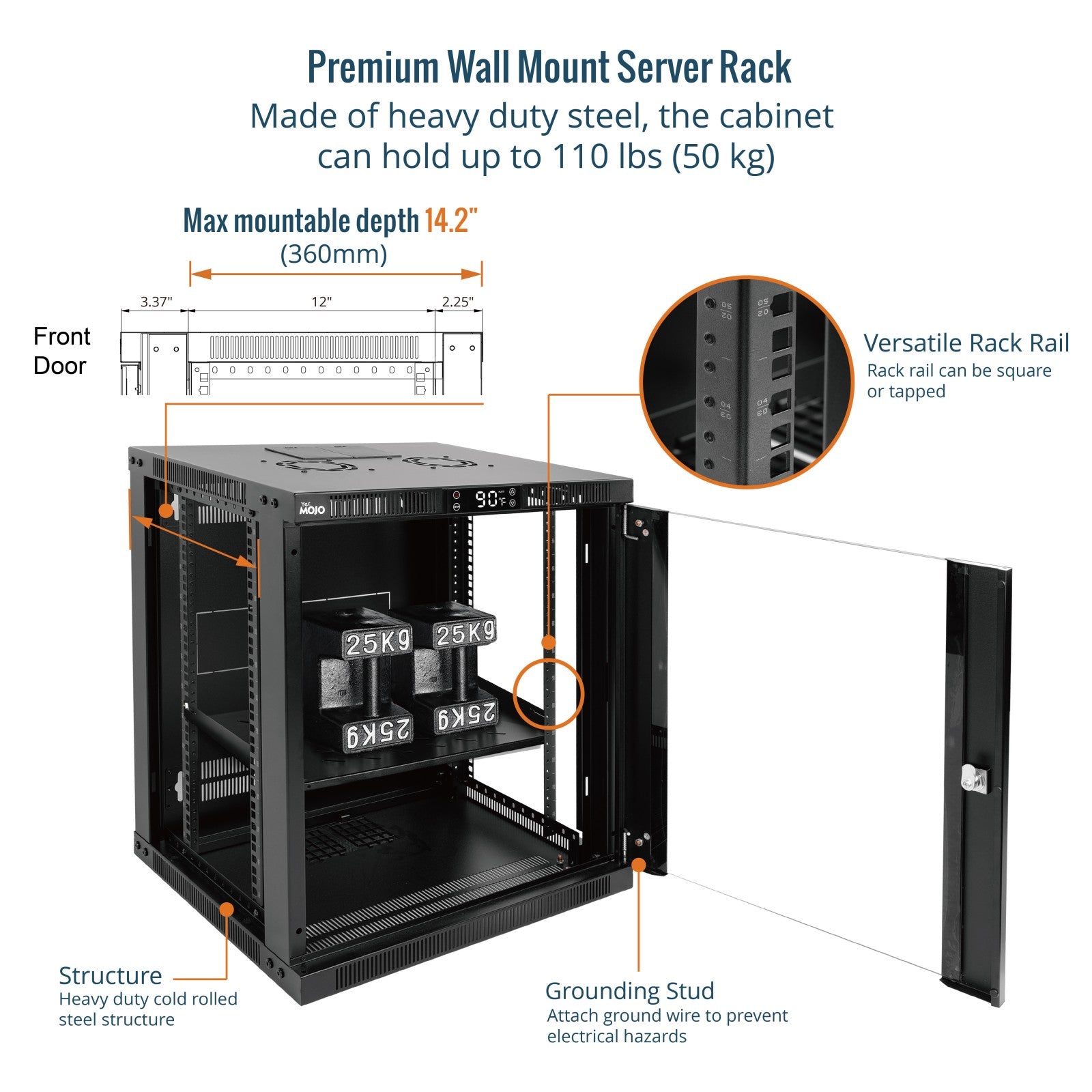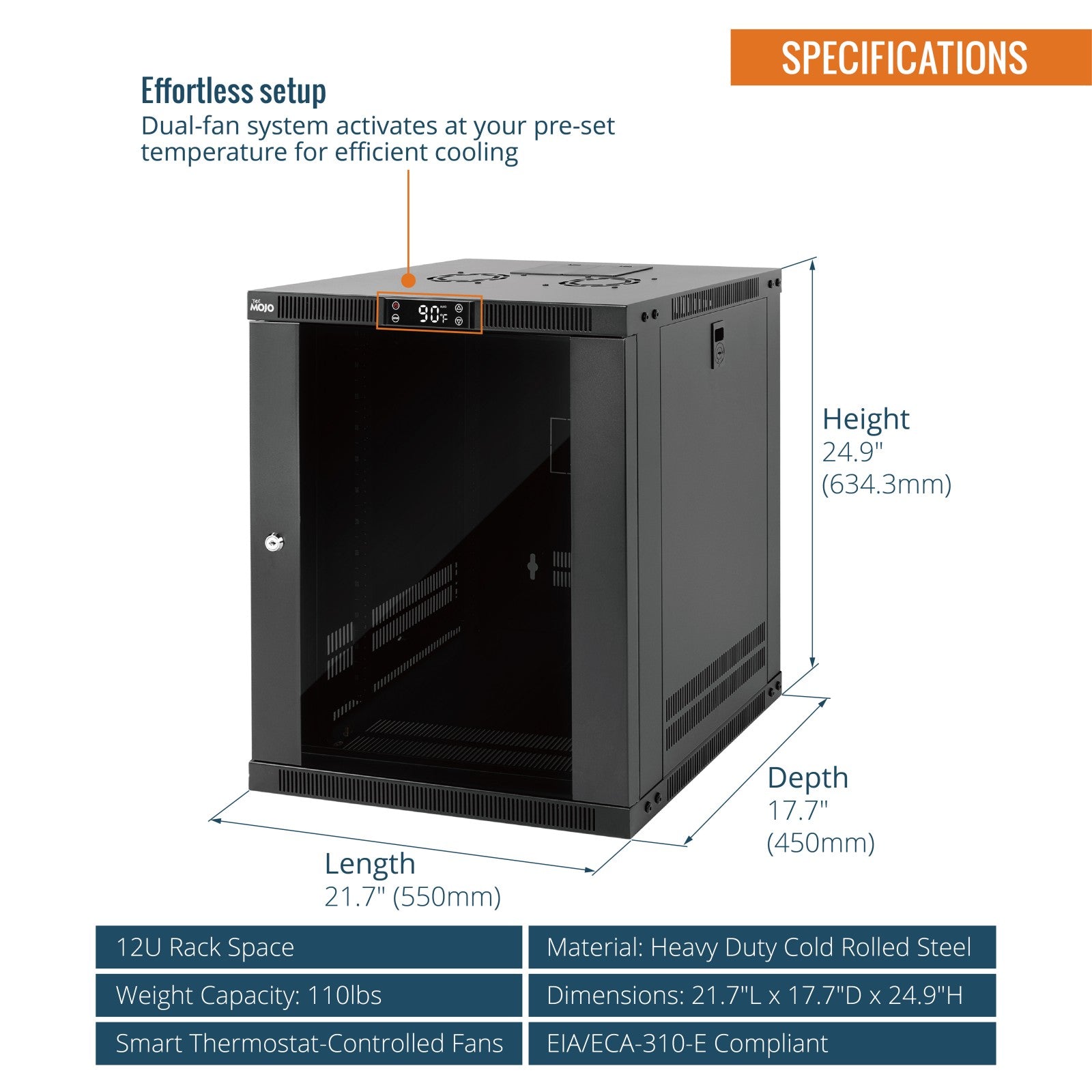 Tecmojo 12U Wall Mount Rack with Thermostat, 17.7inch Depth Enclosed Server Cabinet with 2 Cooling Fans,Lockable Door & Hardware,12U Rack for 19inch Equipments,Glass Door
