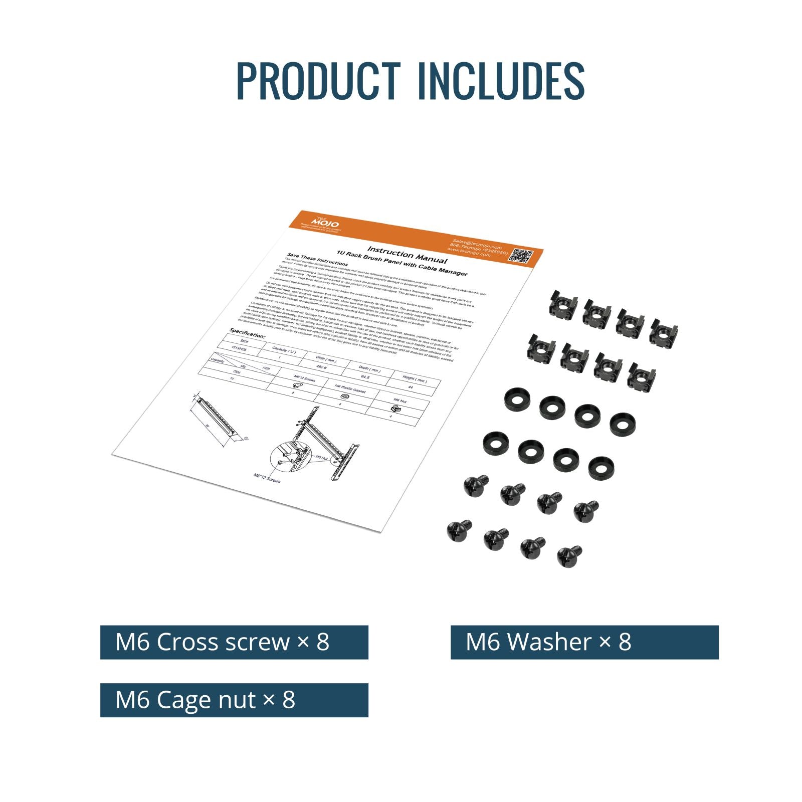 Tecmojo 1U Rack Brush Panel for Cable Entry&Management with Tidy Brush for 19 inch Equipment(2pack)