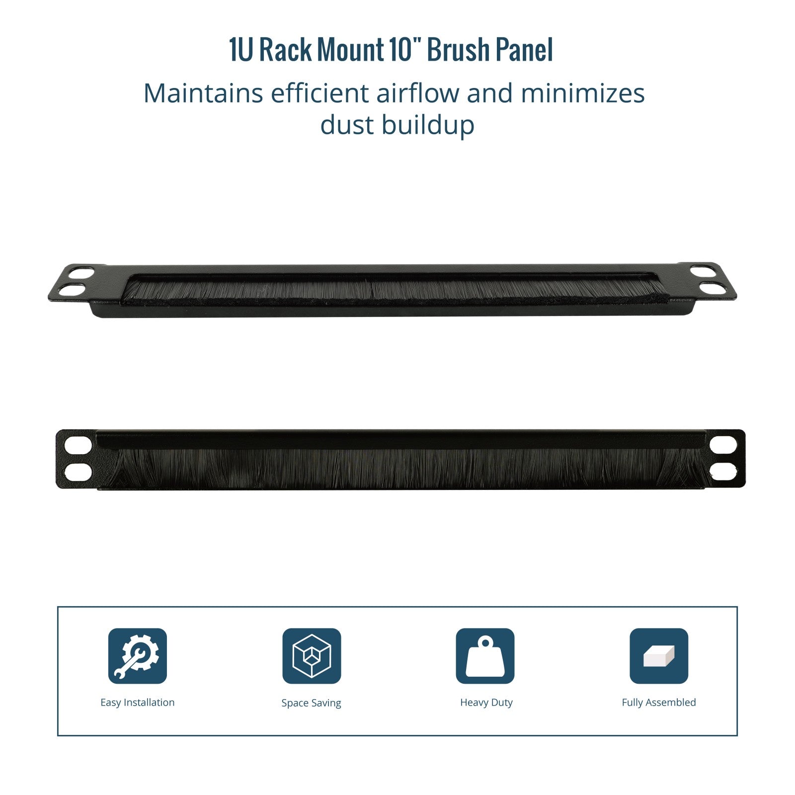 1U Rack Mount Brush Panel Cable Manager:Compatible with All 10" Racks Dense Black Nylon Brush:Keeps cable organized and prevents dust entry Maintains efficient airflow and minimizesdust buildup