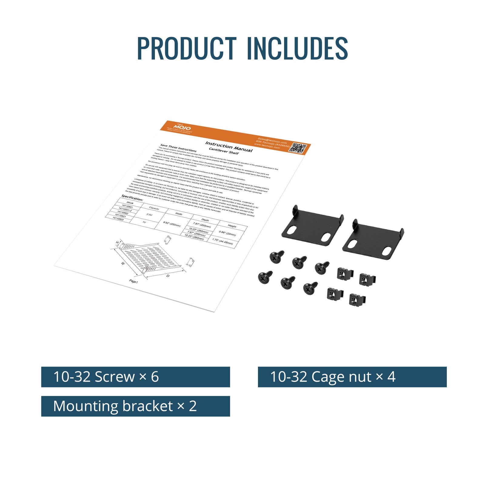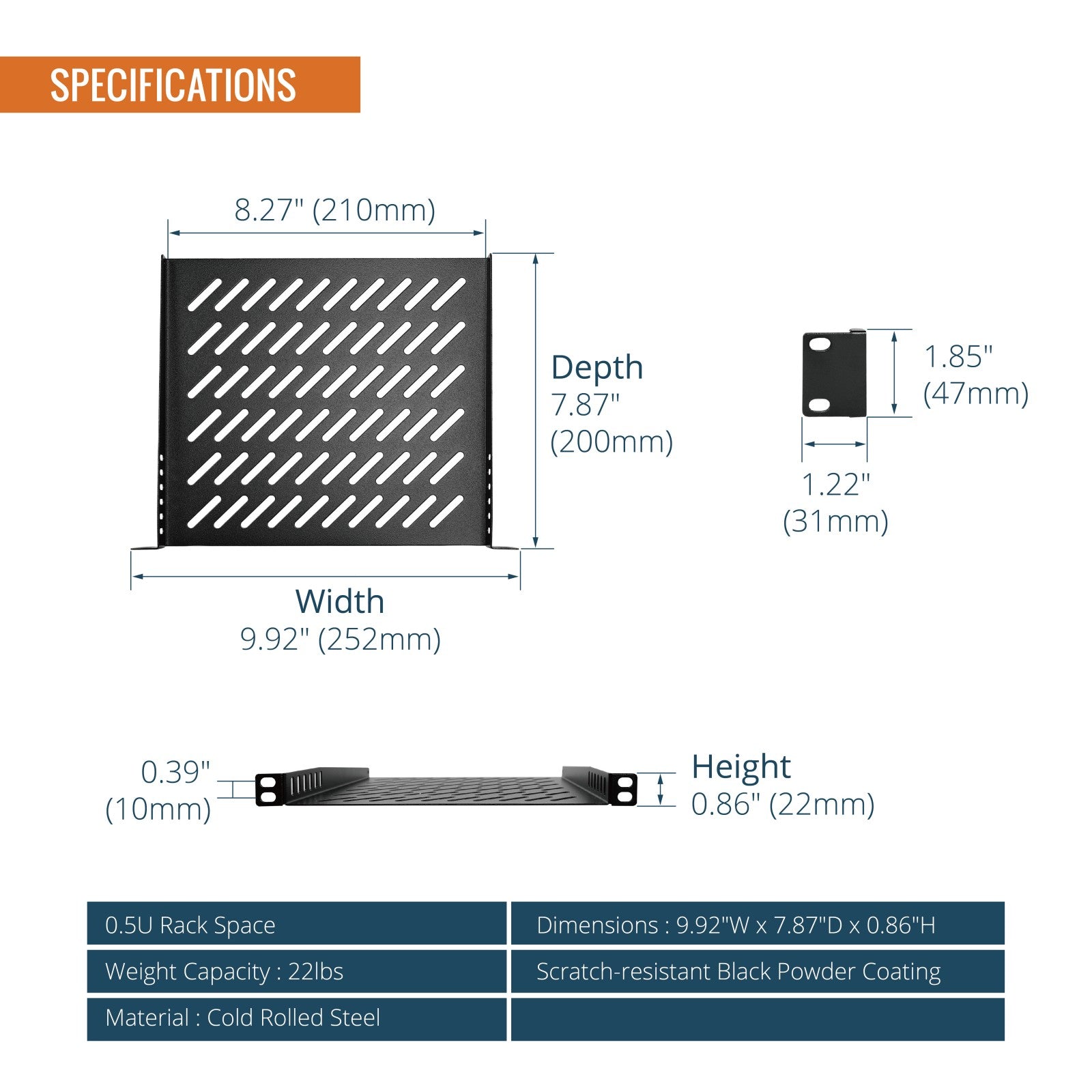 Tecmojo 0.5U Rack Mount Shelf for 10" Server Rack 7.87" Deep Vented Cantilever Tray