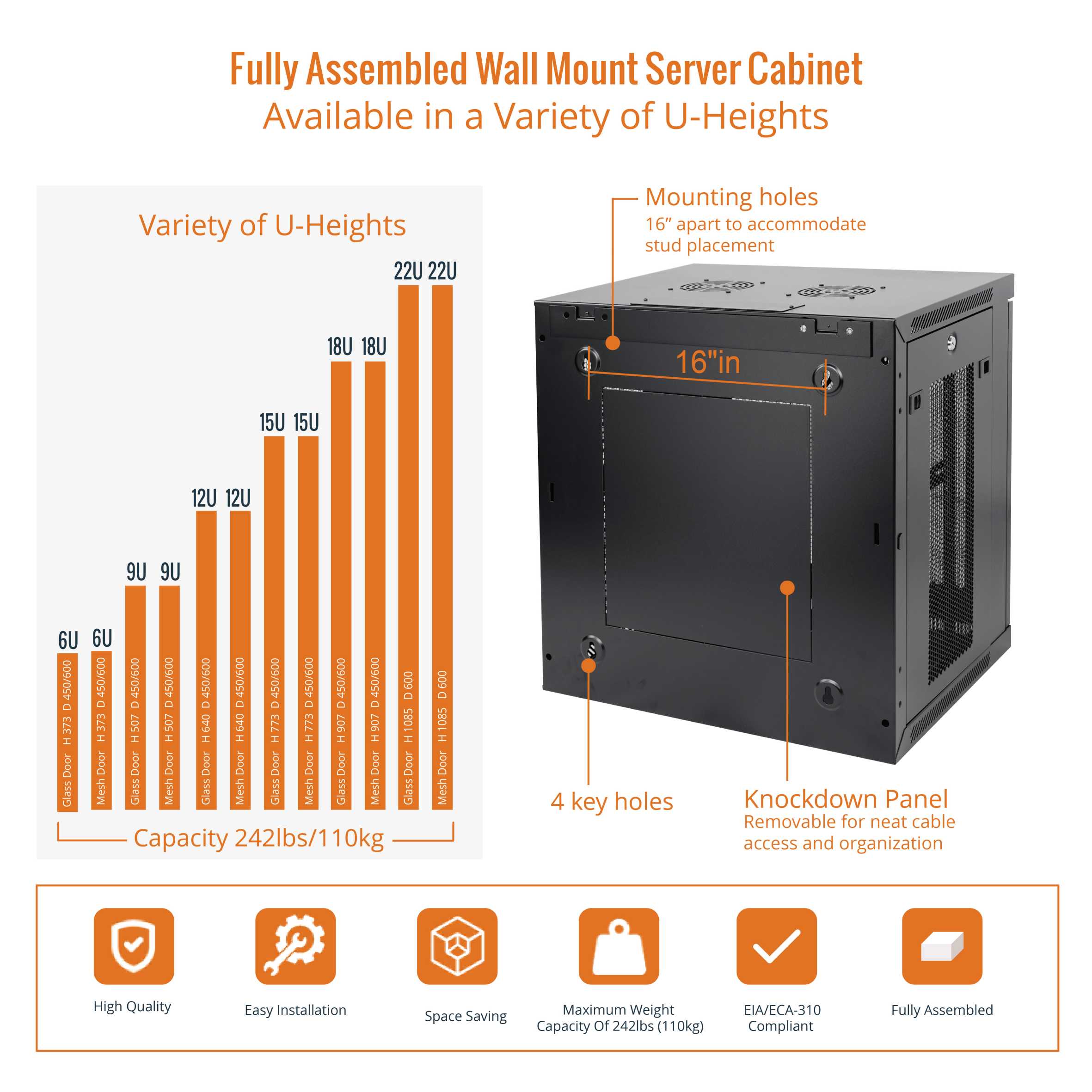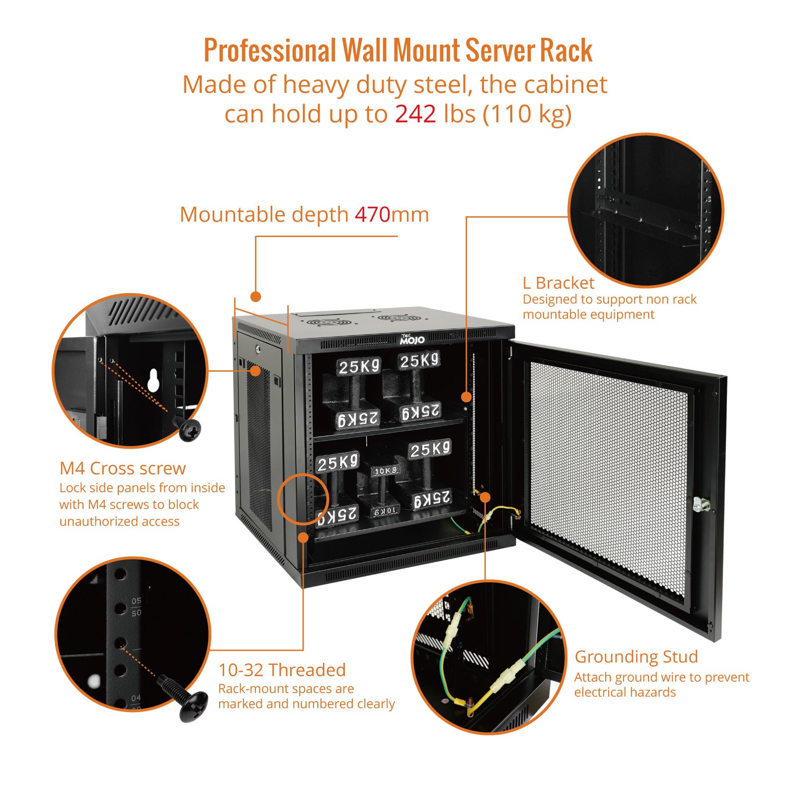 Tecmojo 12U 600mm Depth Mesh Door Professional Wall Mount Cabinet( Fully Welded)