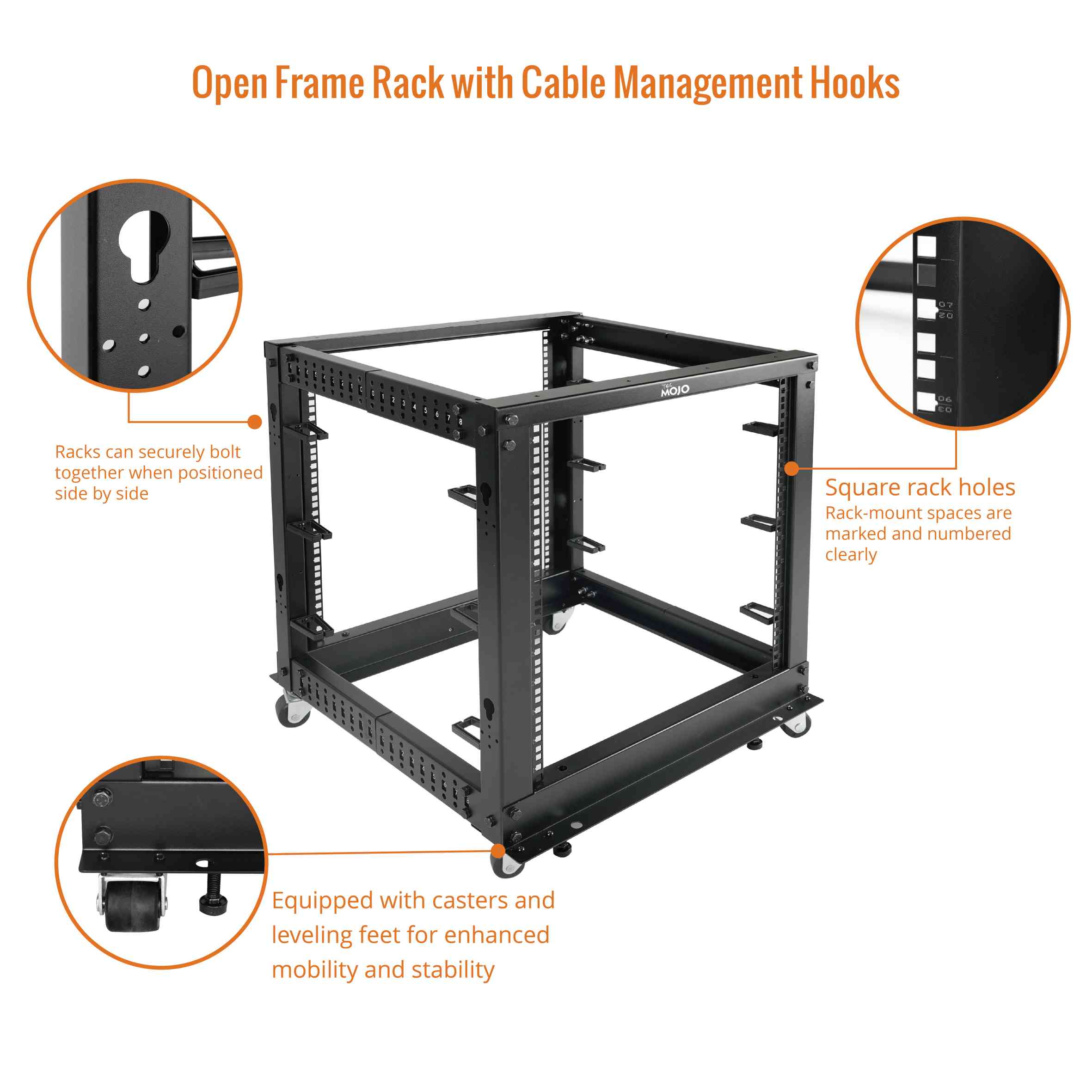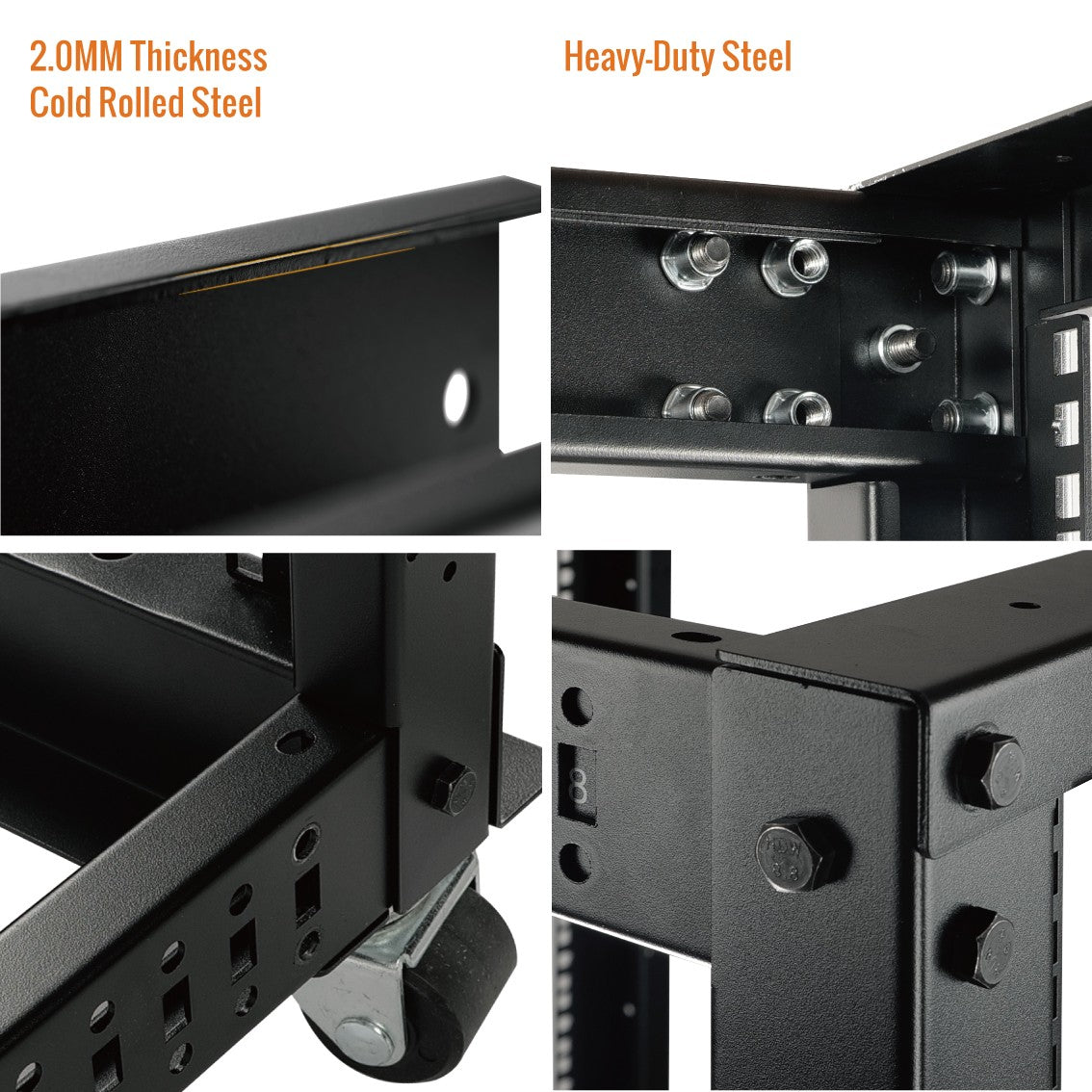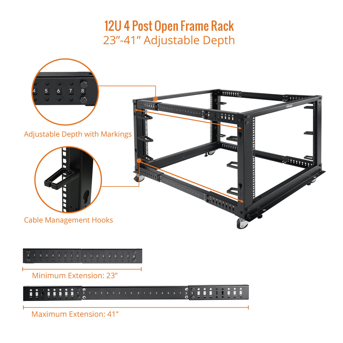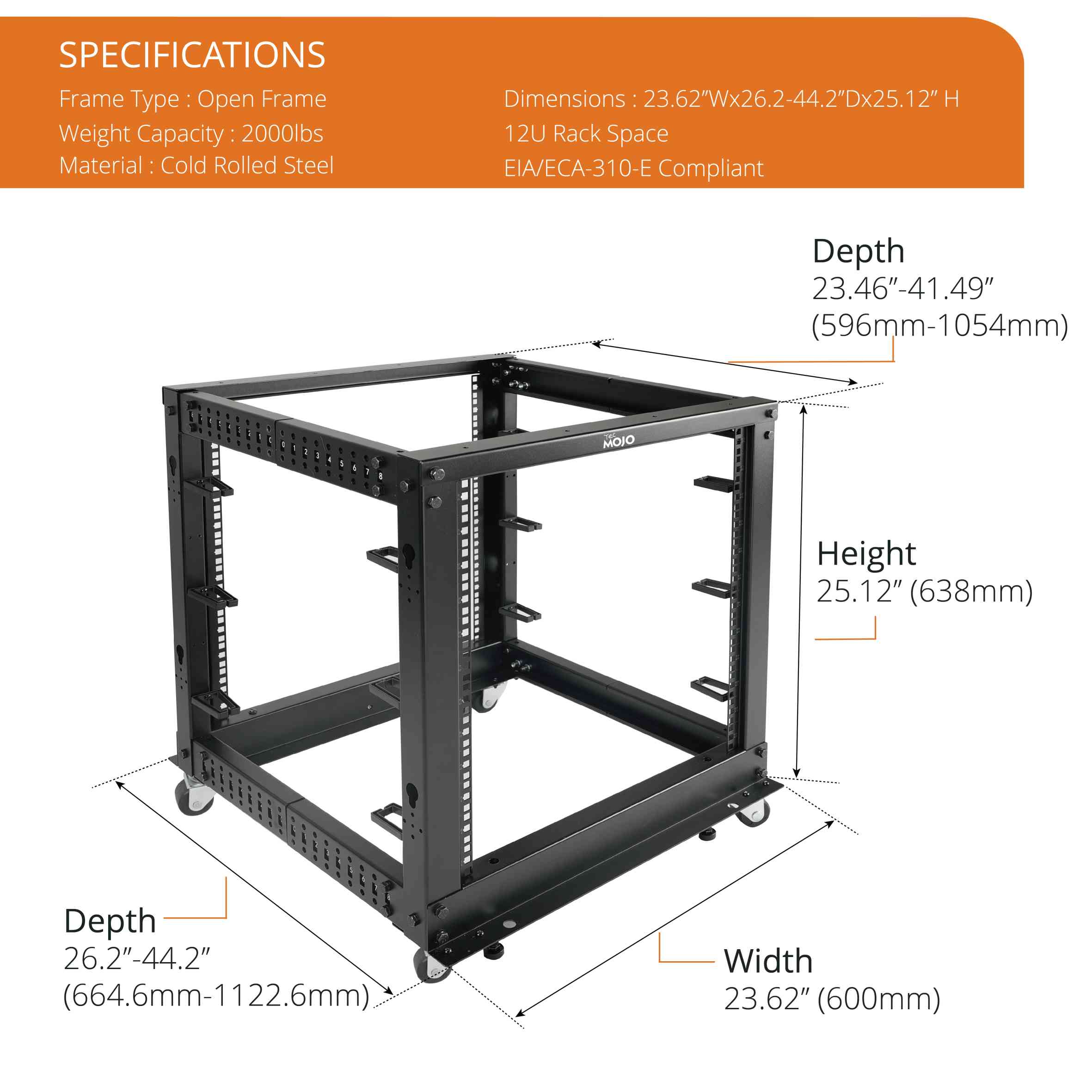 Tecmojo 12U 4-Post Adjustable Depth 22-40in Open Frame Server Rack with Casters