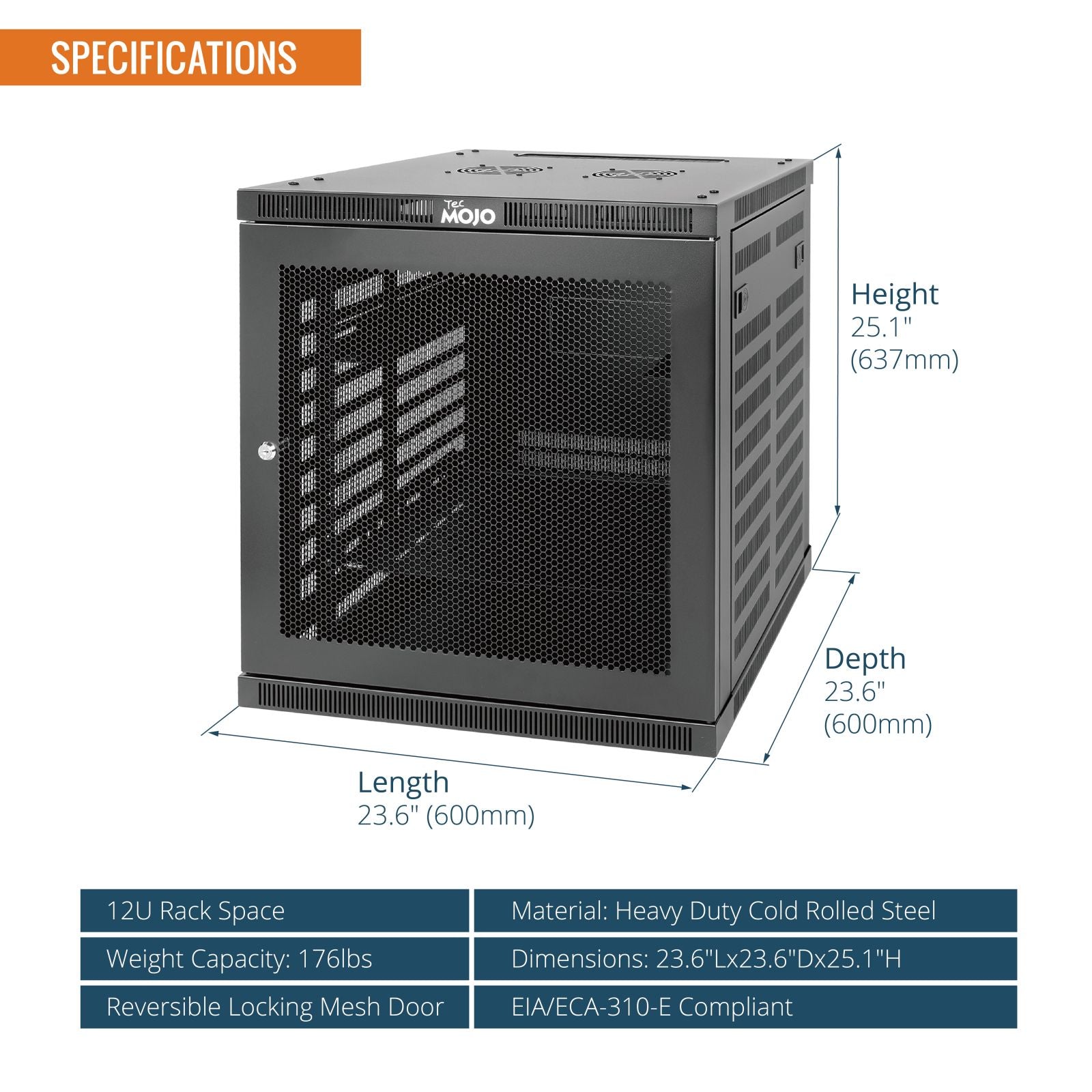 Tecmojo 12U 600mm Depth Mesh Door Elite Wall Mount Cabinet( Flat Pack)