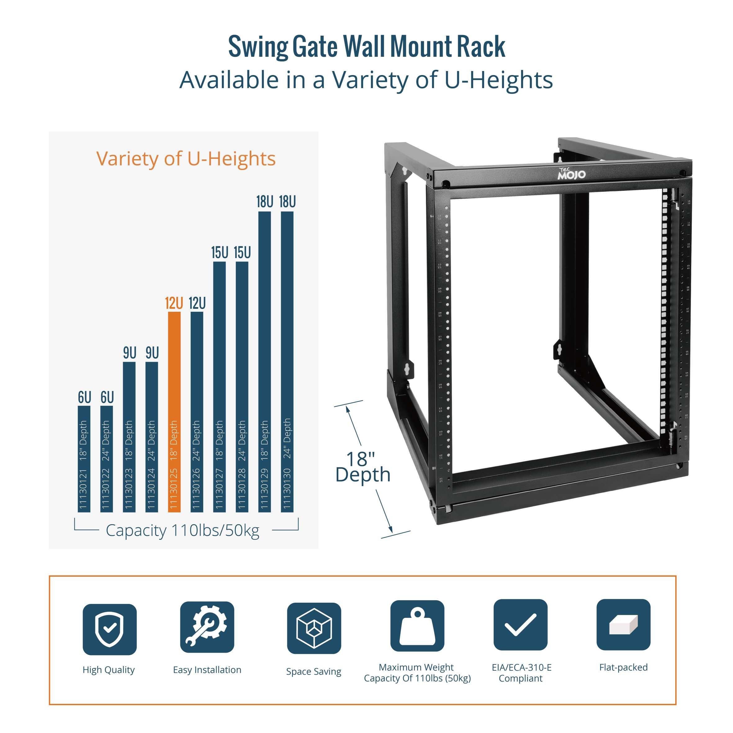 Design Features: The swing gate open frame rack can opens from left or right, the swinging door of wall mount server rack can also completely removed, easy to install, manage, and maintain equipments.