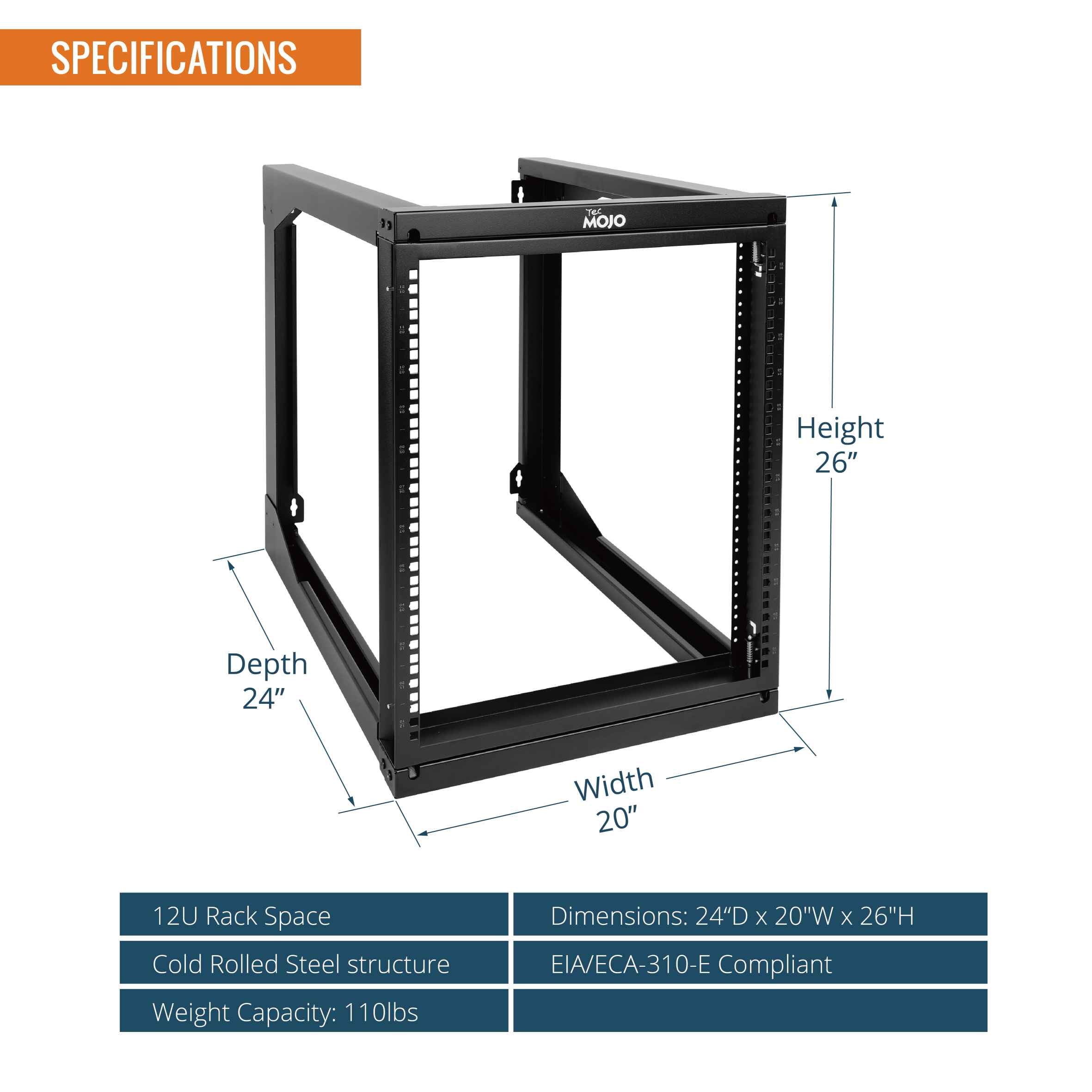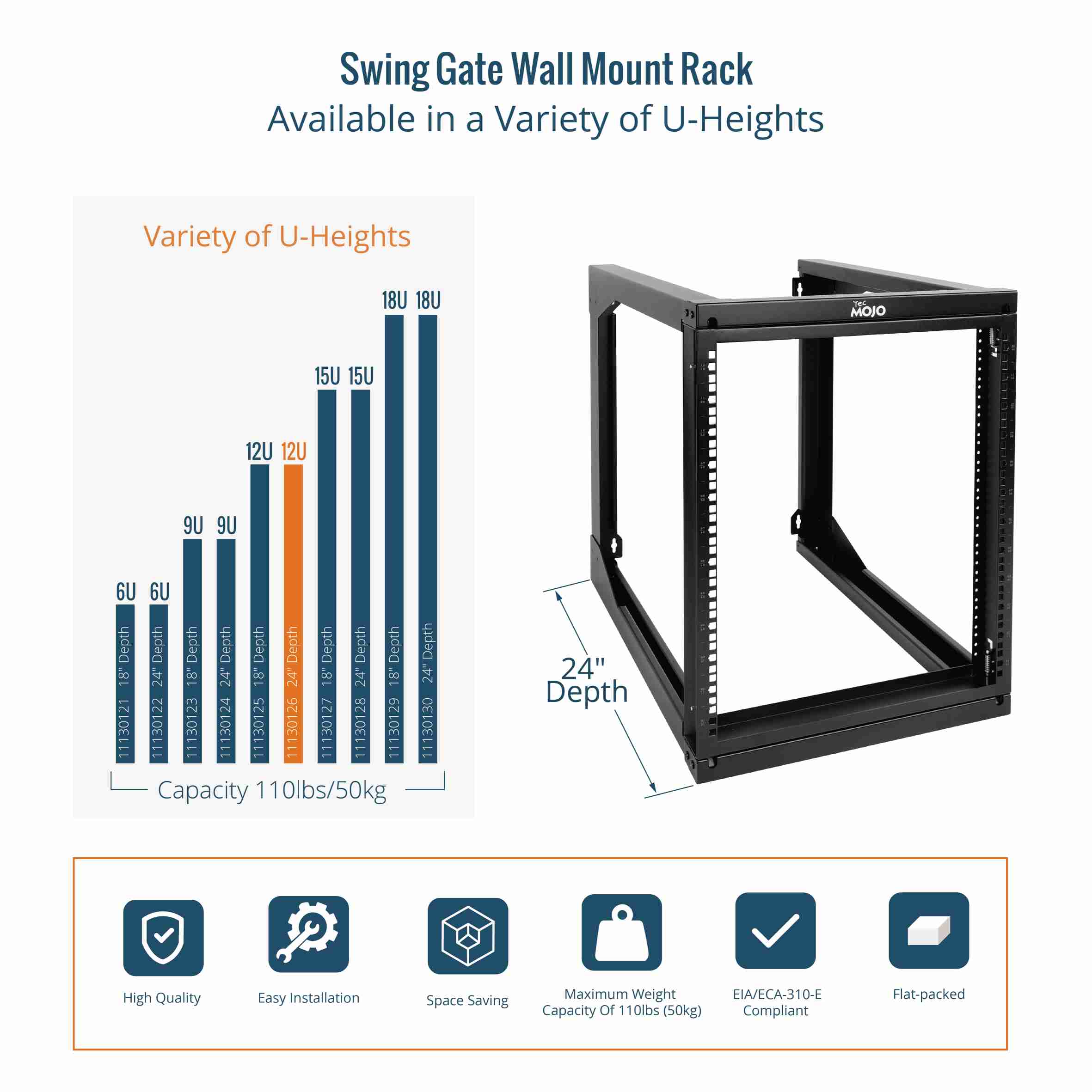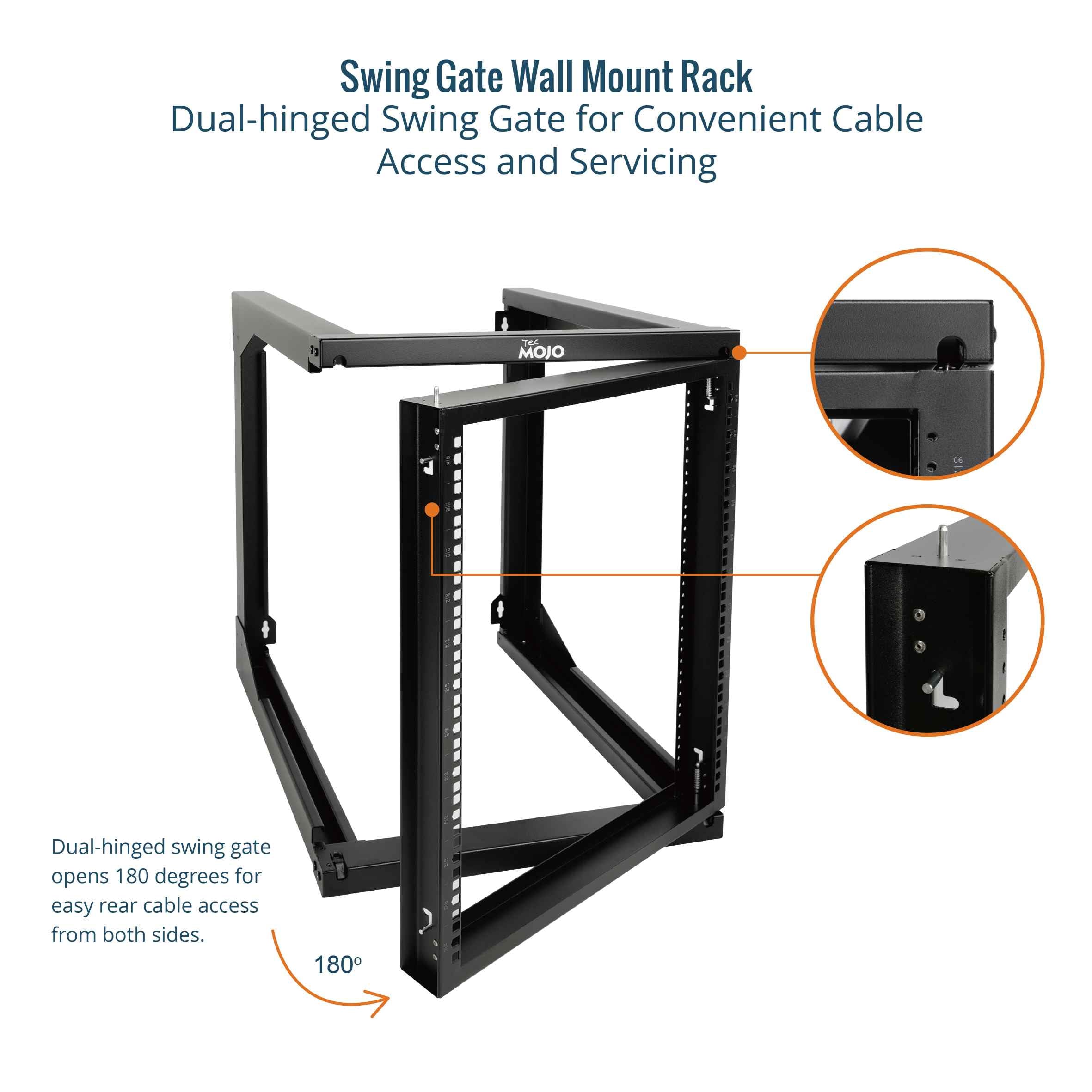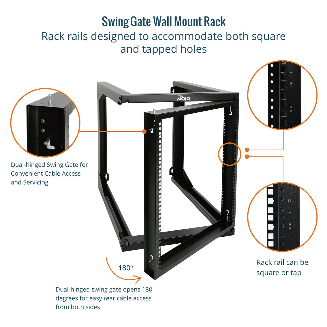 Design Features: Open Frame structure of wall mount server rack, easy to move and heat dissipation; 180 degrees swing gate for rear cable access from both sides.