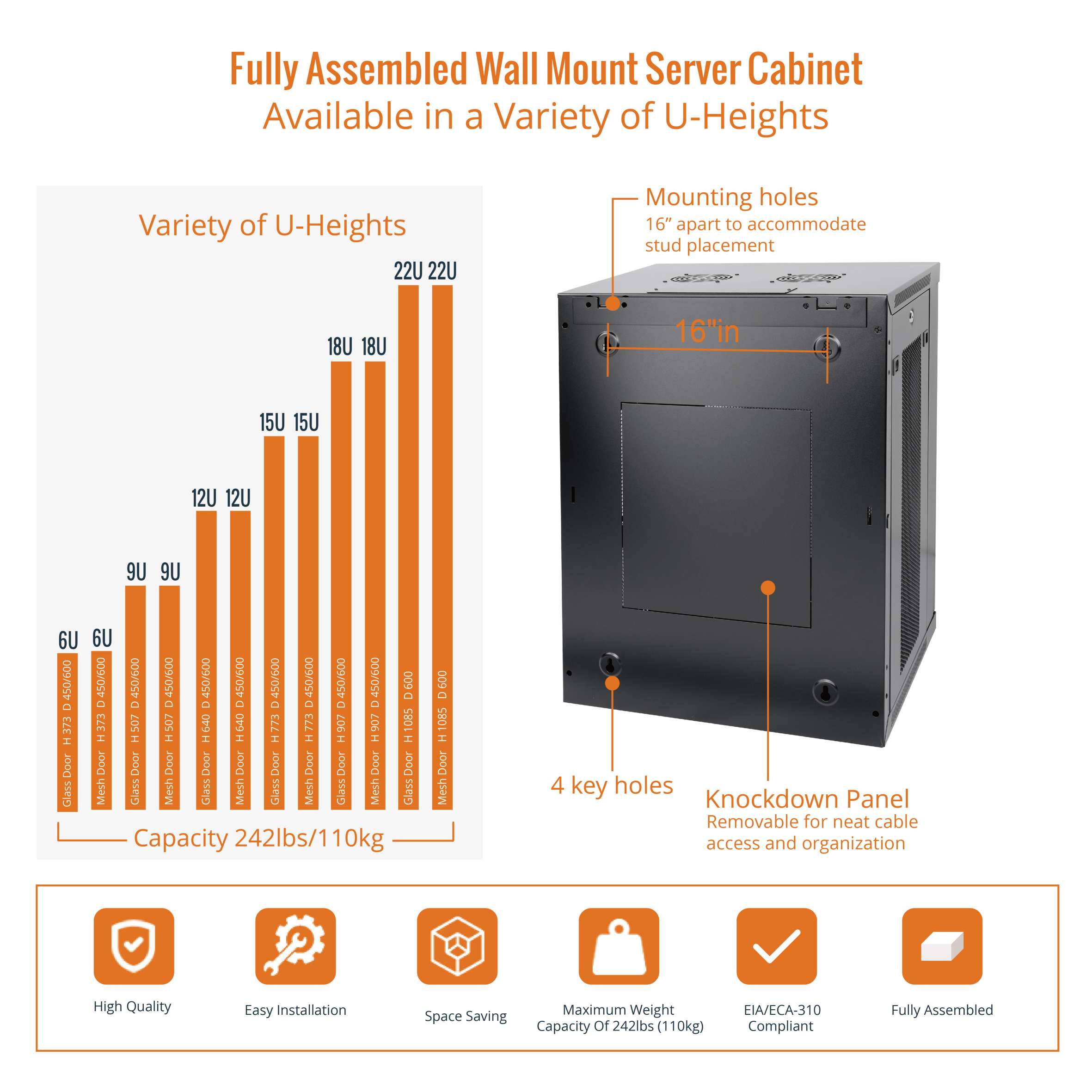 Tecmojo 15U 450mm Depth Mesh Door Professional Wall Mount Cabinet( Fully Welded)