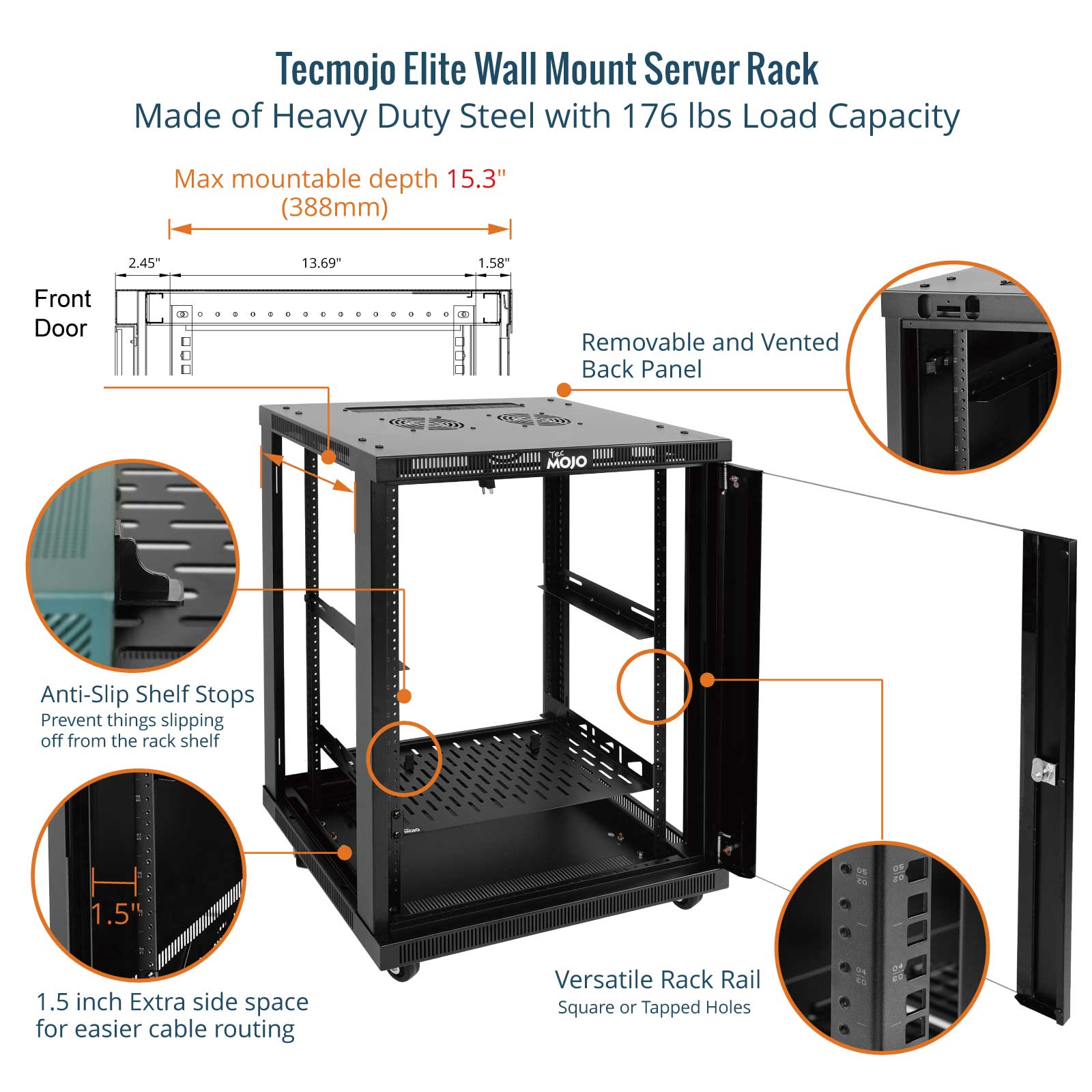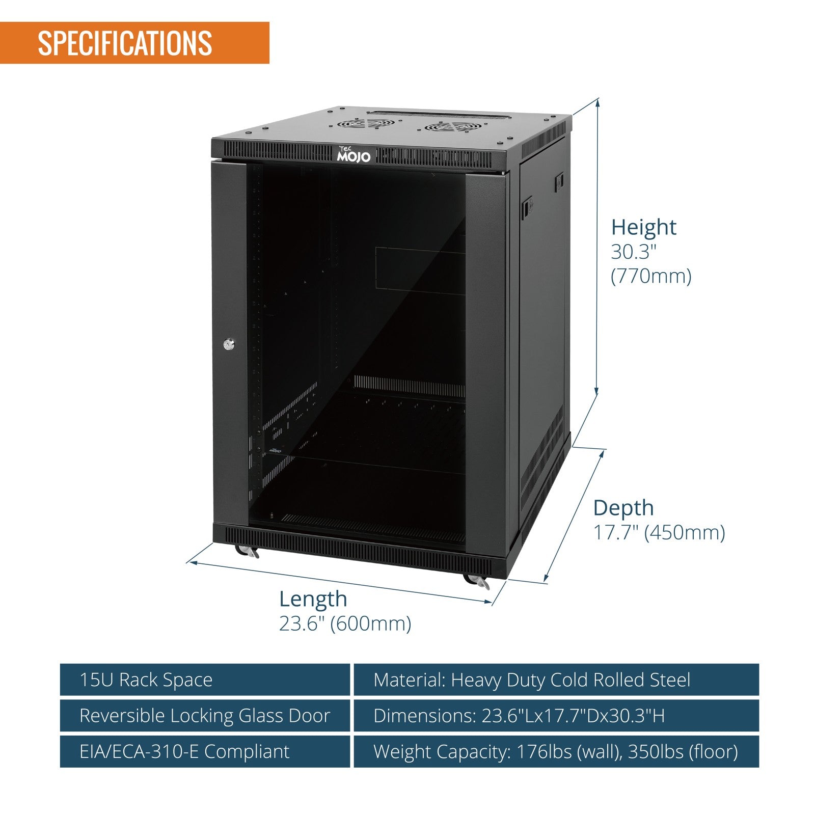 Tecmojo 15U 450mm Depth Glass Door Elite Wall Mount Cabinet( Flat Pack)