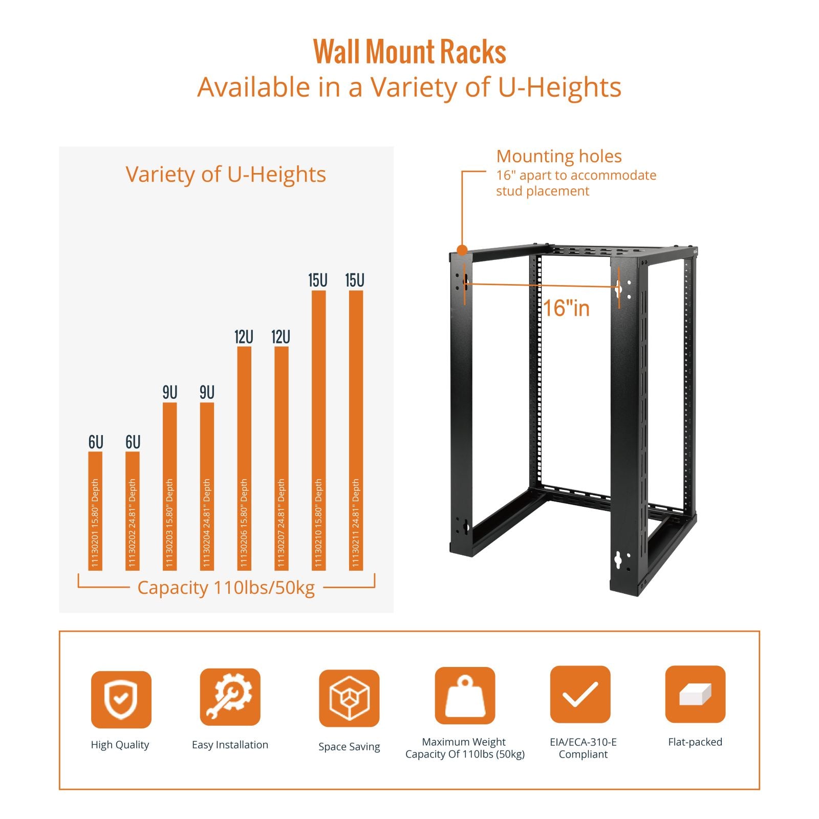 Easy Installation: EIA/ECA-310-E complaint; 15U Wall Mount Rack provides corresponding accessories, instructions and video explanation for reference.