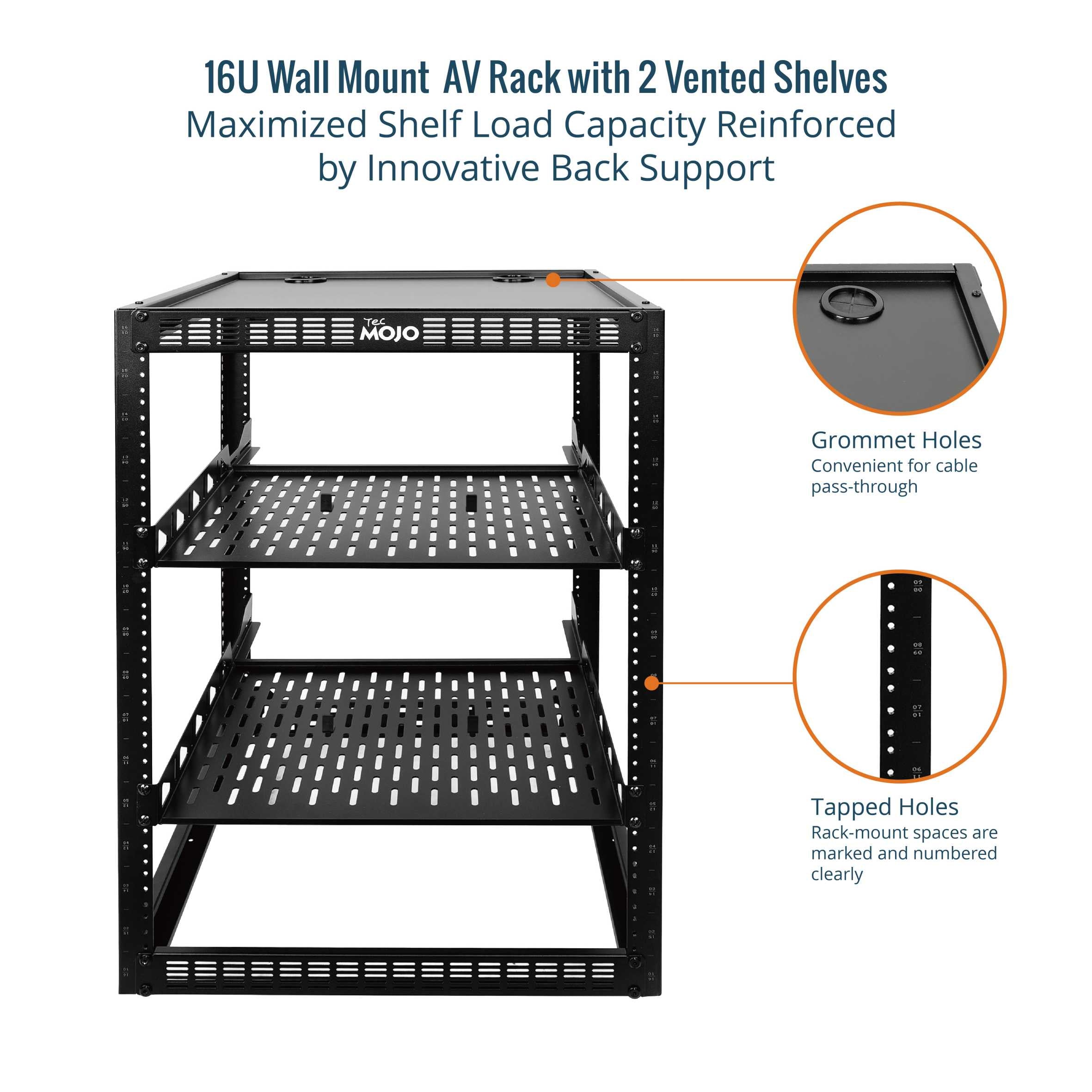 Tecmojo 16U Open Frame Network Rack for 19" Networking Device