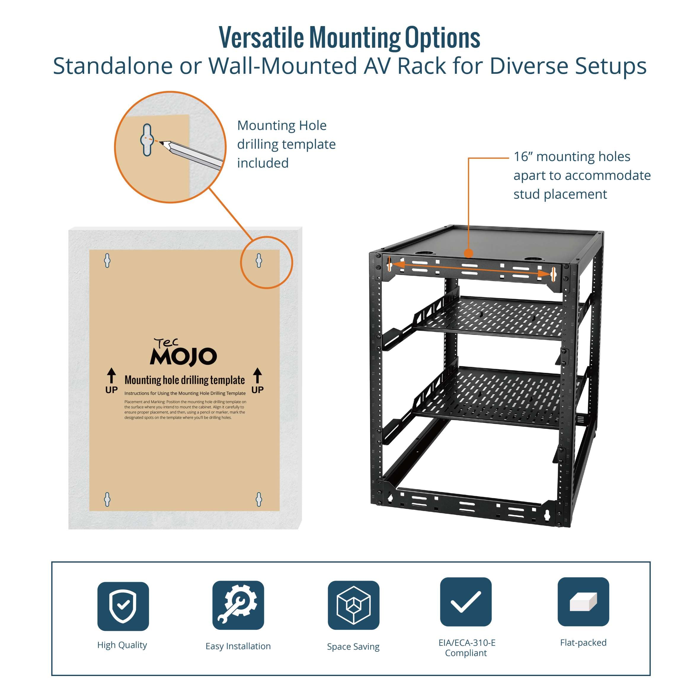 Superior Weight Capacity: Wall-mounted design can hold up to 130 lbs. and floor-mounted design has a weight capacity of up to 260 lbs. for a wide range of equipment.