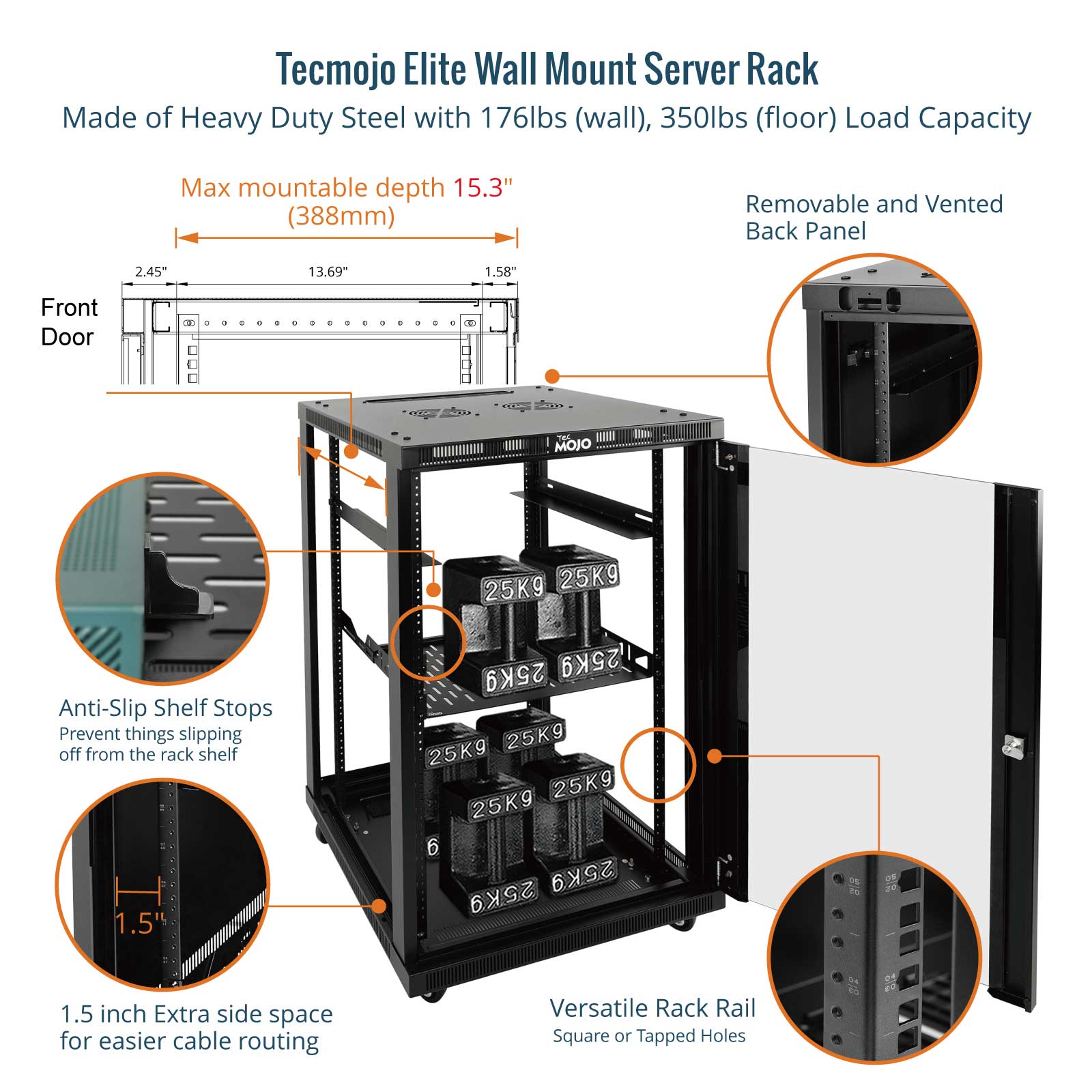 Convenient Access: Removable covers on the top and bottom, as well as removable side panels and front door, make cable wiring and equipment maintenance quick and easy.