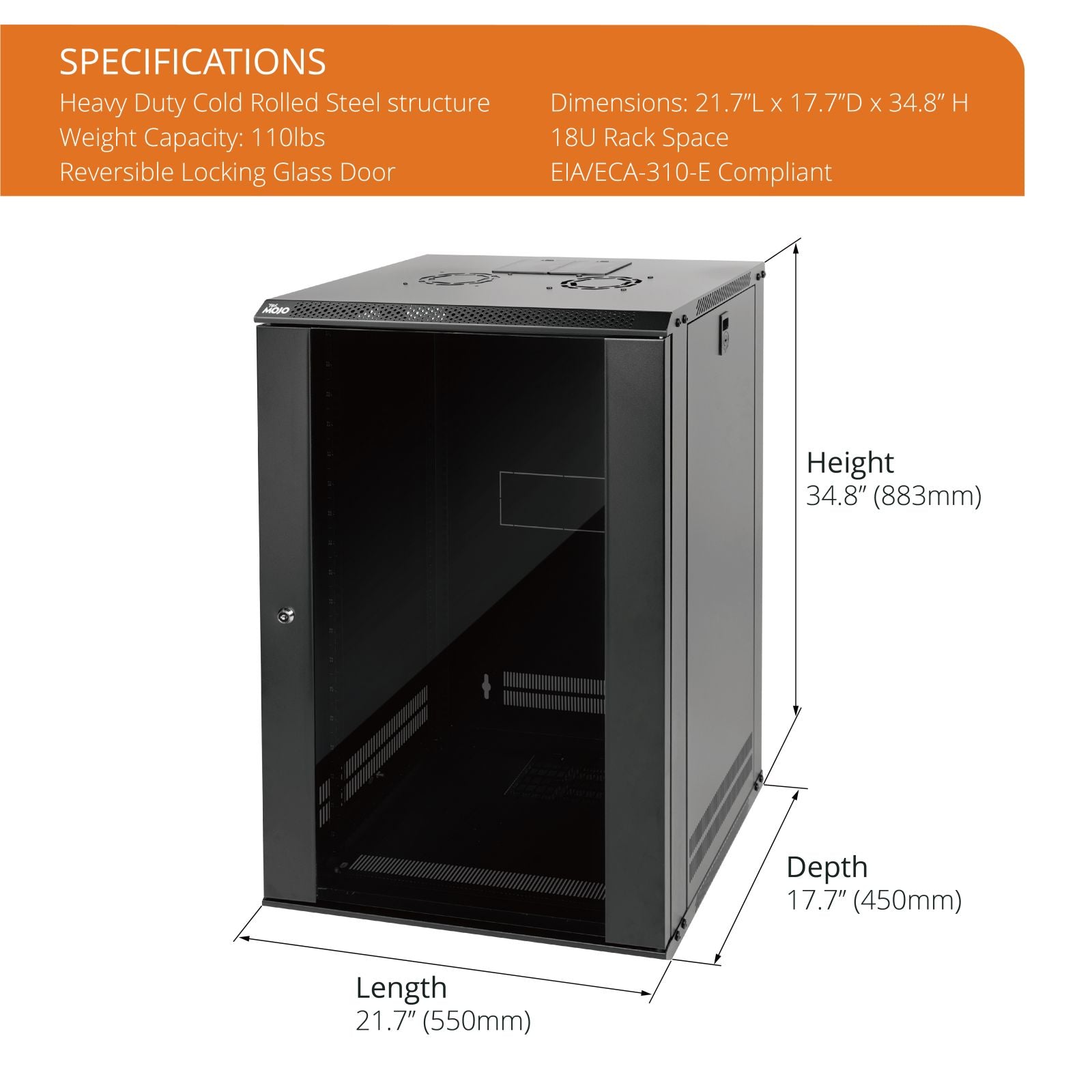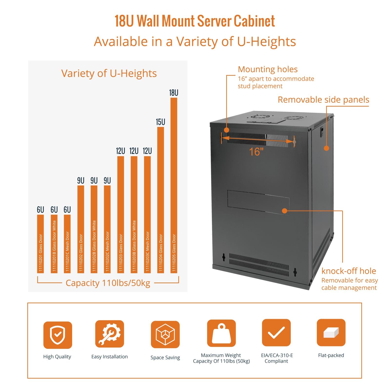 Tecmojo 18U 450mm Depth Black Glass Door Standard Wall Mount Cabinet(Flat Pack)