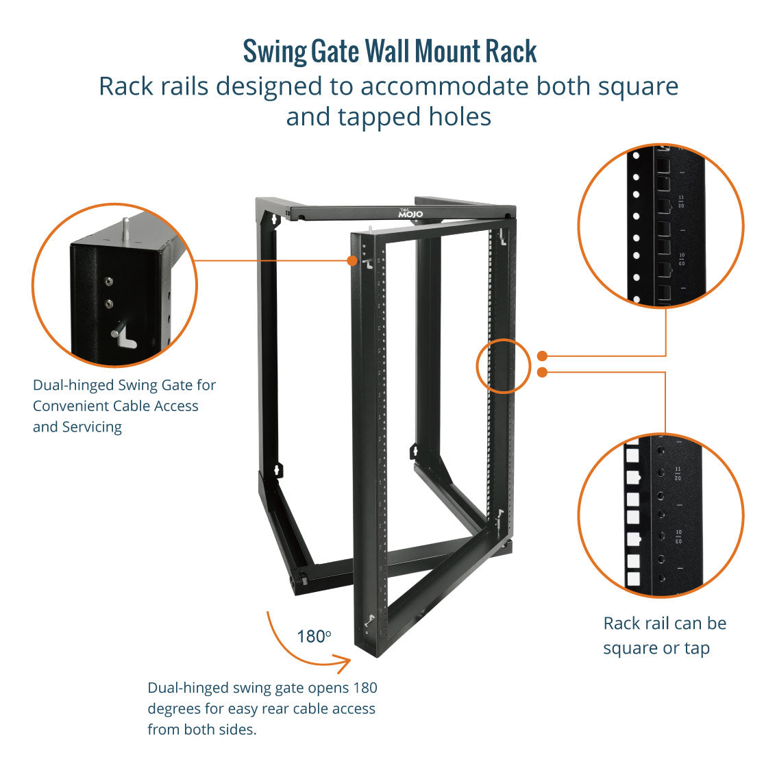 • Convenient Cable Entry: Dual-hinged Swing Gate opens 180 degrees for easy rear cable access from both sides.