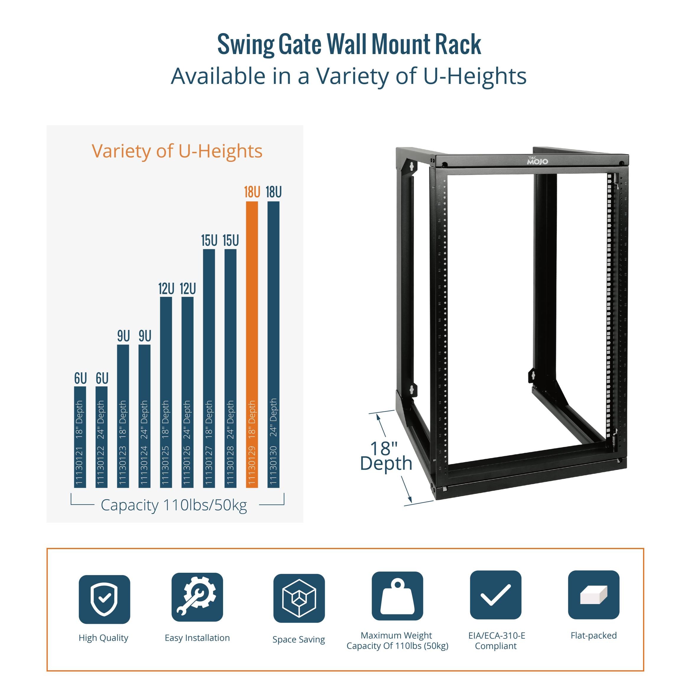 Tecmojo 18U 18in Depth Swing Gate Wall Rack for 19" Server and Network Device
