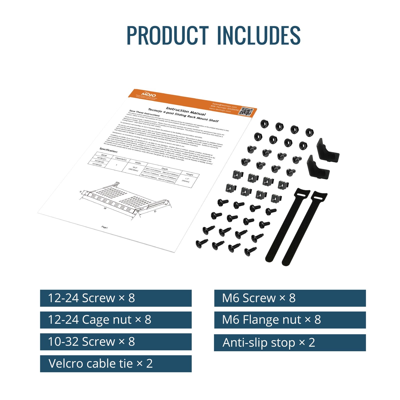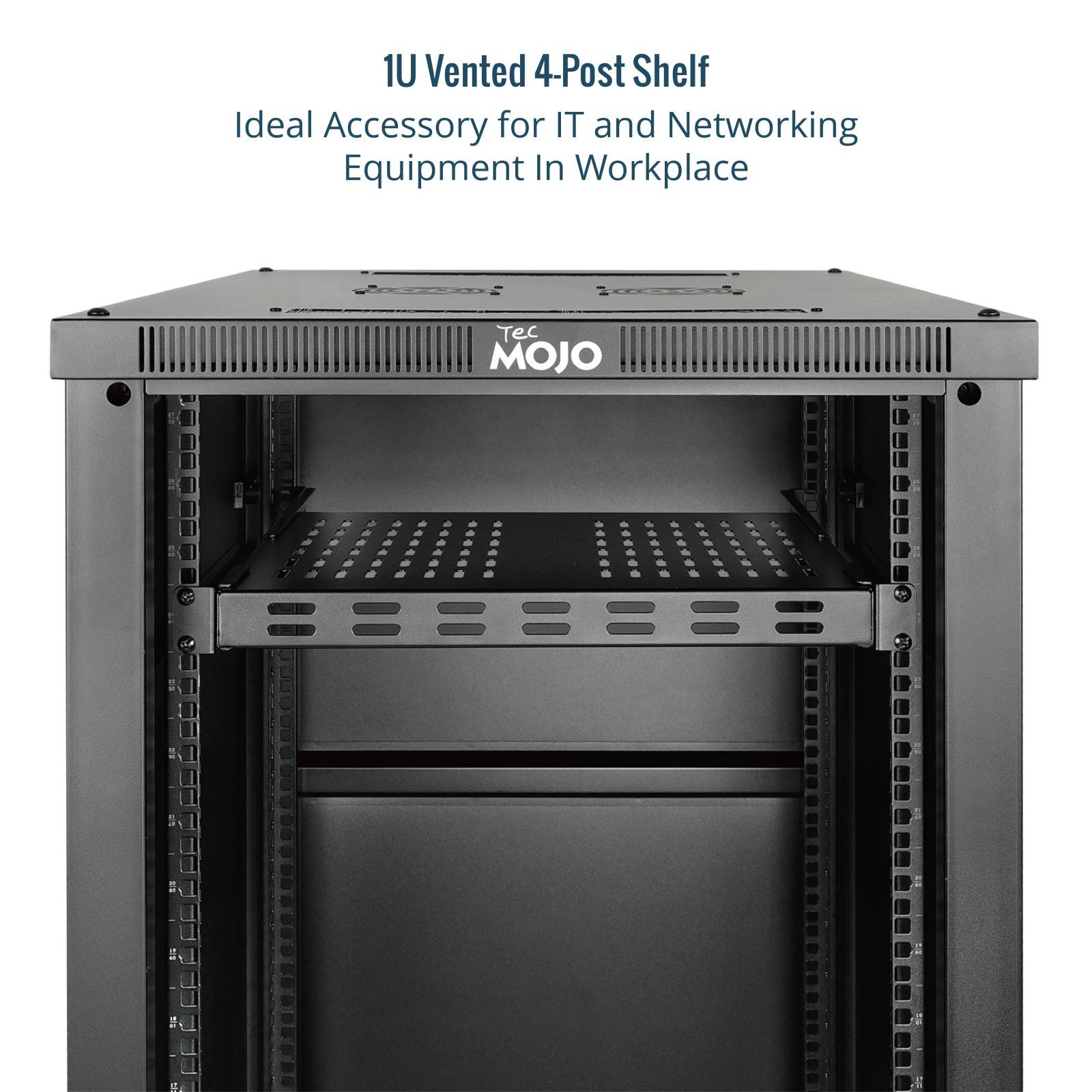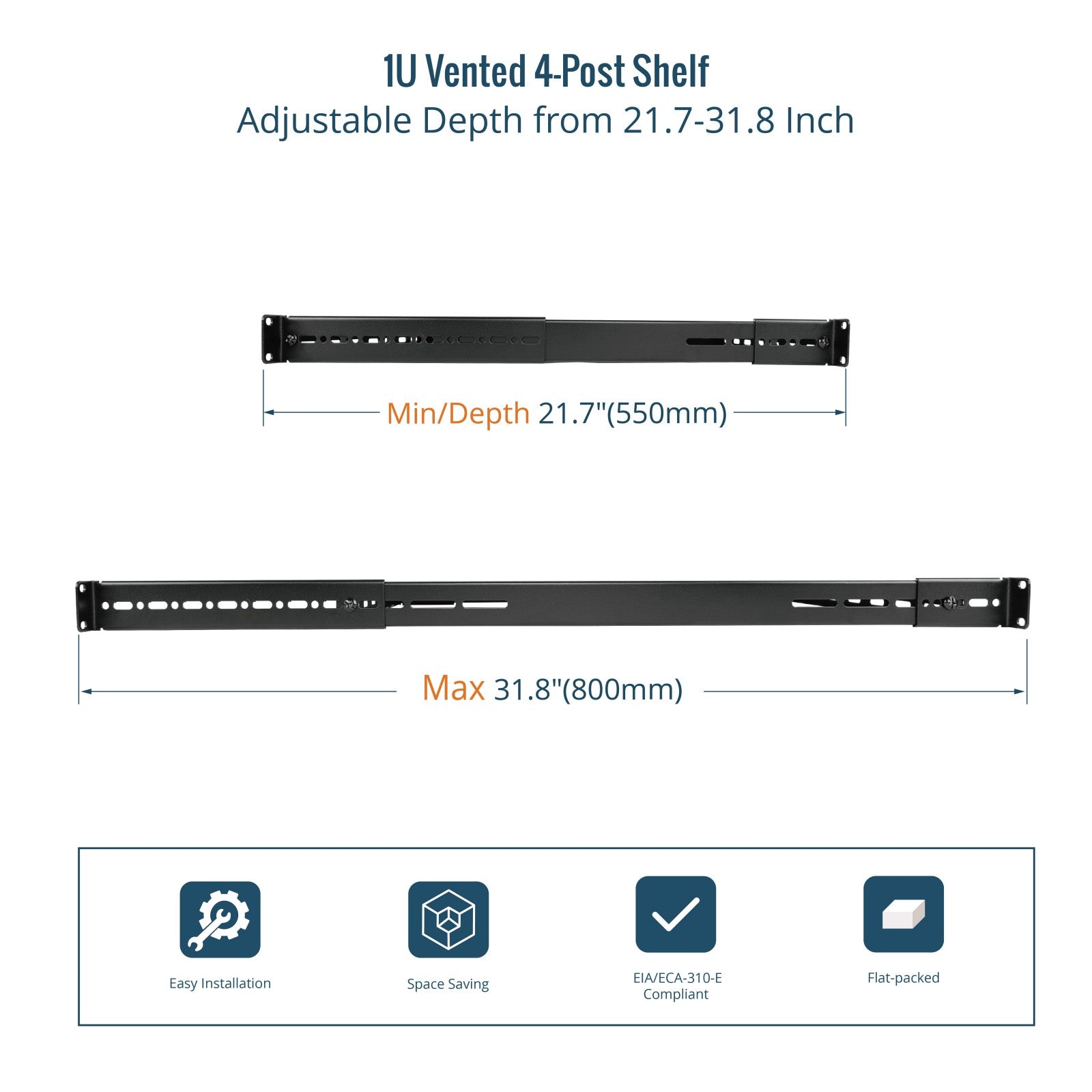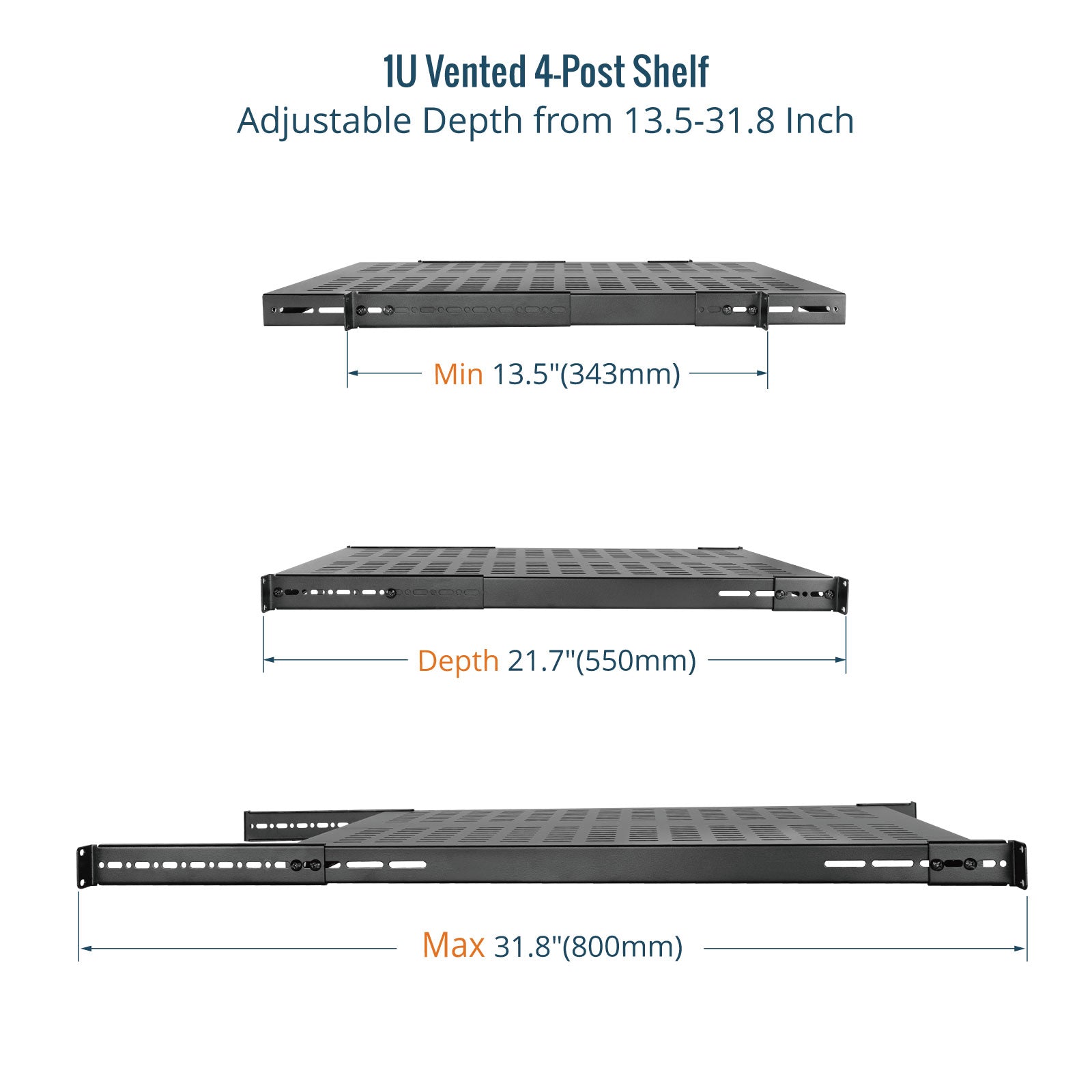 Tecmojo 1U 4-Post 21.7 inch Depth Vented Rack Shelf with Adjustable Depth 13.5-31.8inch(242lbs Weight Capacity)