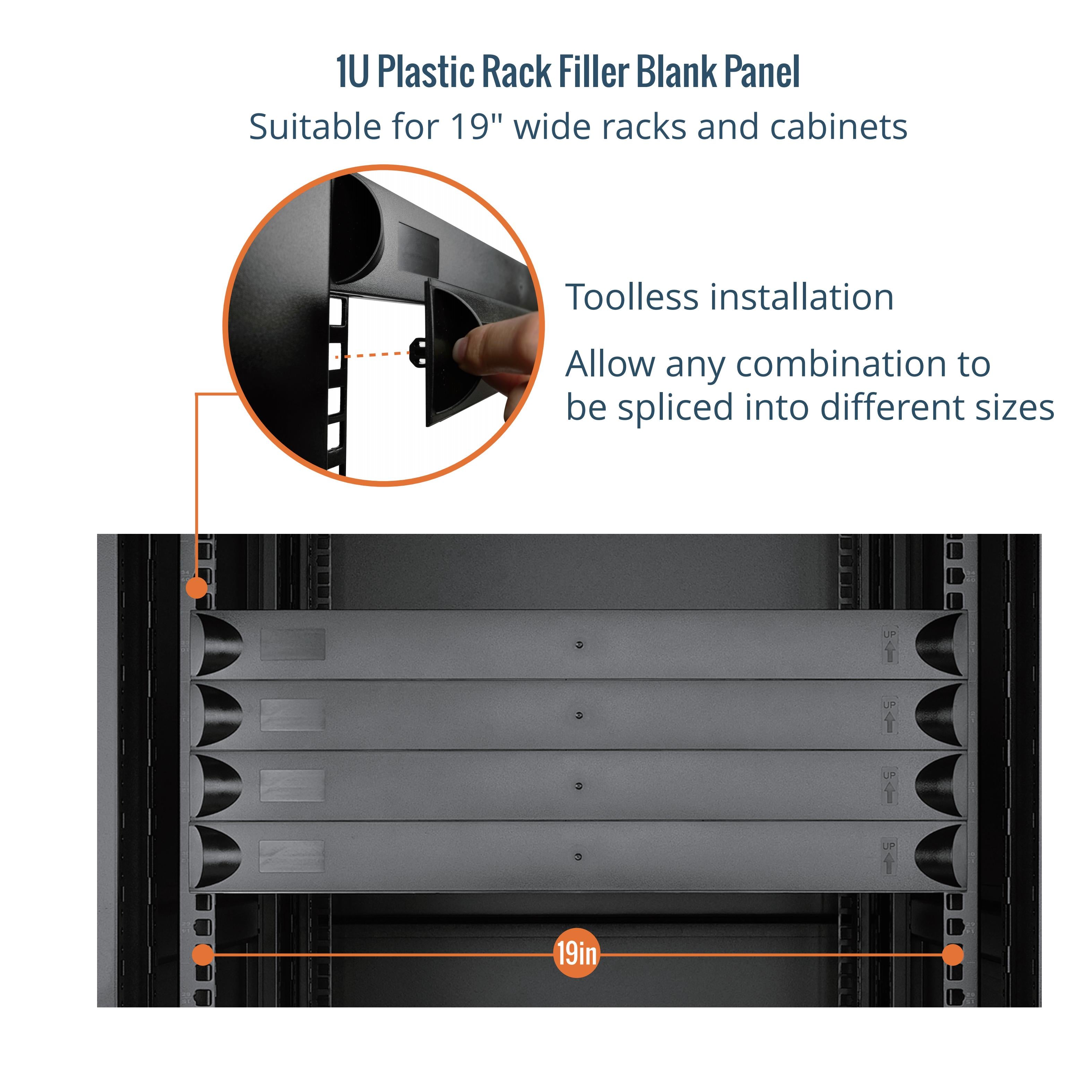 Tecmojo 1U Toolless Mounting Plastic Rack Mount Blank Panel for 19 inch Equipment(10 Pack)