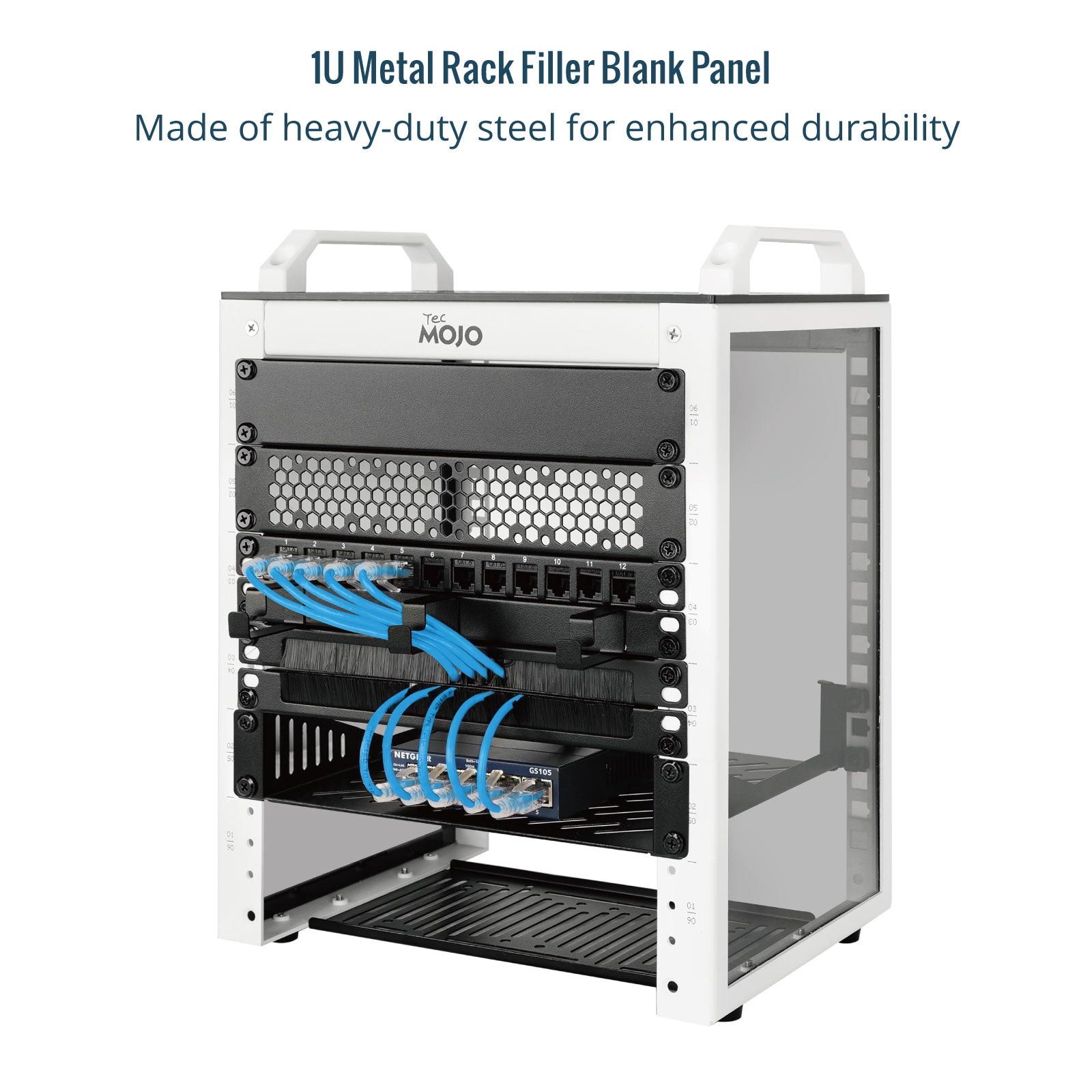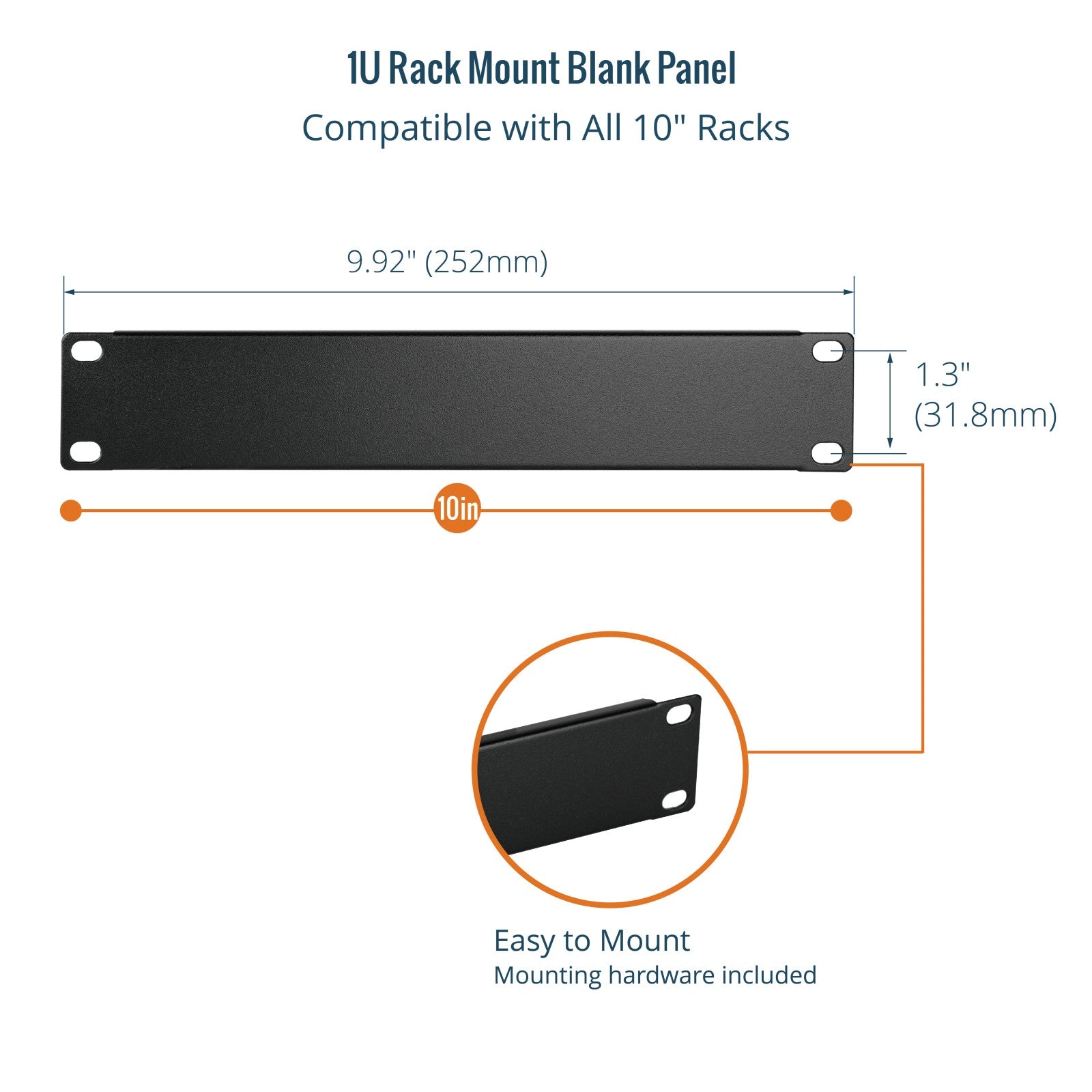 1U Rack Mount Blank Panel:Compatible with All 10" Racks 1U Metal Rack Filler Blank Panel:Made of heavy-duty steel for enhanced durability 1U Metal Rack Filler Blank Panel:Help prevent dust & debris from your valuable equipment