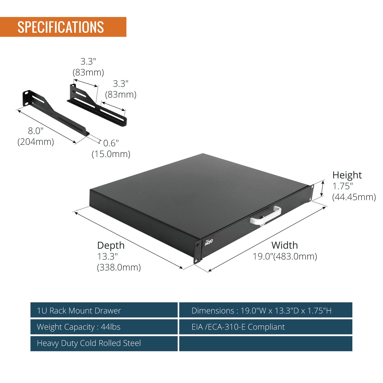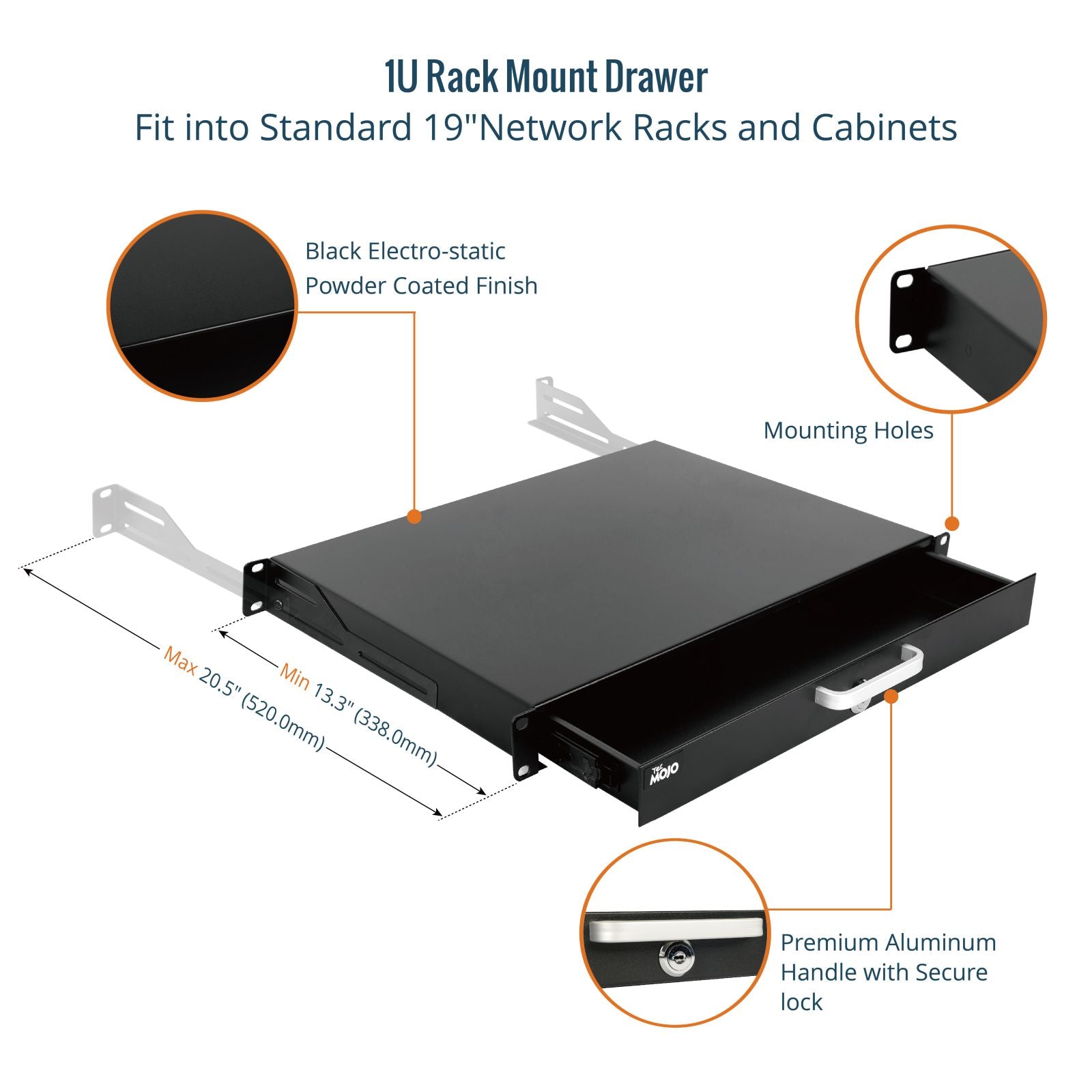 Tecmojo 1U Rack Drawer with Cable Management Holes for 19 inch Equipment-44lbs Weight Capacity