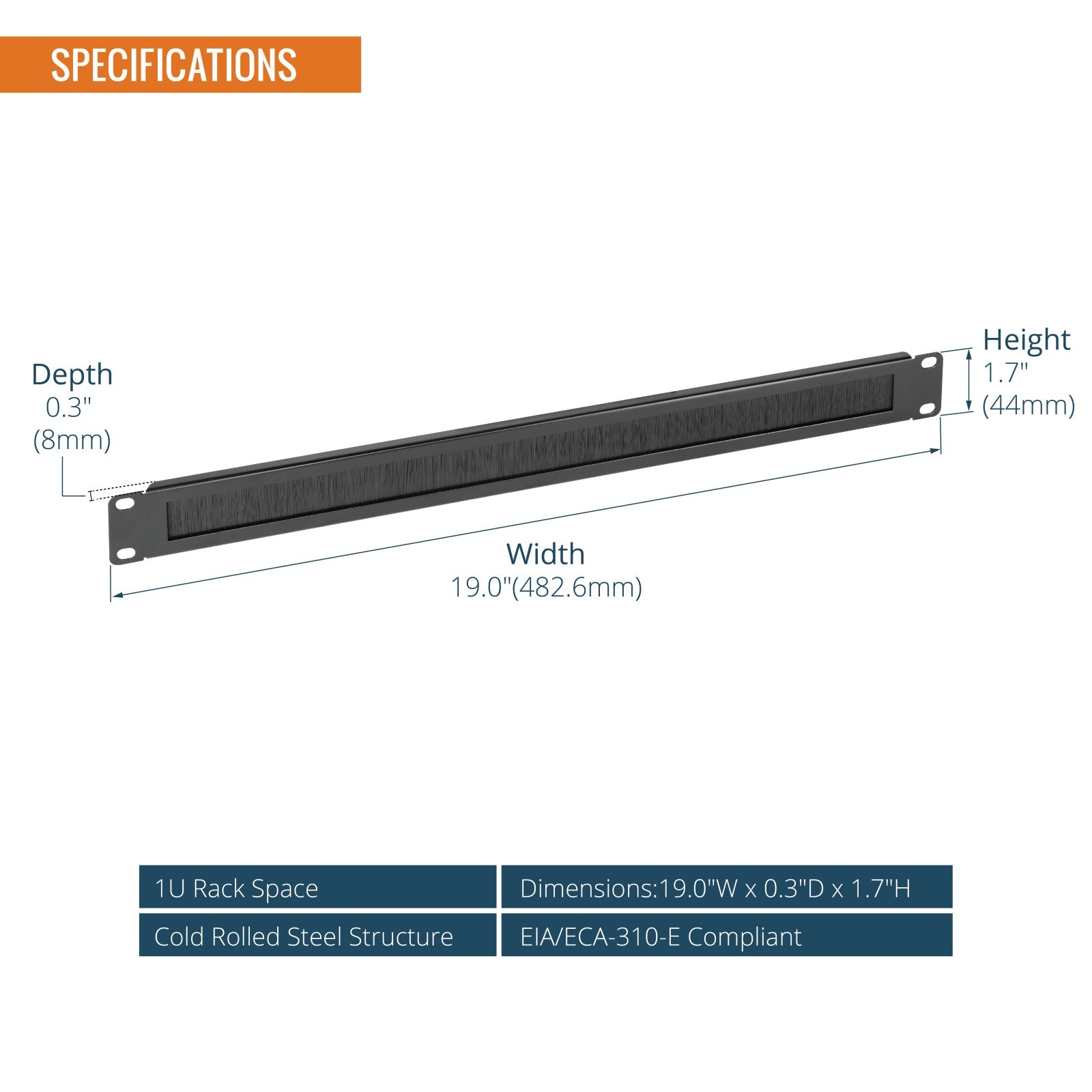 Tecmojo 1U Rack Mount Cable Management Panel with Brush for 19 inch Equipment(2pack)