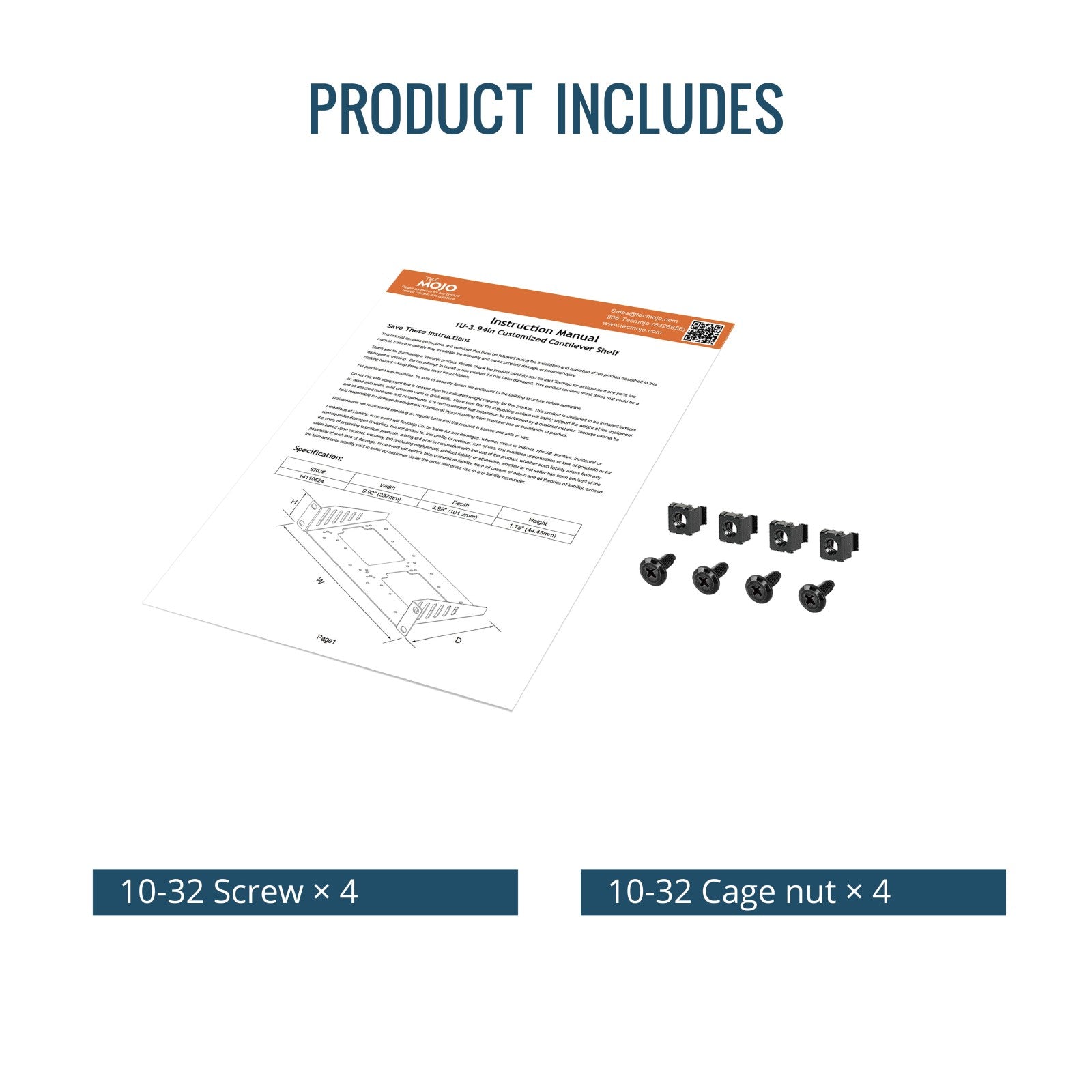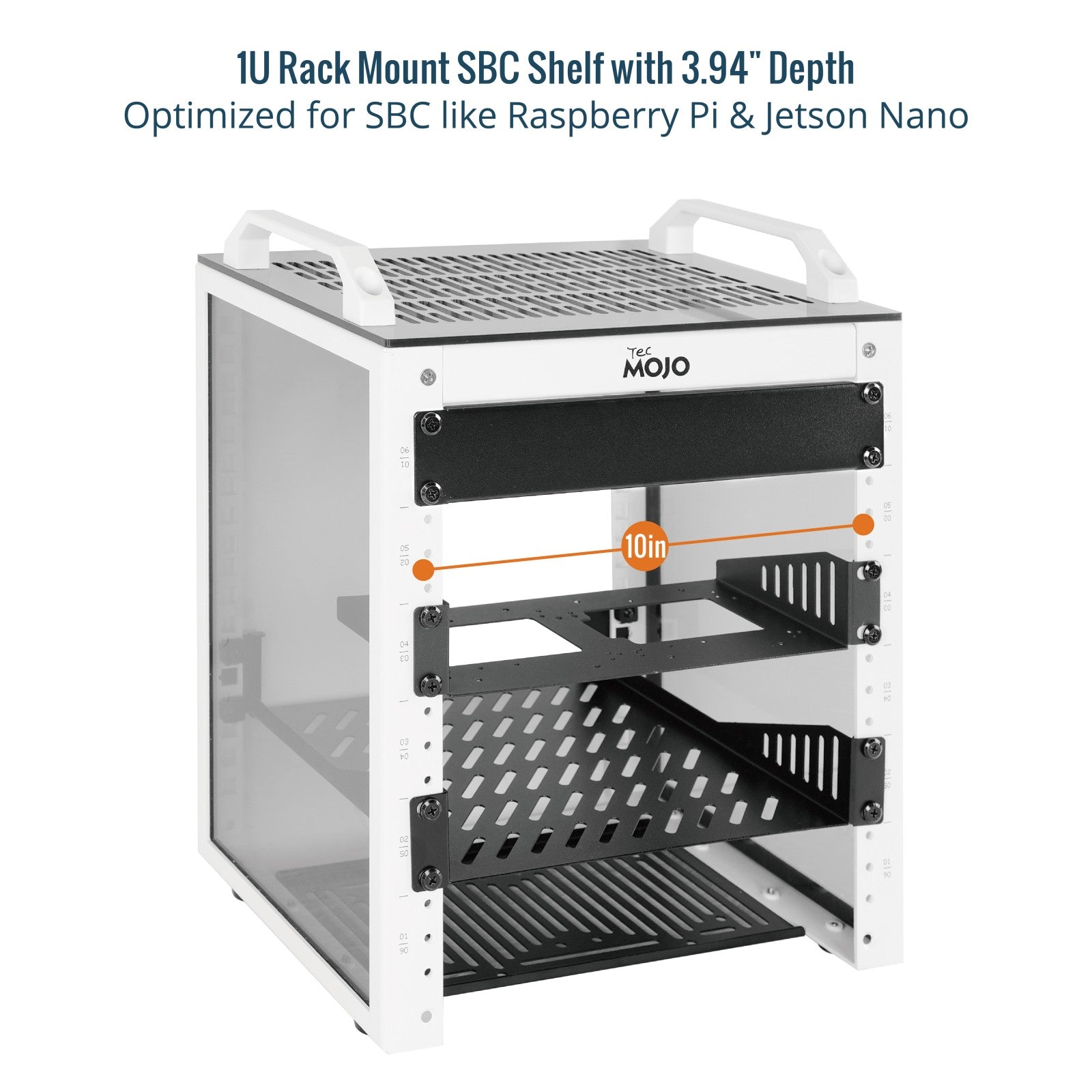 Tecmojo 1U Rack Mount SBC Shelf 3.94" Depth for 10" Server Rack & Network Cabinet