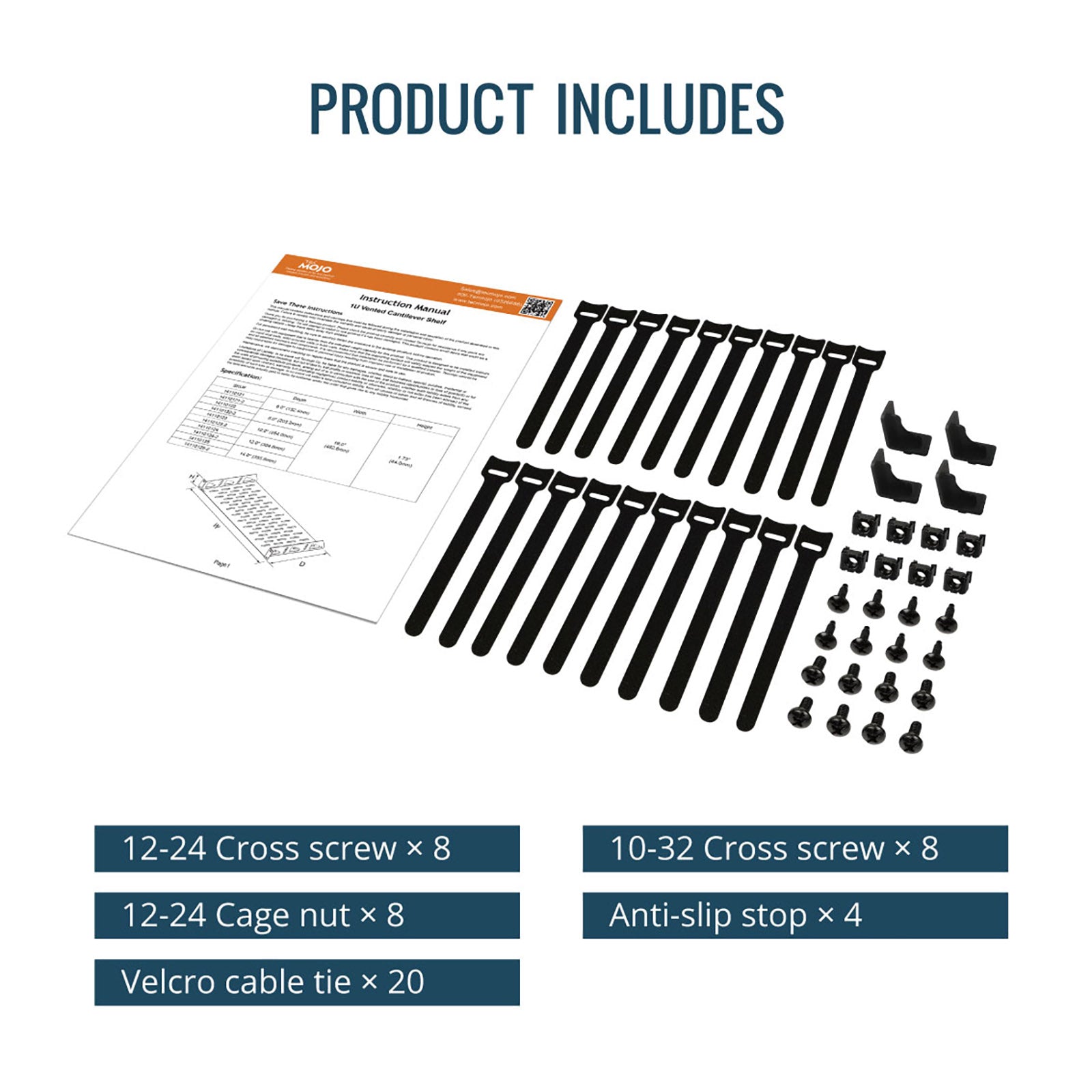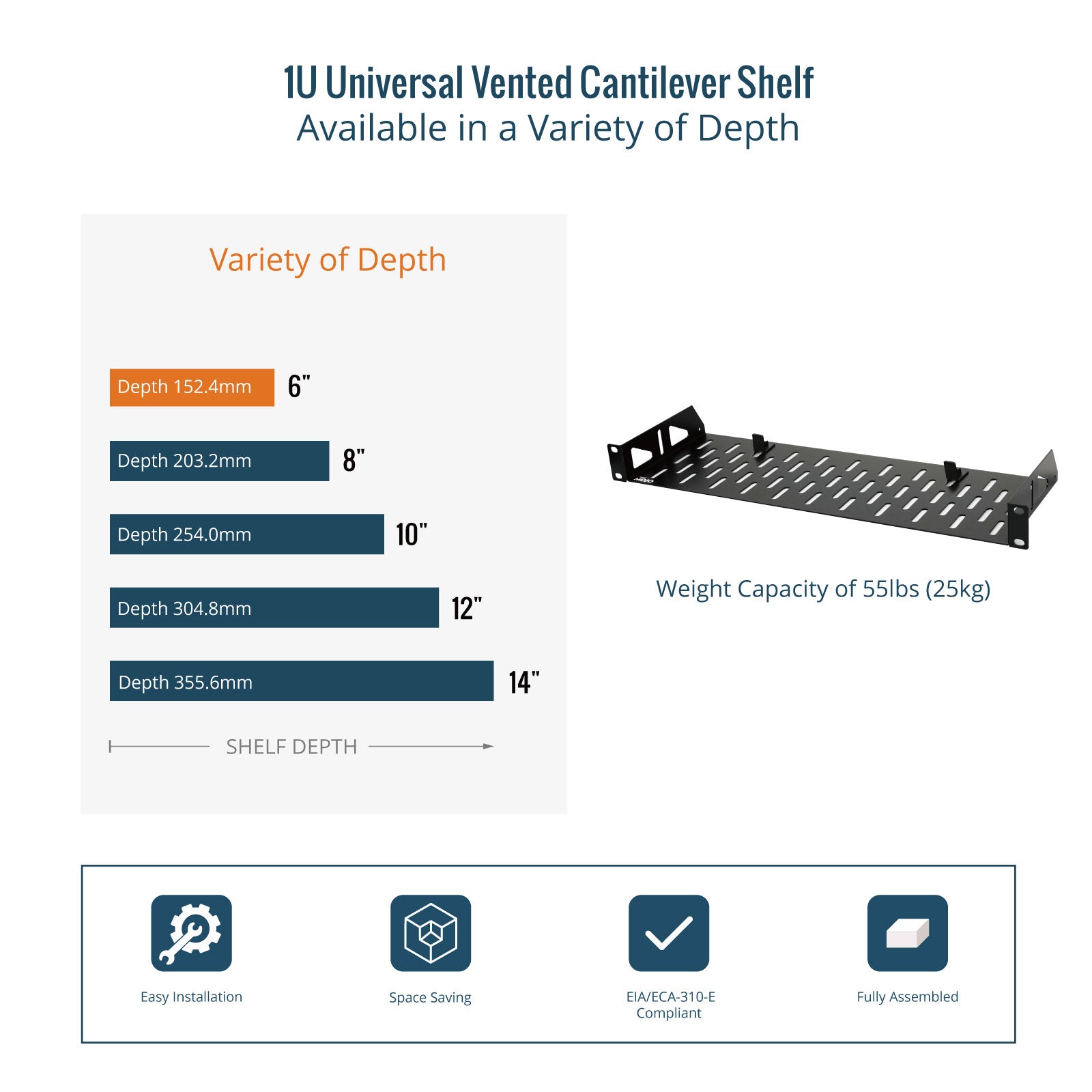 Tecmojo 1U 6 inch Depth Rack Shelf with Anti-Slip Stops for 19 inch Equipment-55lbs Weight Capacity(2 Pack)
