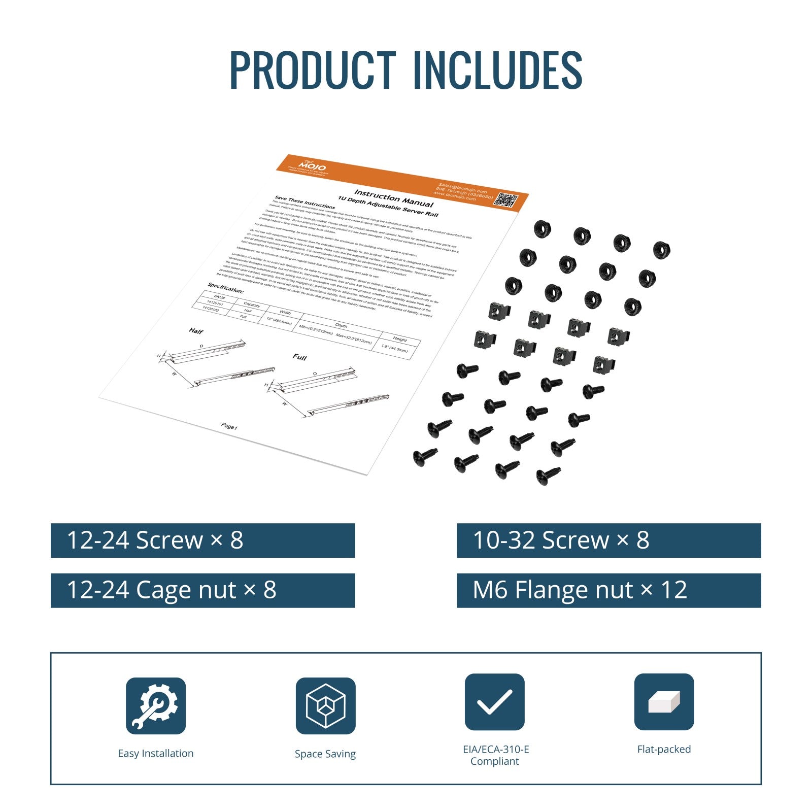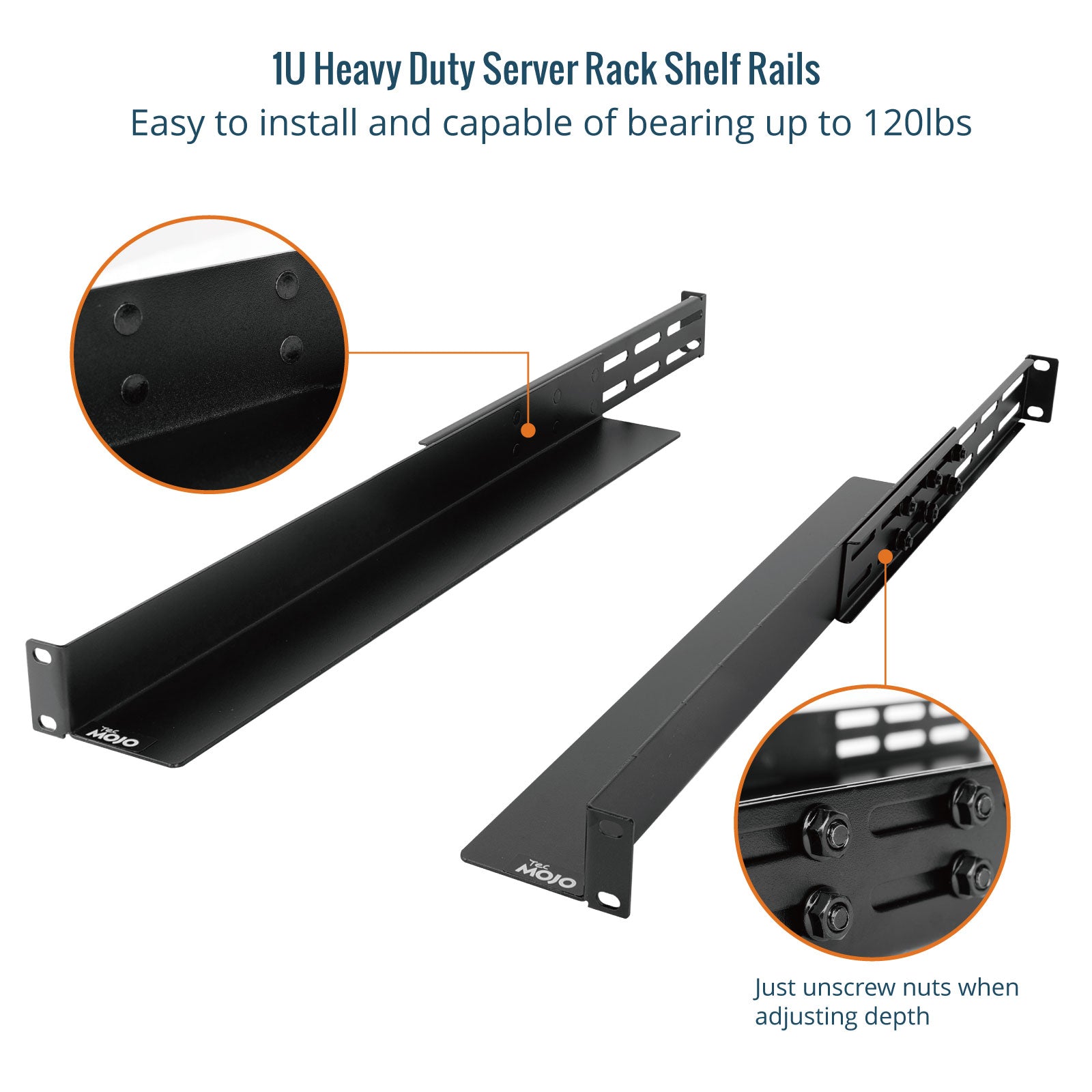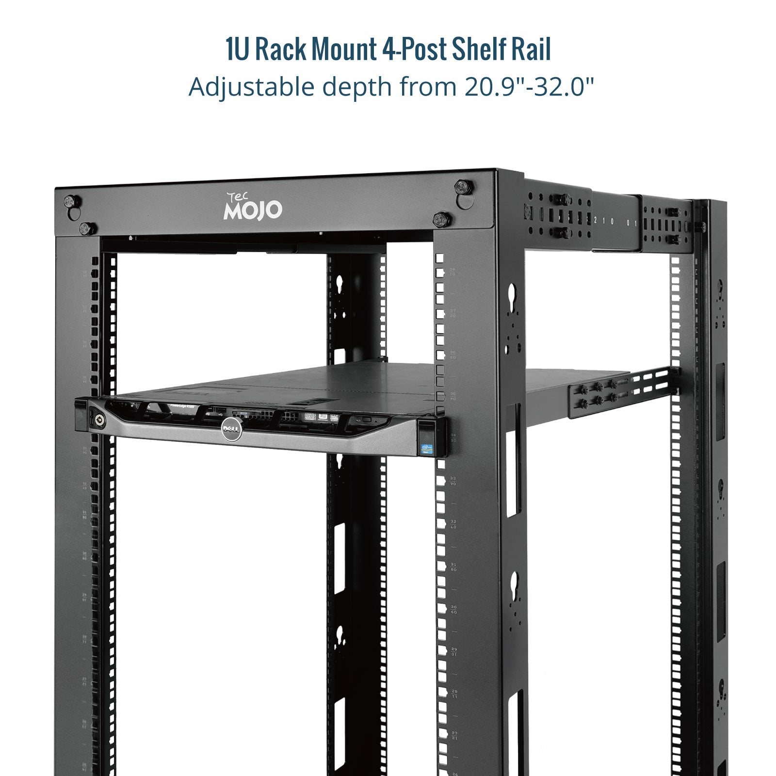 Tecmojo 1U 4-Post Server Rack Shelf Rail with 20.9"-32" Adjustable Depth-Half Support