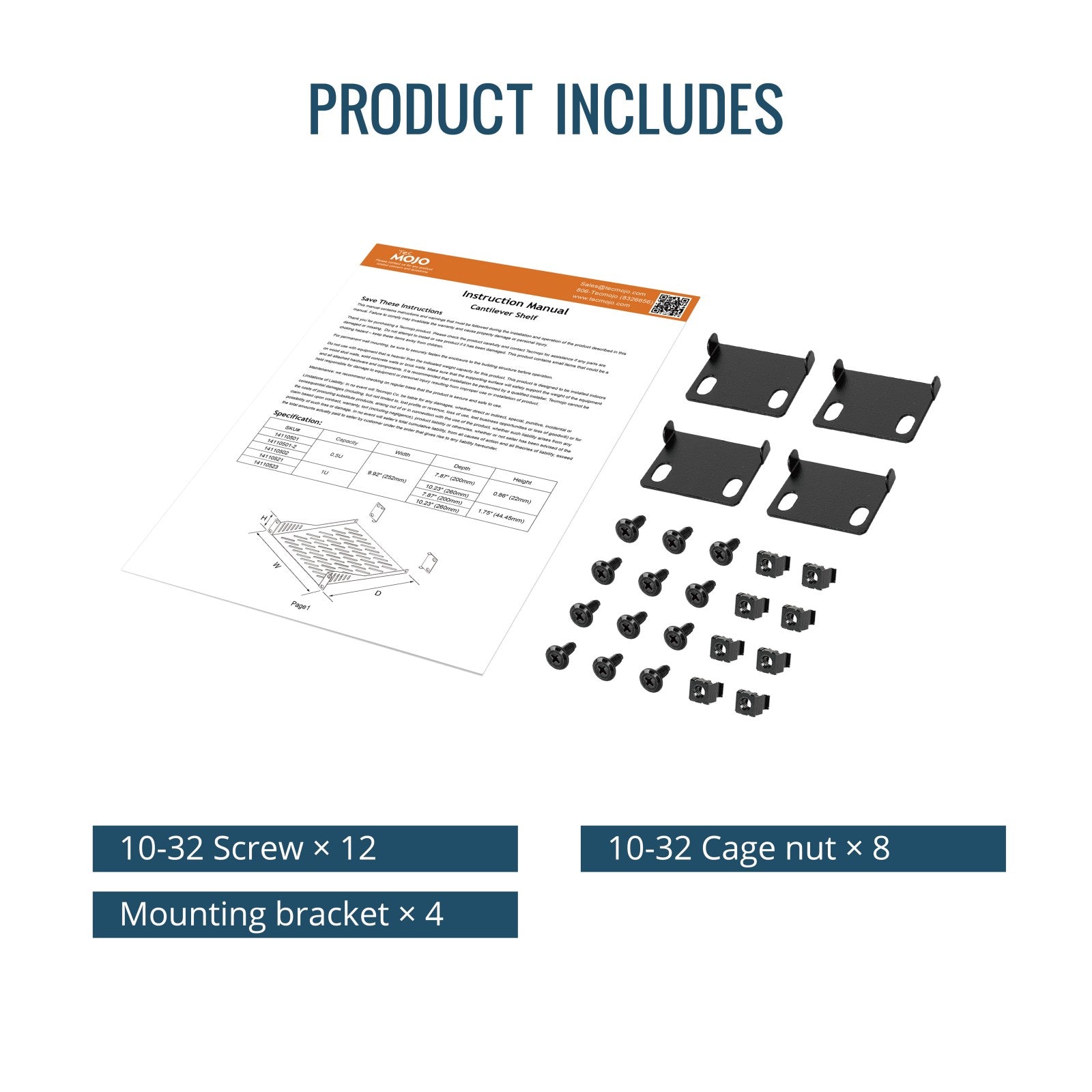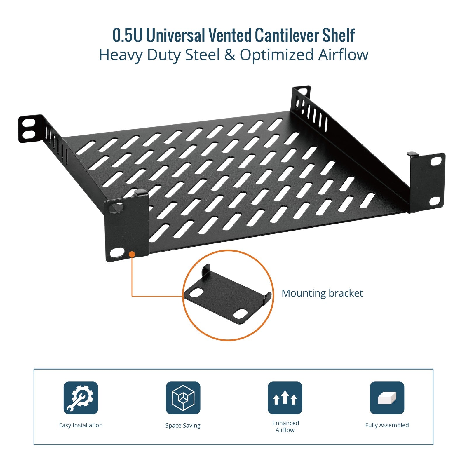 Tecmojo 2 Pack 0.5U Rack Mount Shelf for 10" Server Rack 7.87" Deep Vented Cantilever Tray