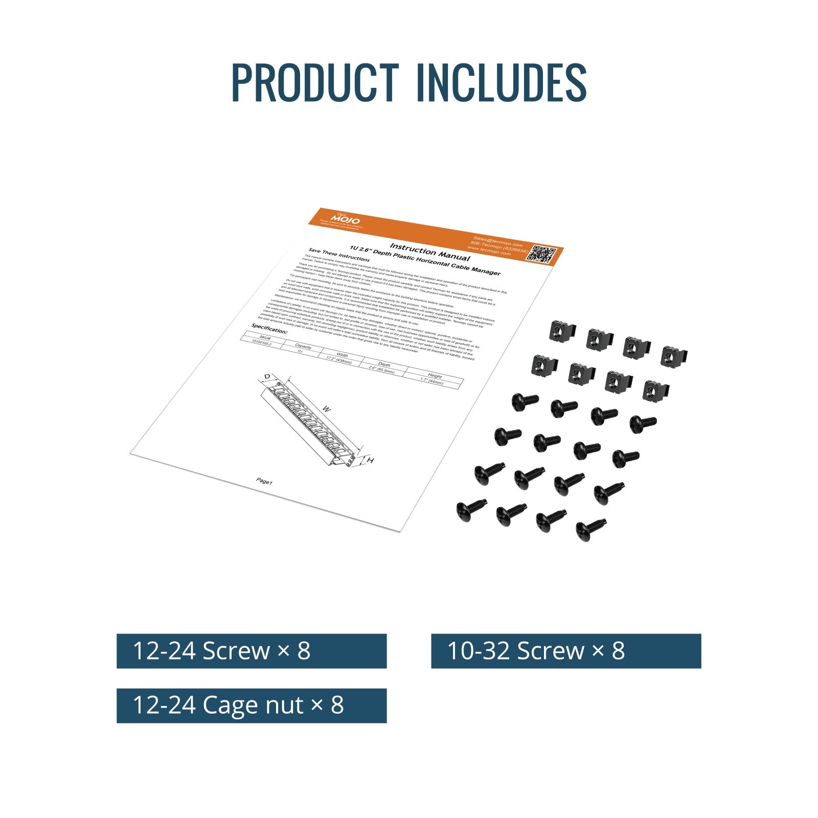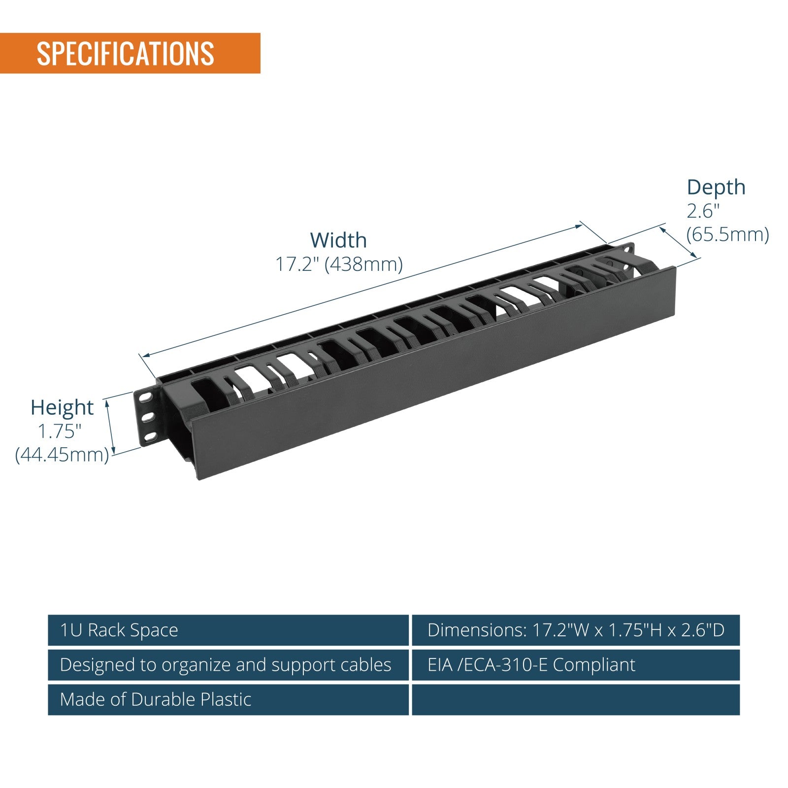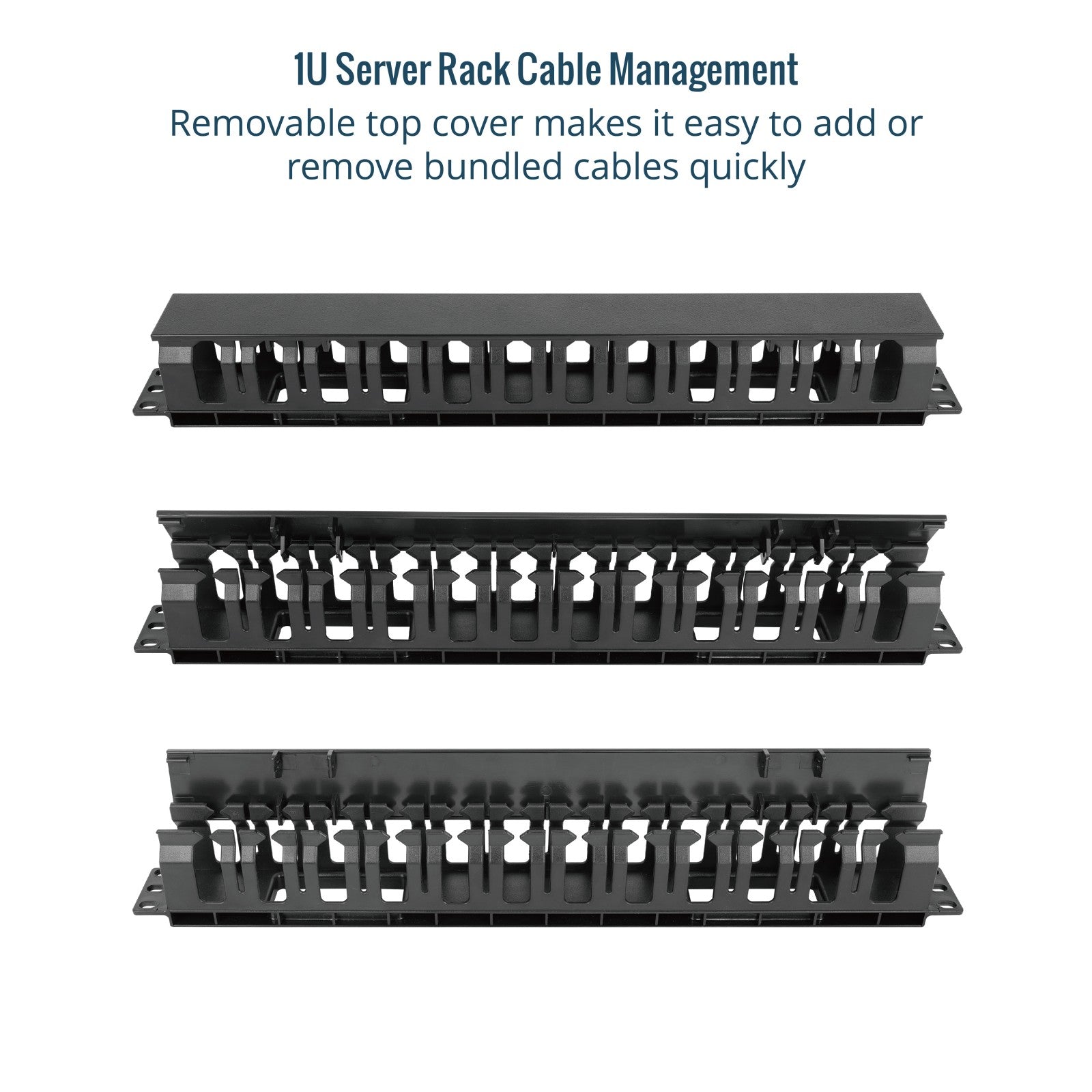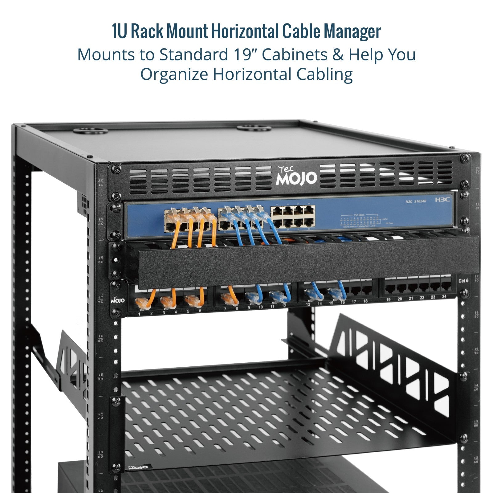 Tecmojo 1U 12 Slots 2.6“ Depth Plastic Rack Horizontal Cable Management with Cover for 19 inch Equipment(2 Pack)