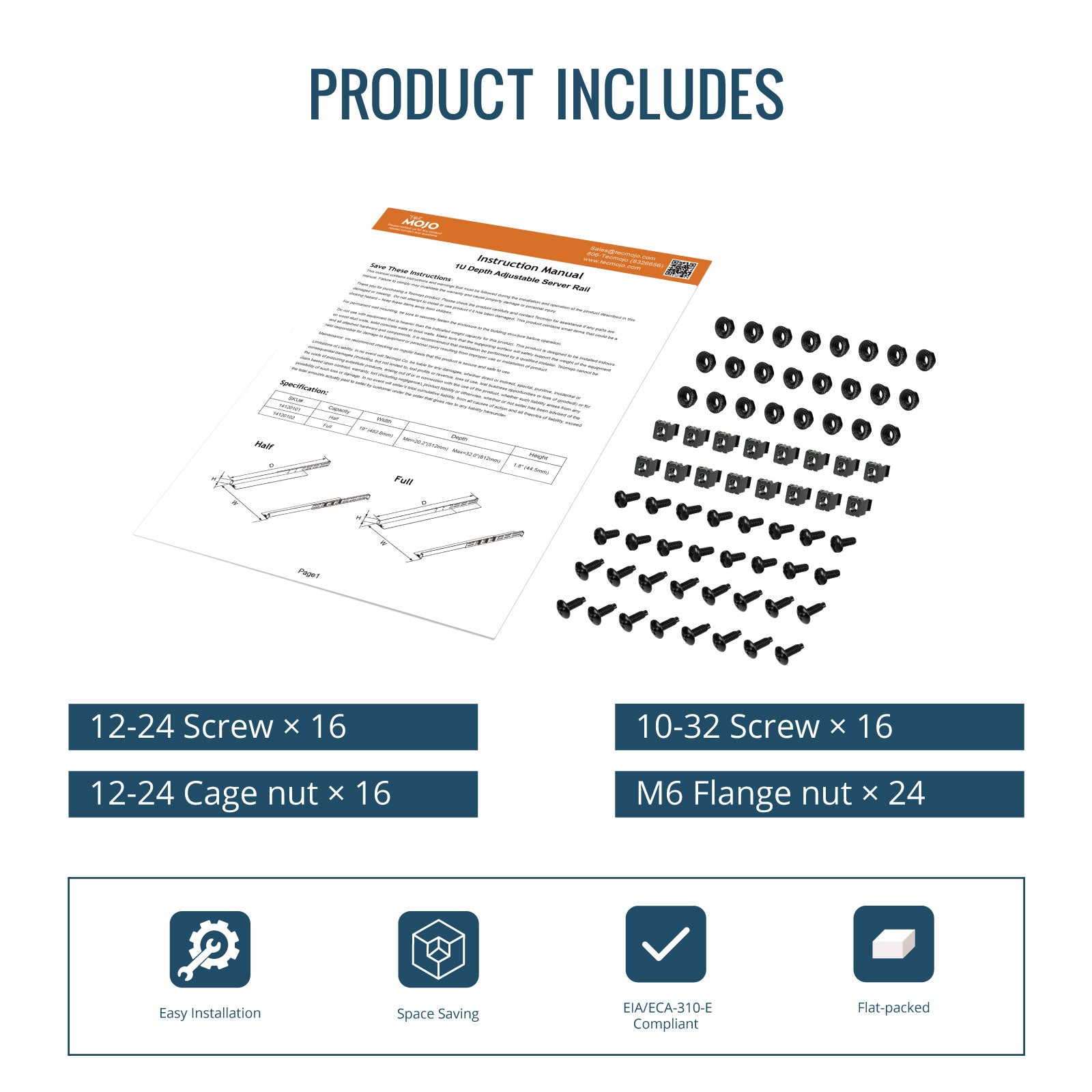 Tecmojo 1U 4-Post Server Rack Shelf Rail with 20.9"-32" Adjustable Depth-Half Support(2 Pack)