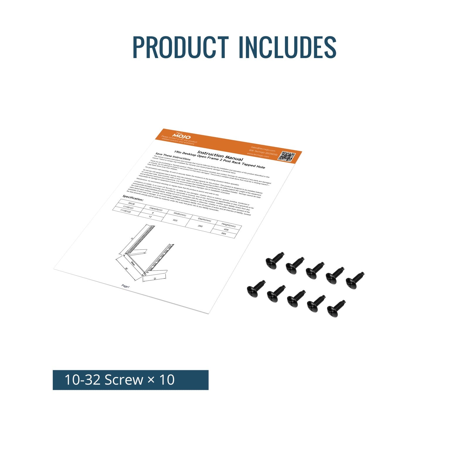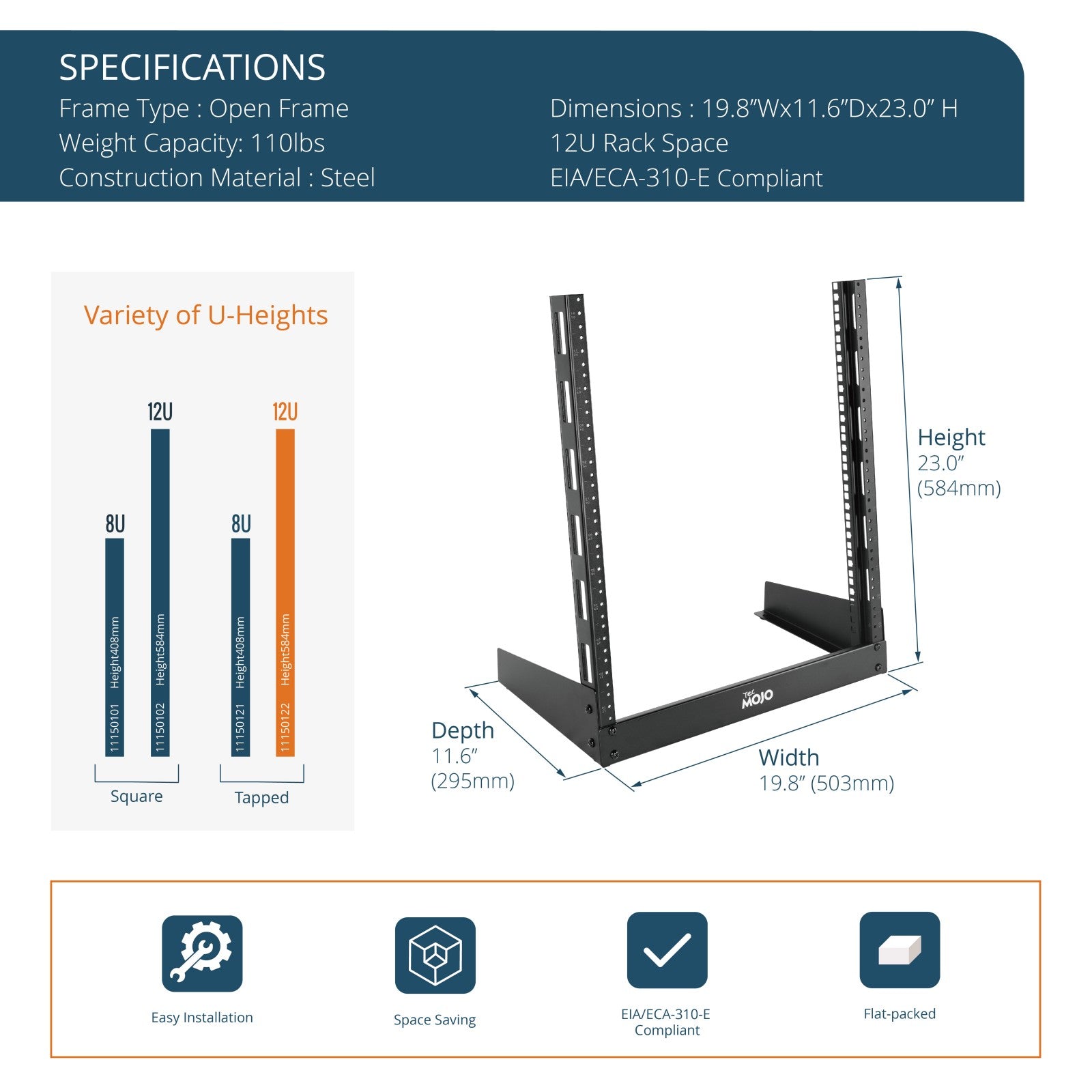 Tecmojo 12U Desktop Rack 2 Post Open Frame Rack for 19in Equipment(tapped hole)