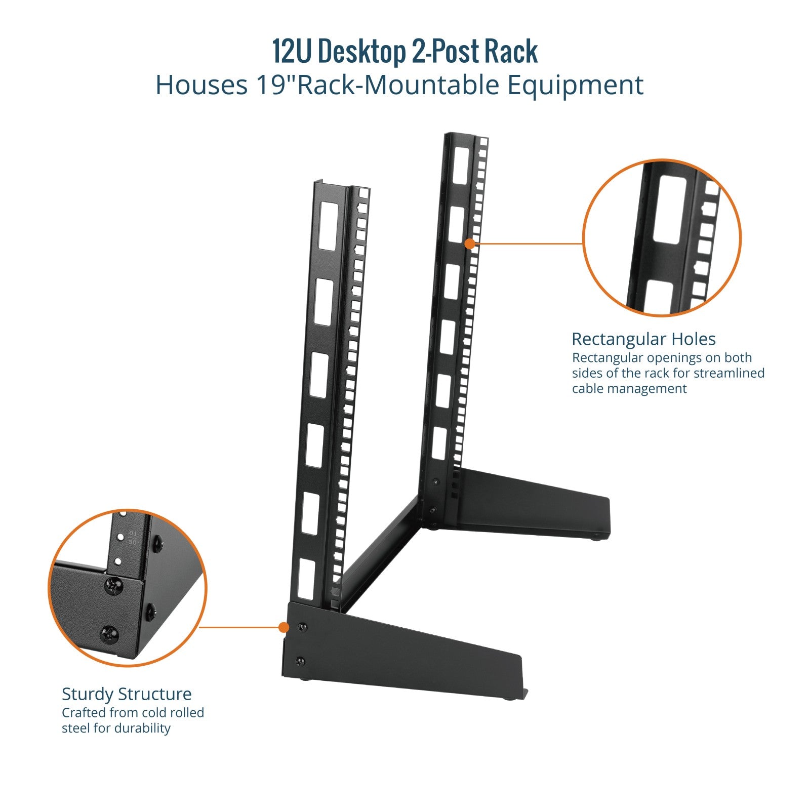 • Rectangular holes Rectangular openings on both sides of the rack for streamlined cable management.
