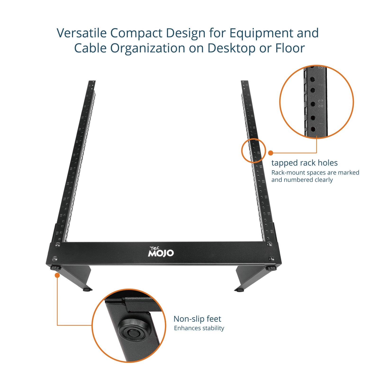 • Tapped rack holes Rack-mount spaces are marked and numbered clearly.