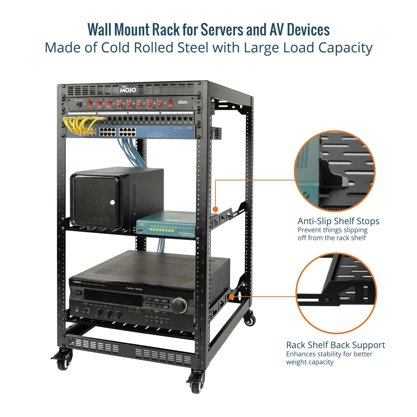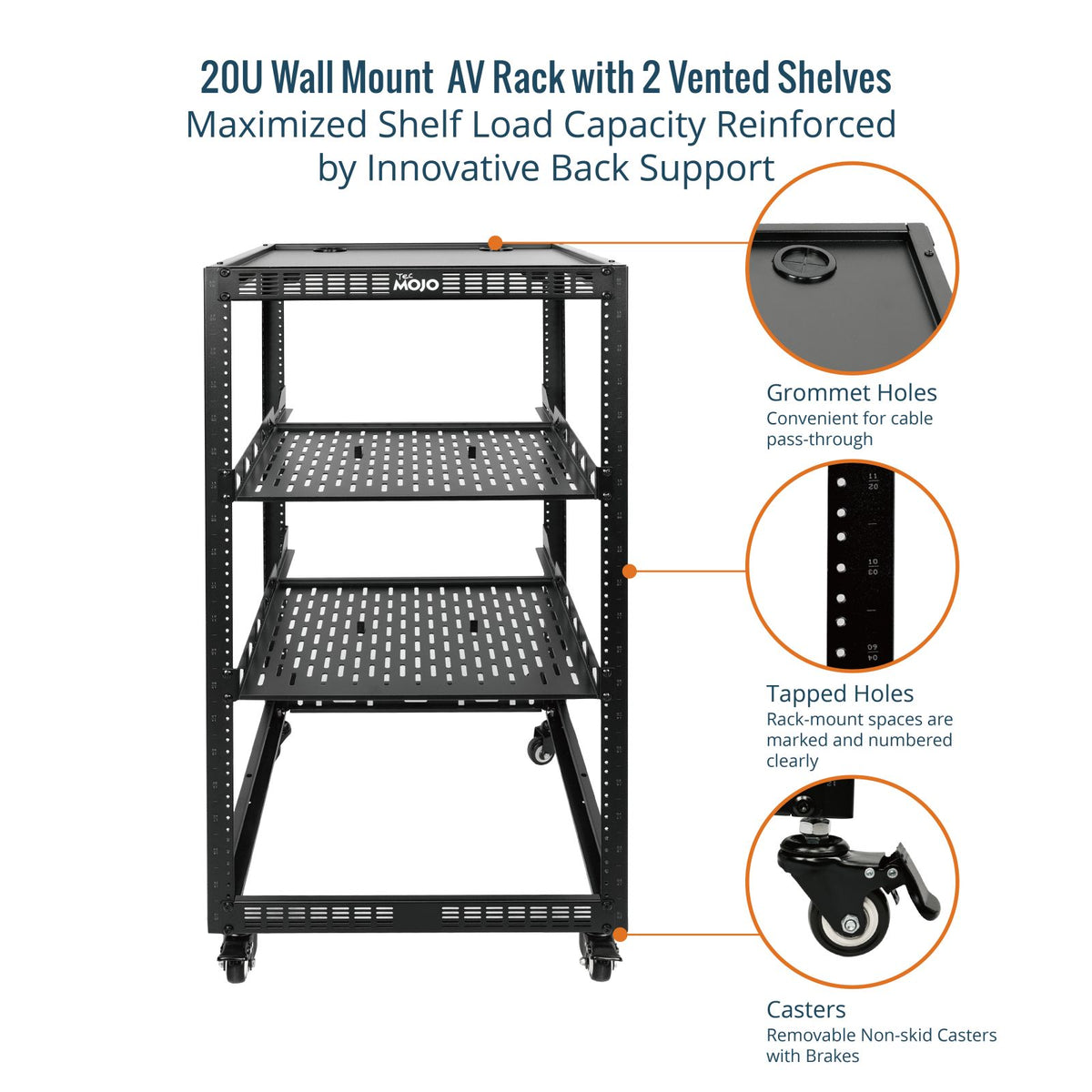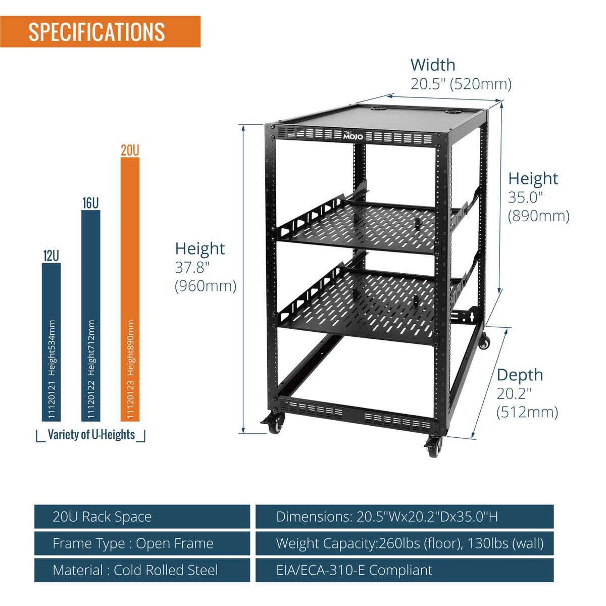 Tecmojo 20U Open Frame Network Rack with Casters for 19" Networking Device