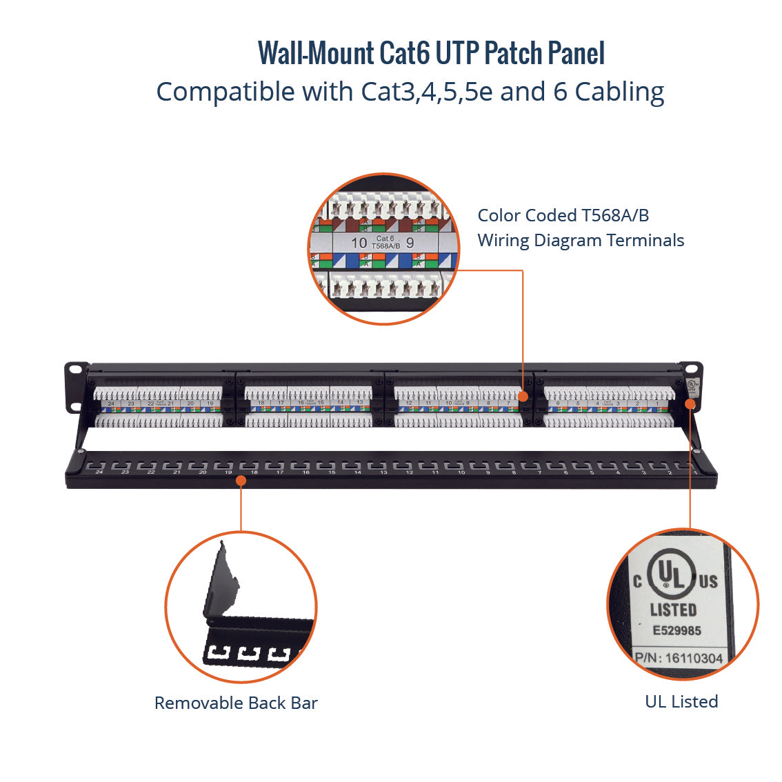 • Compatible with cat3,4,5,5e and 6 cabling.