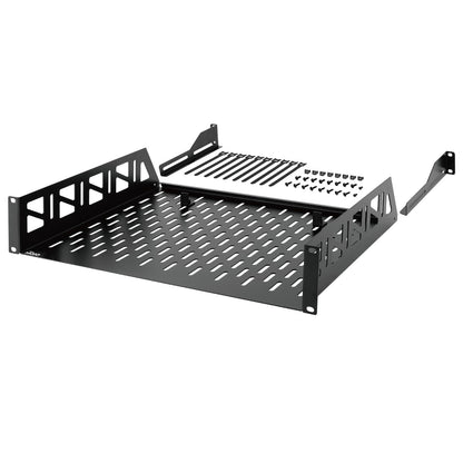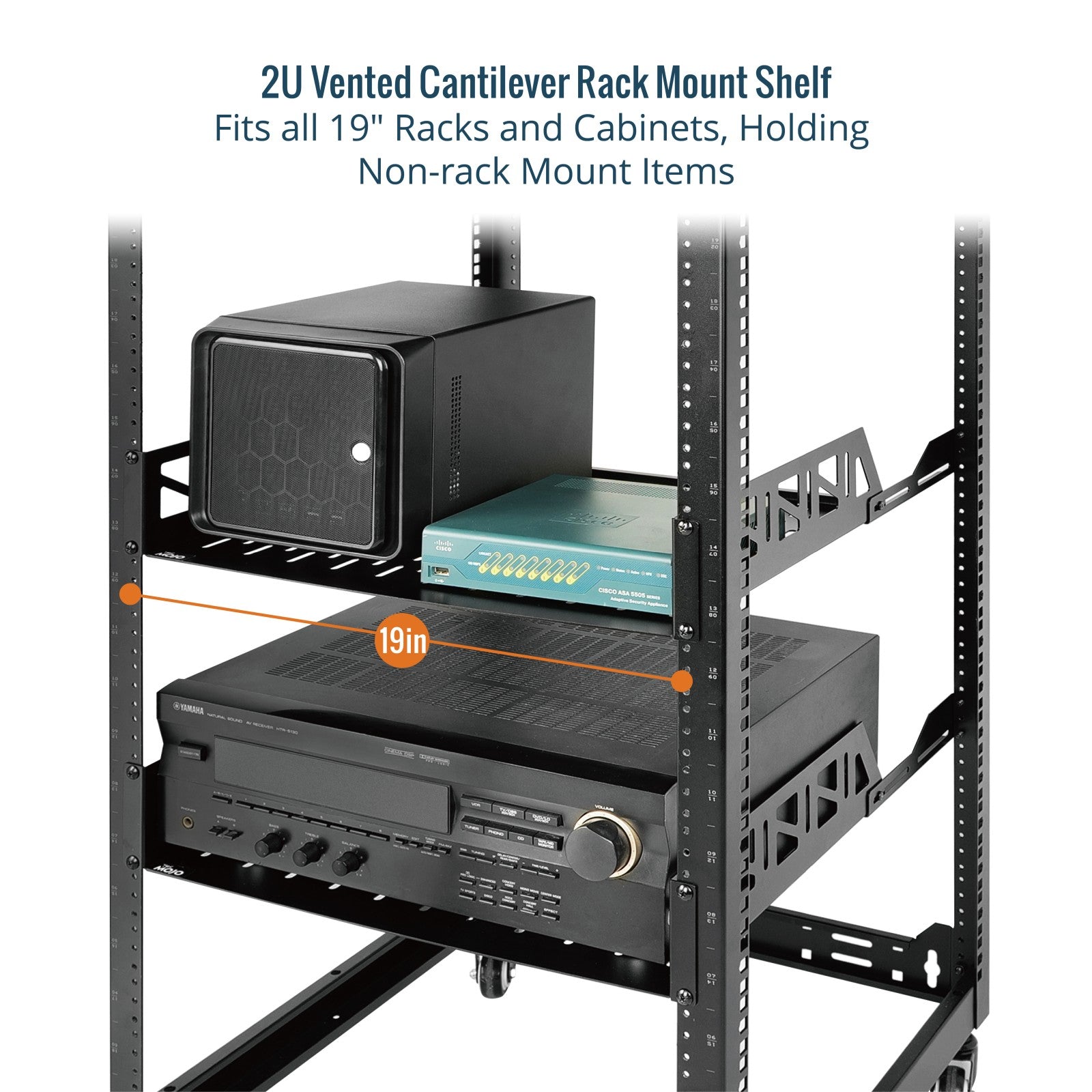 Tecmojo 2U 14 inch Depth Rack Shelf with Anti-Slip Stops for 19 inch Equipment-110lbs Weight Capacity