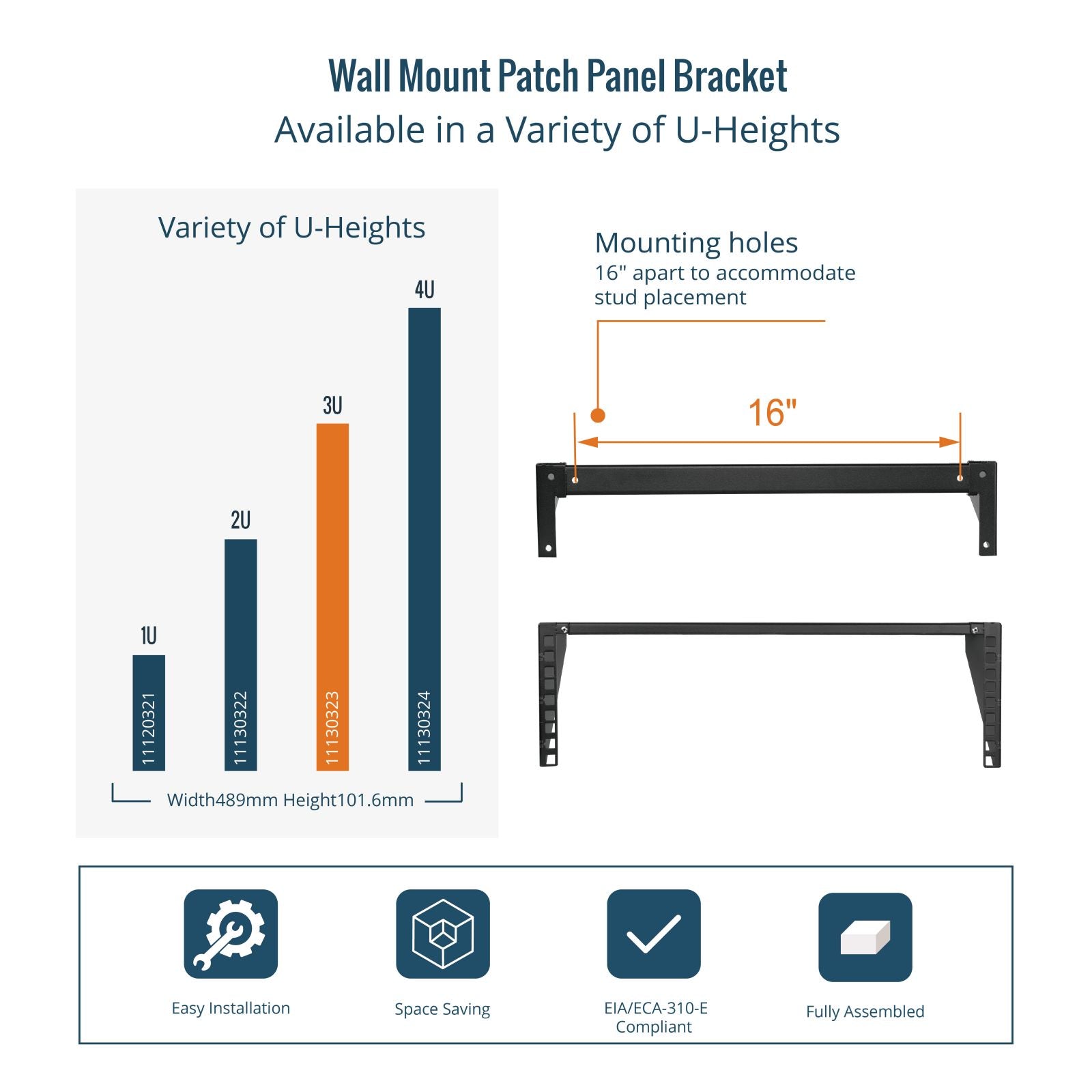Tecmojo 3U Foldable 19 inch Vertical Wall Mount Rack for Server and Network Equipment