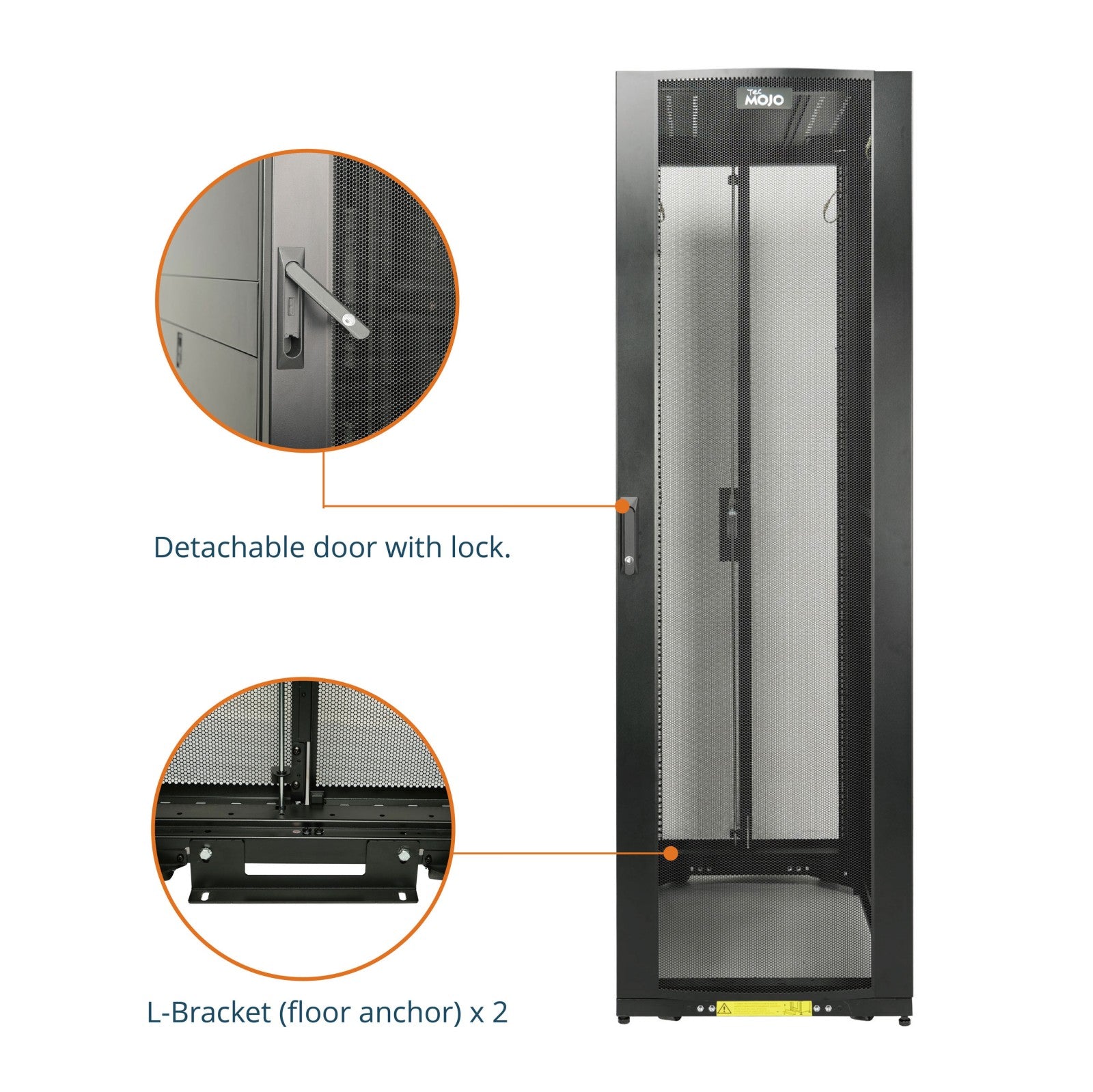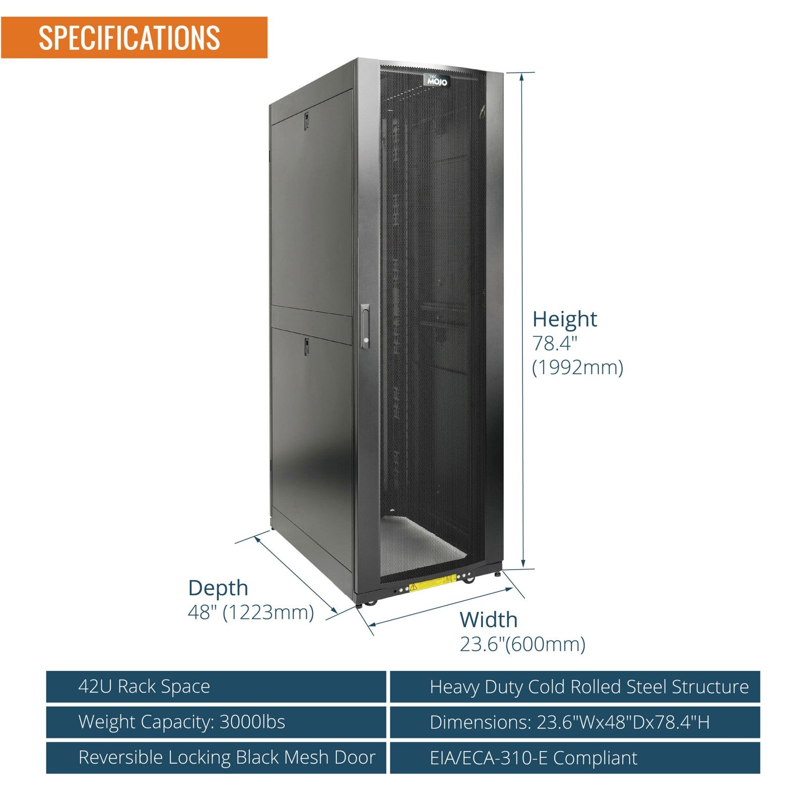 Tecmojo 42U Assembled 48inch Depth Black Server Cabinet with Casters-3000lbs Weight Capacity