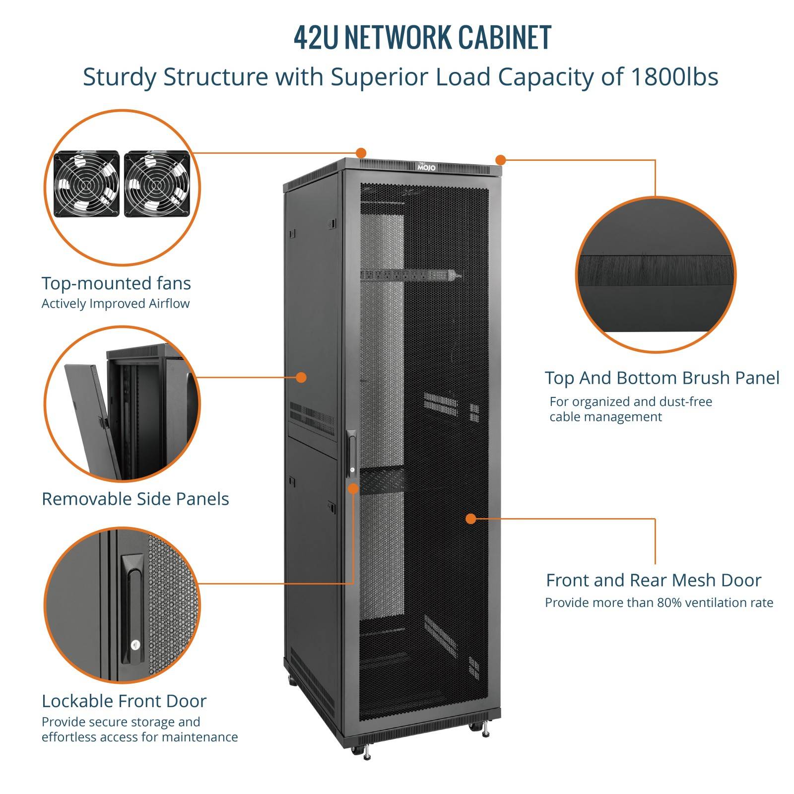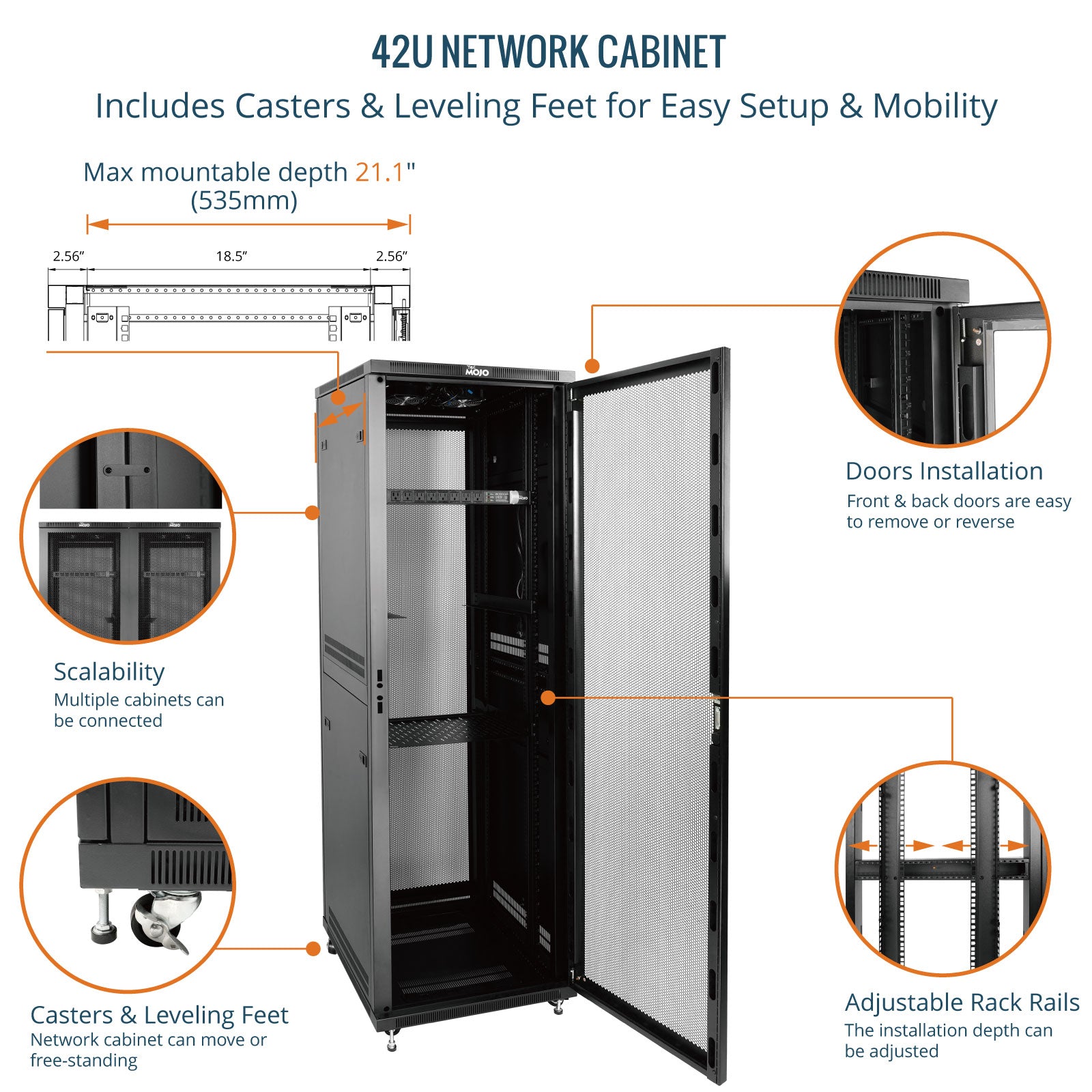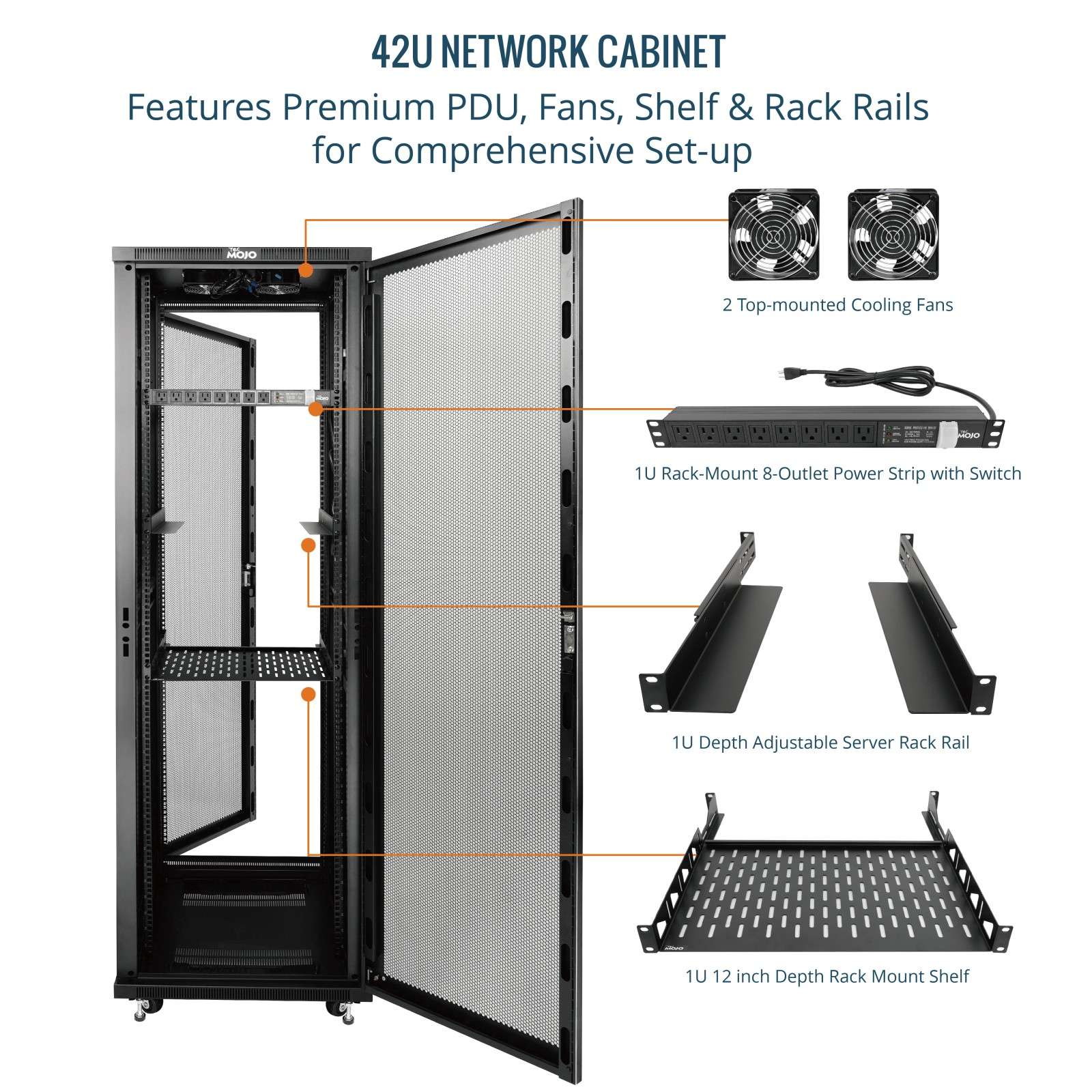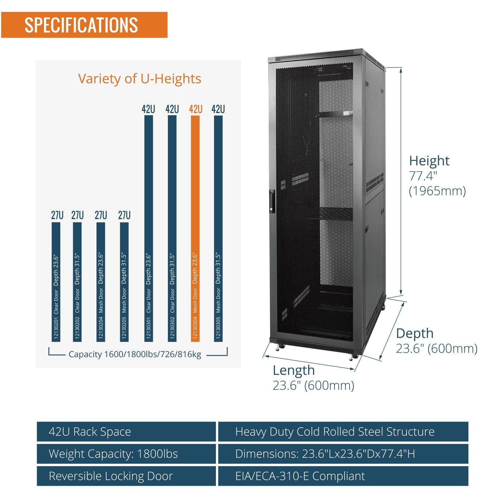 Tecmojo 42U 23.6 Inch Depth Mesh Door Server Cabinet with Casters-1800lbs Weight Capacity