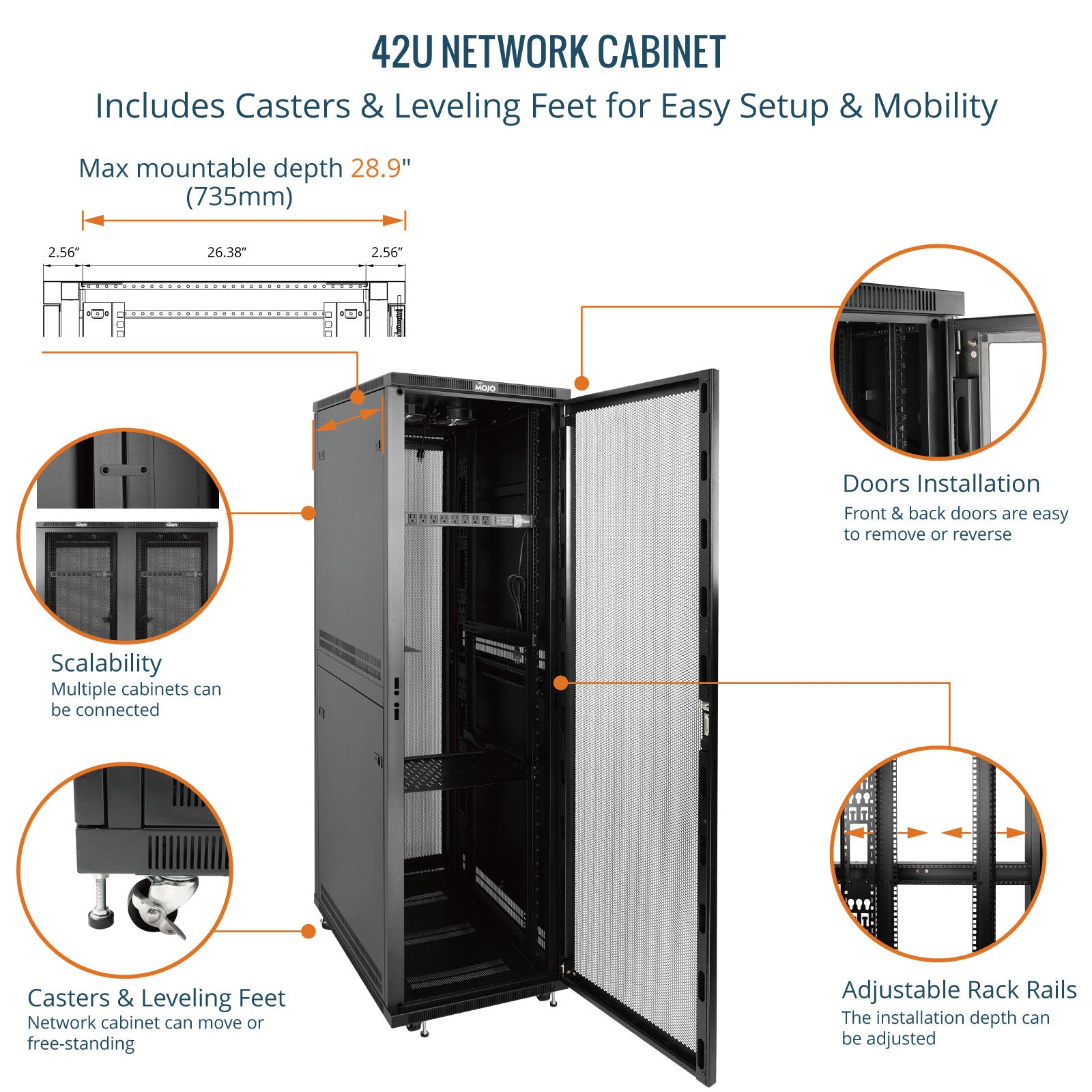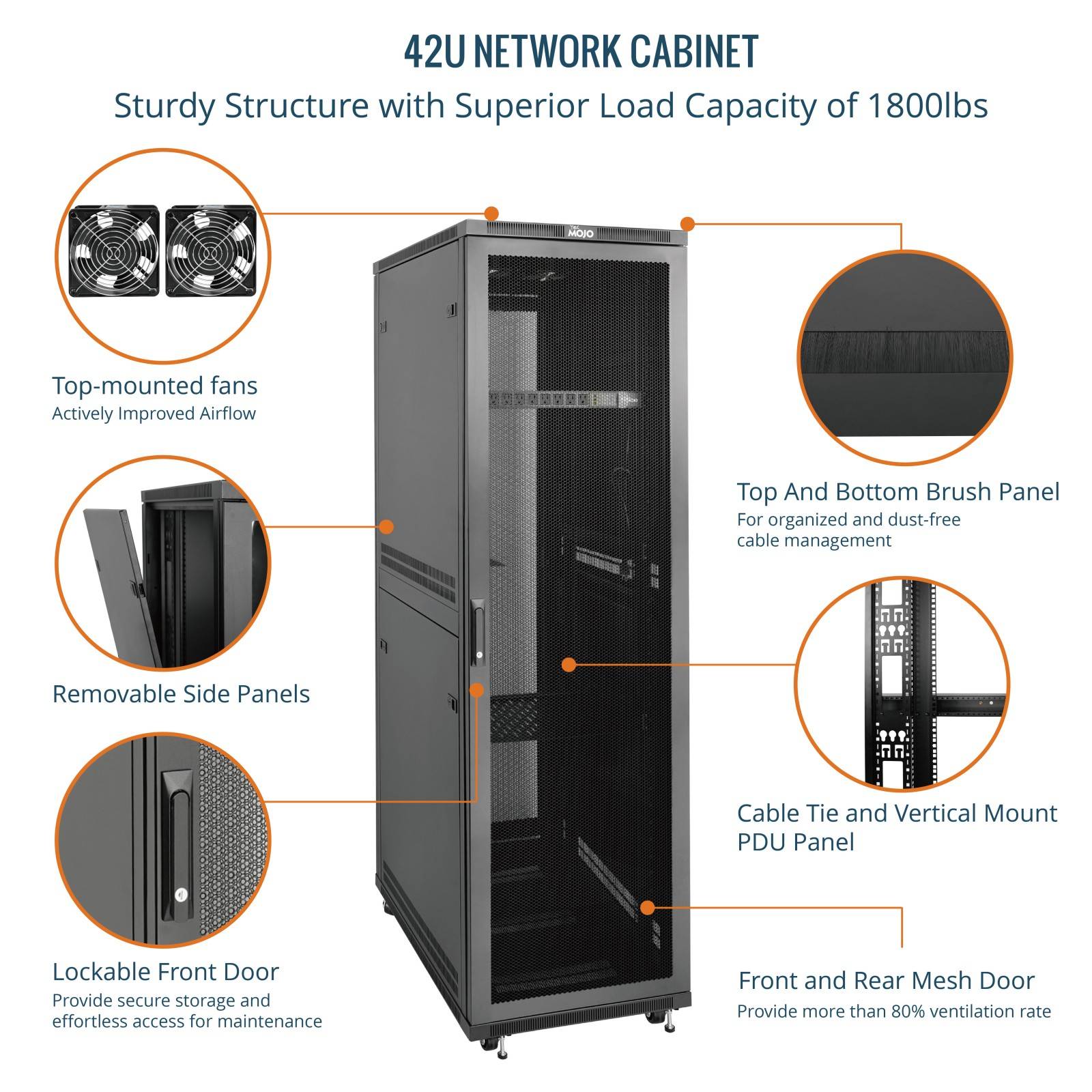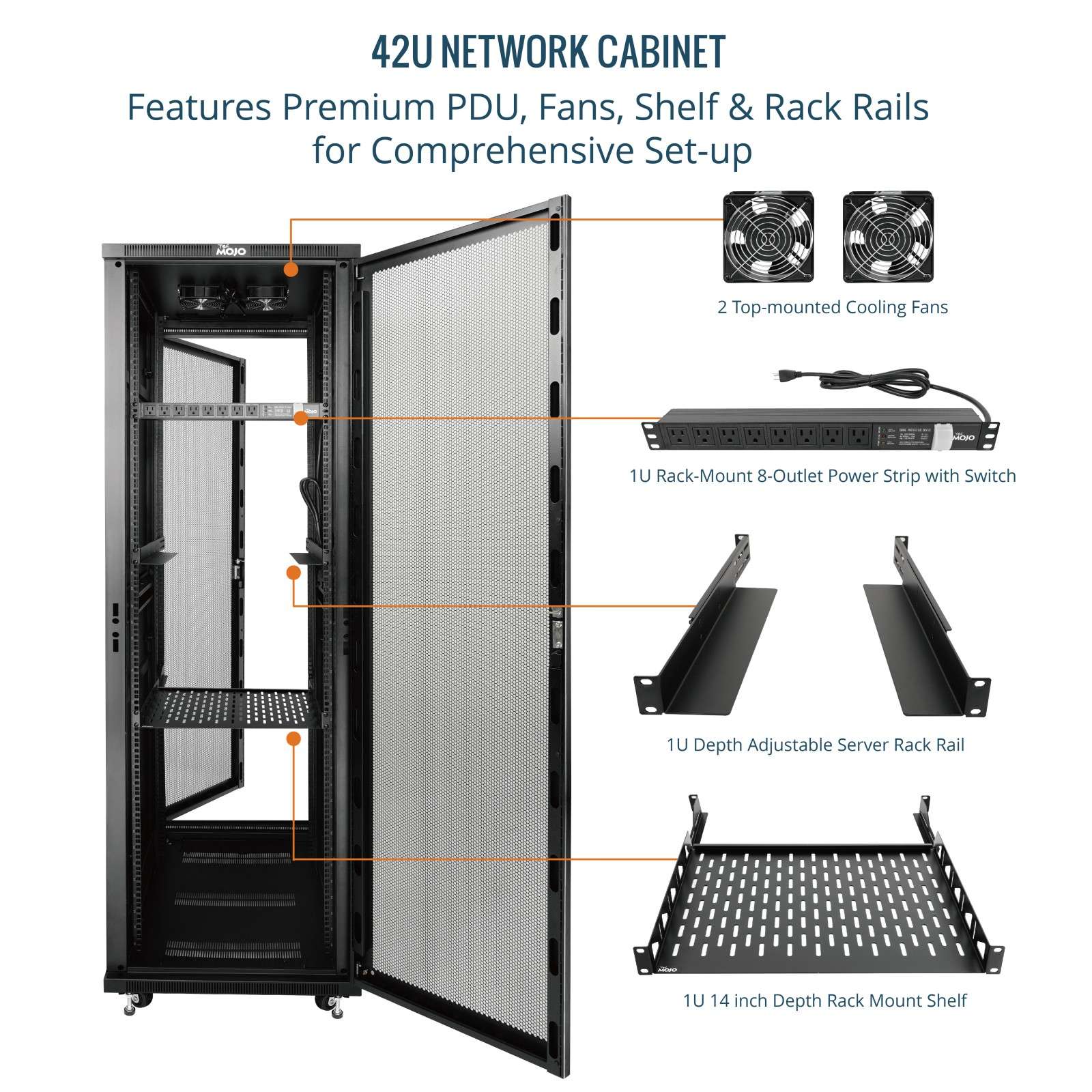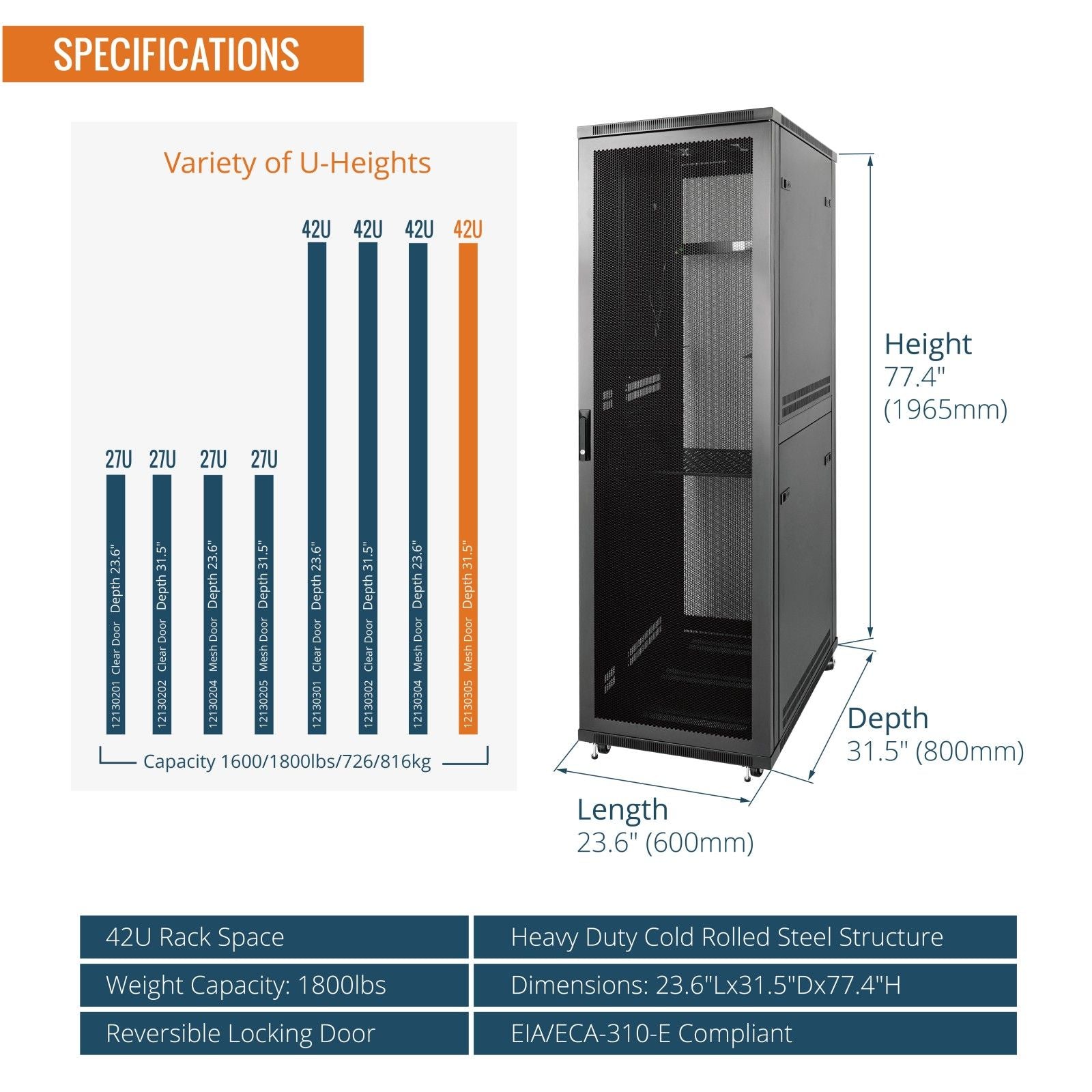 Tecmojo 42U 31.5 Inch Depth Mesh Door Server Cabinet with Casters-1800lbs Weight Capacity