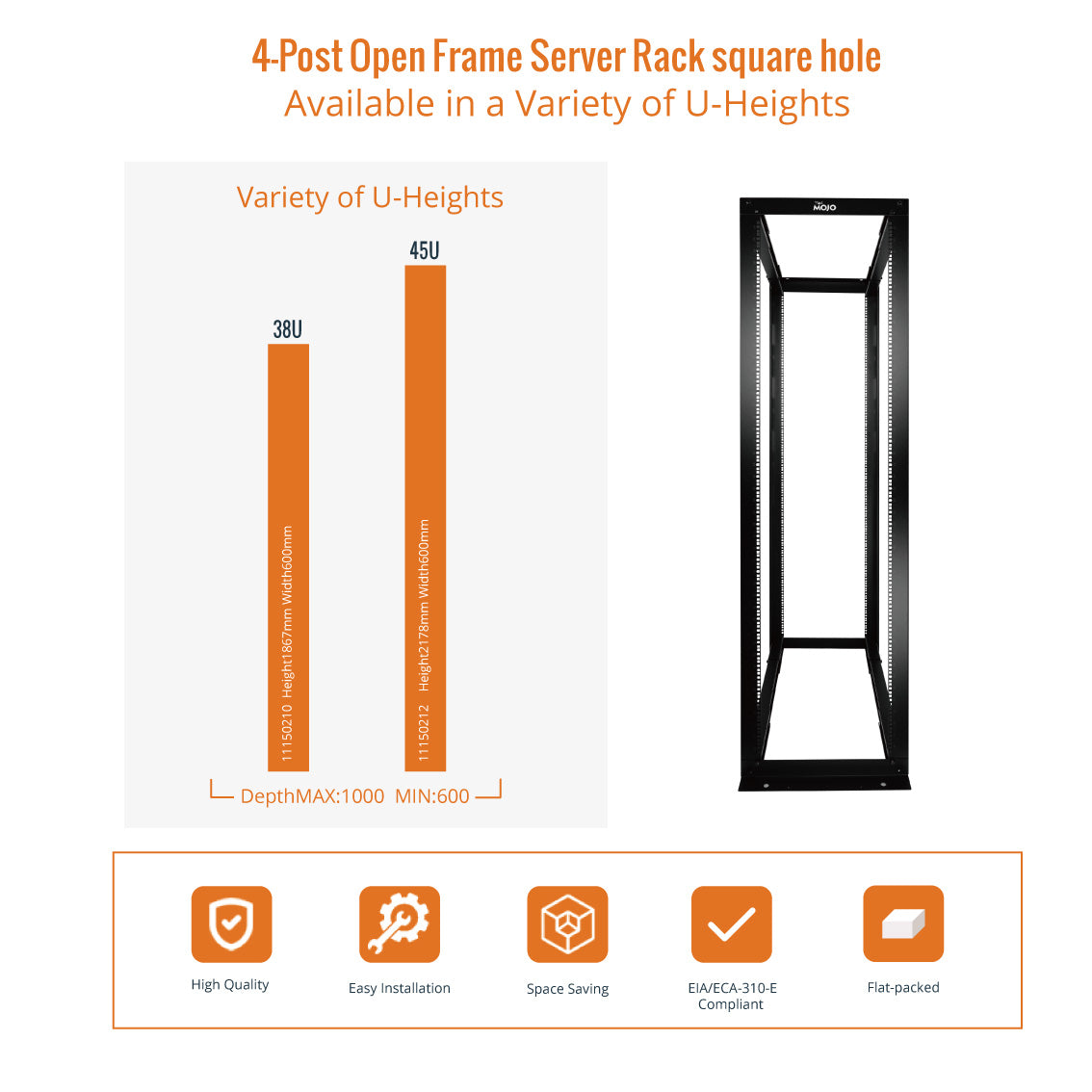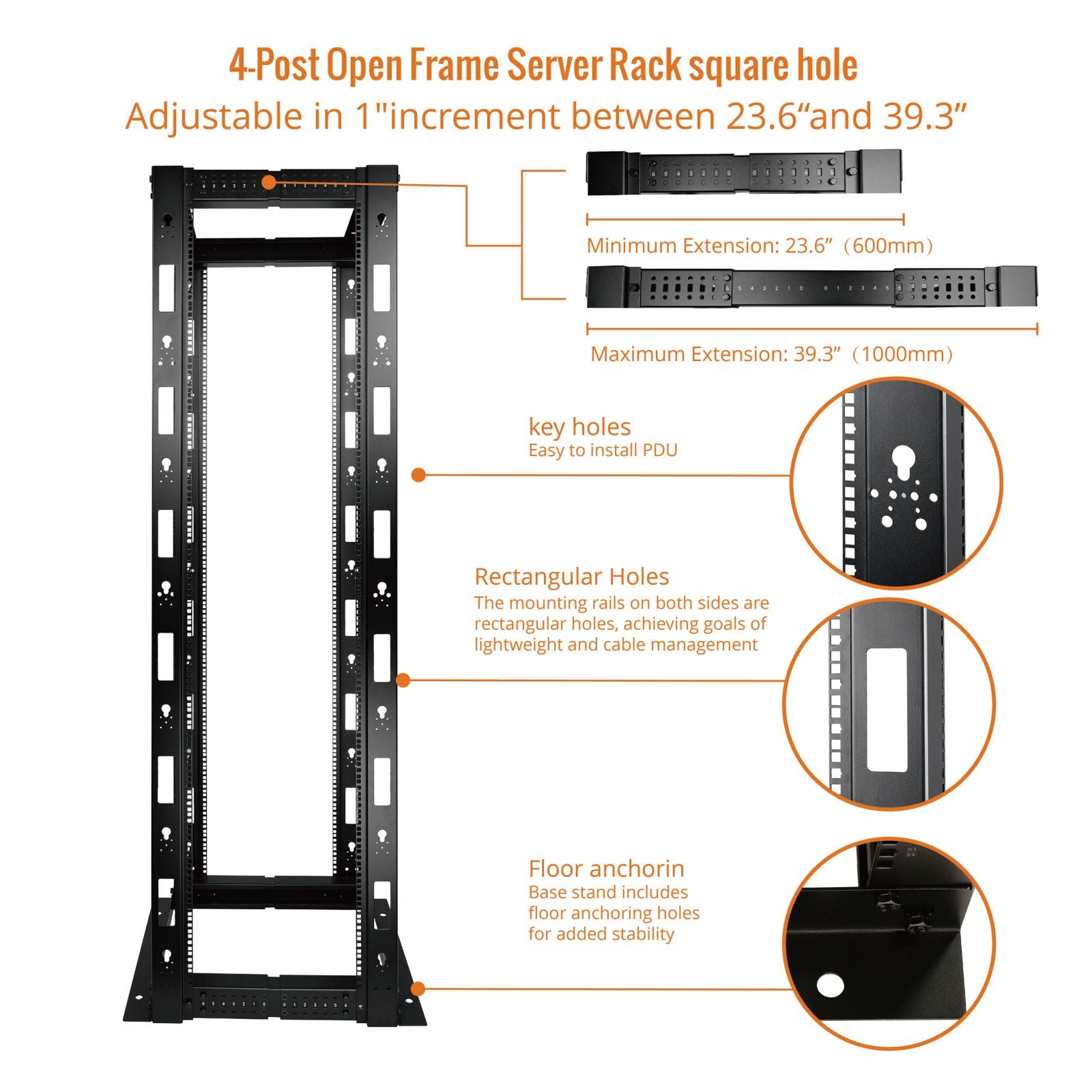 Tecmojo 45U 4 Post Adjustable Depth Open Frame Rack for 19 in Equipment(square hole)