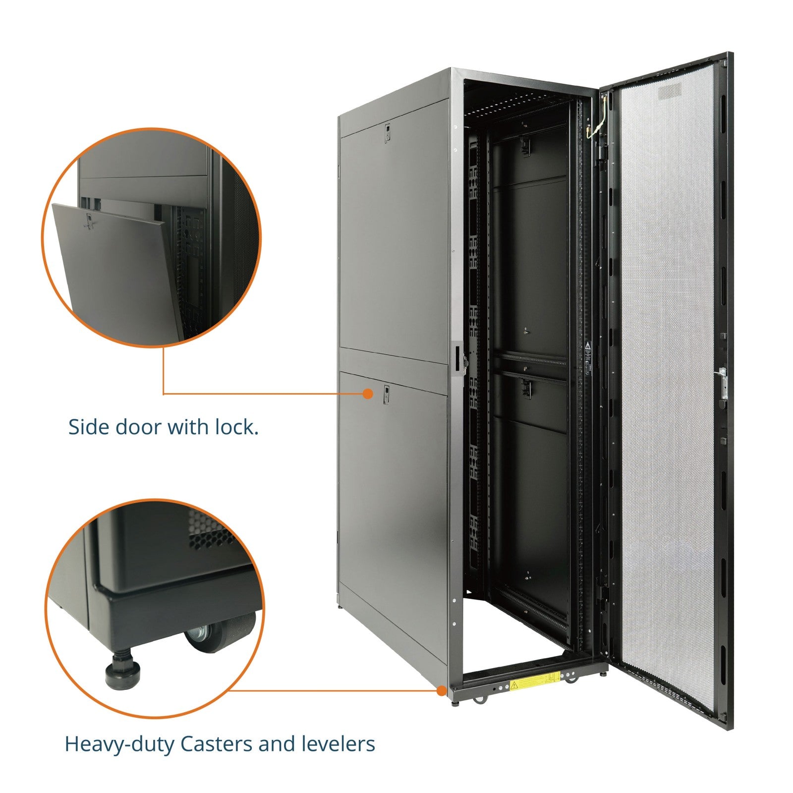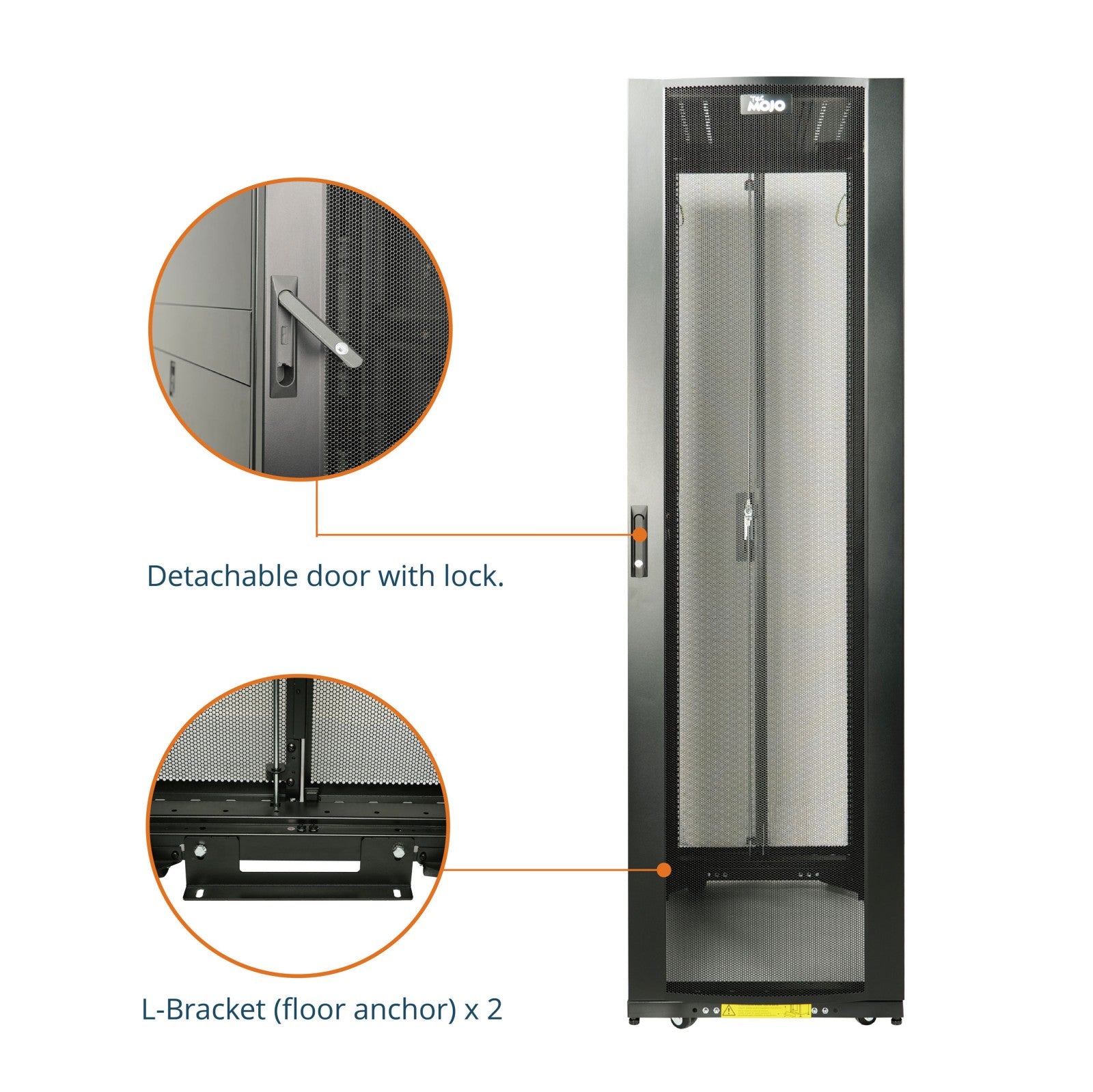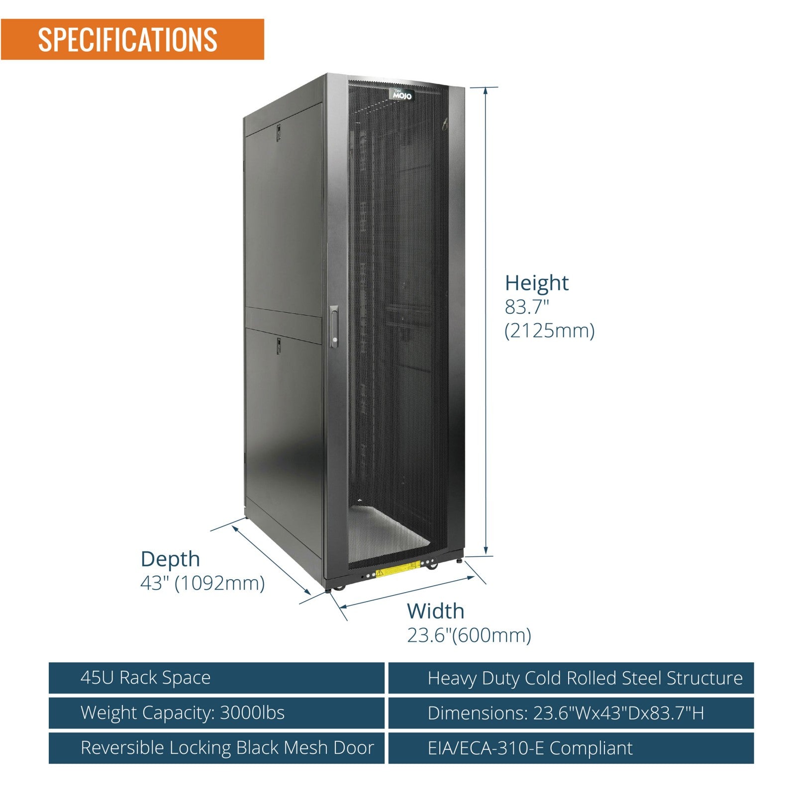 Tecmojo 45U Assembled 43inch Depth Black Server Cabinet with Casters-3000lbs Weight Capacity
