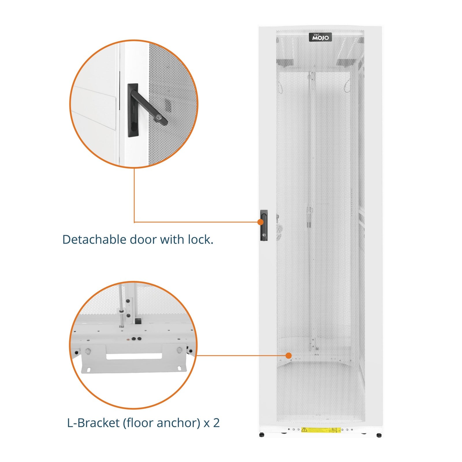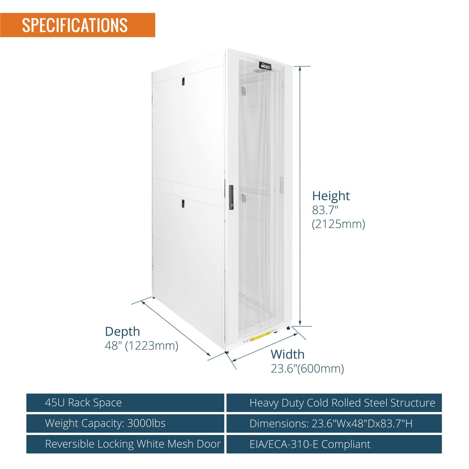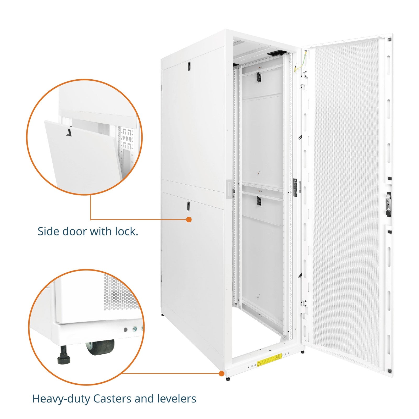 Tecmojo 45U Assembled 48inch Depth White Server Cabinet with Casters-3000lbs Weight Capacity