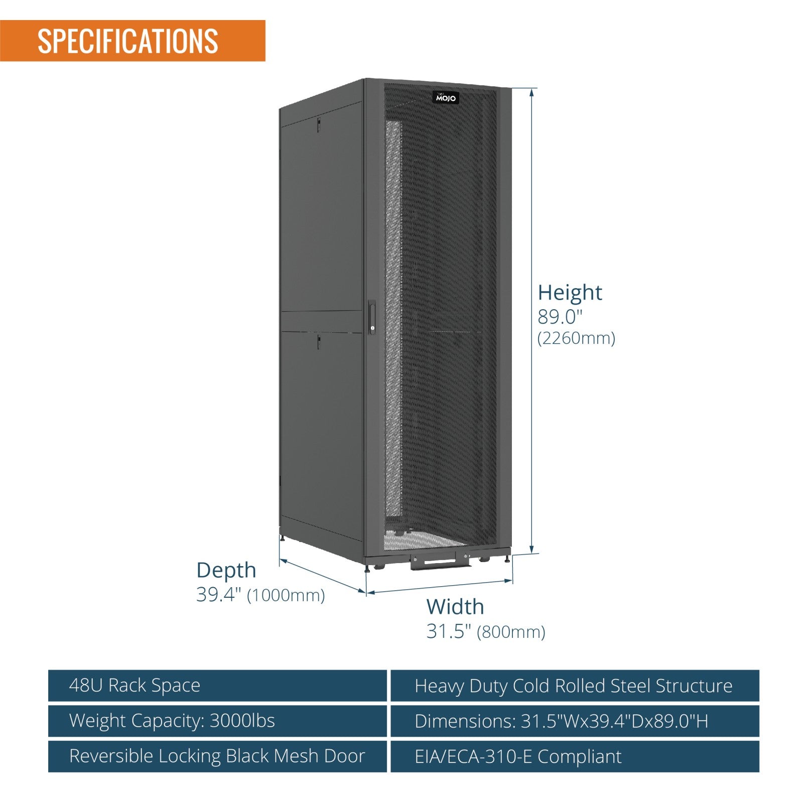Tecmojo 48U Assembled 39.4inch Depth Black Server Cabinet with Casters-3000lbs Weight Capacity