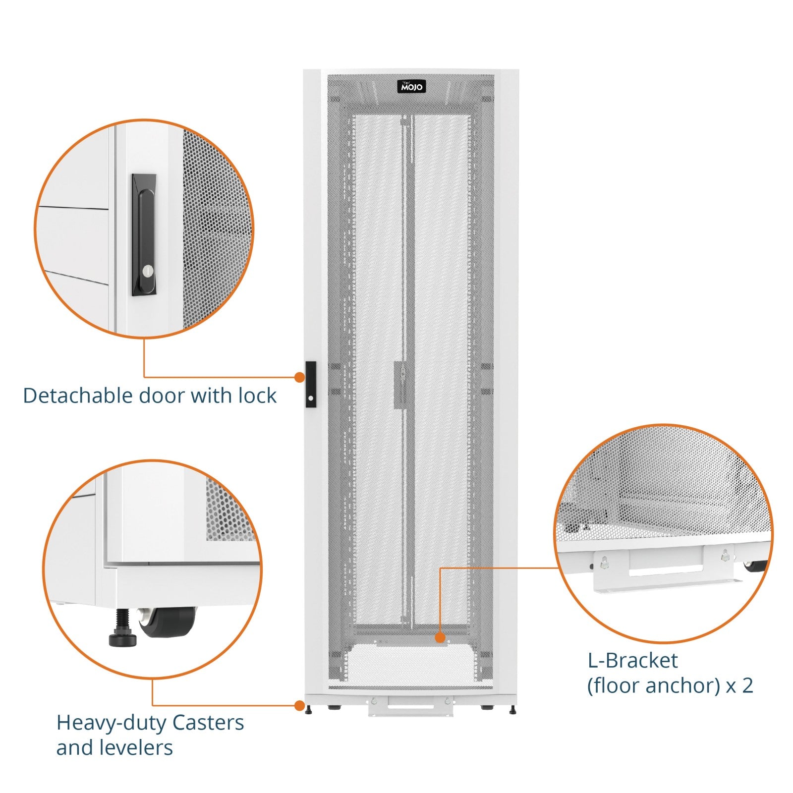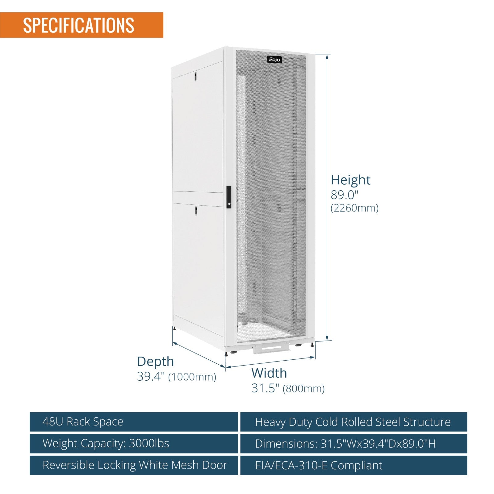 Tecmojo 48U Assembled 39.4inch Depth White Server Cabinet with Casters-3000lbs Weight Capacity