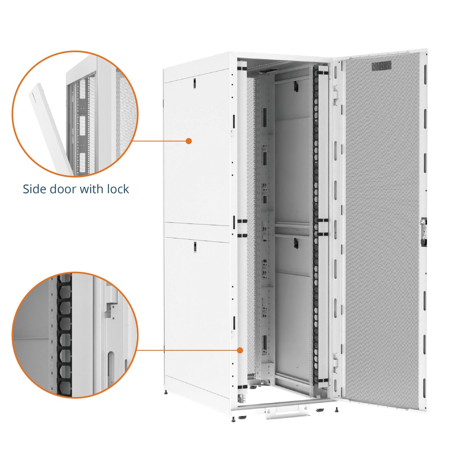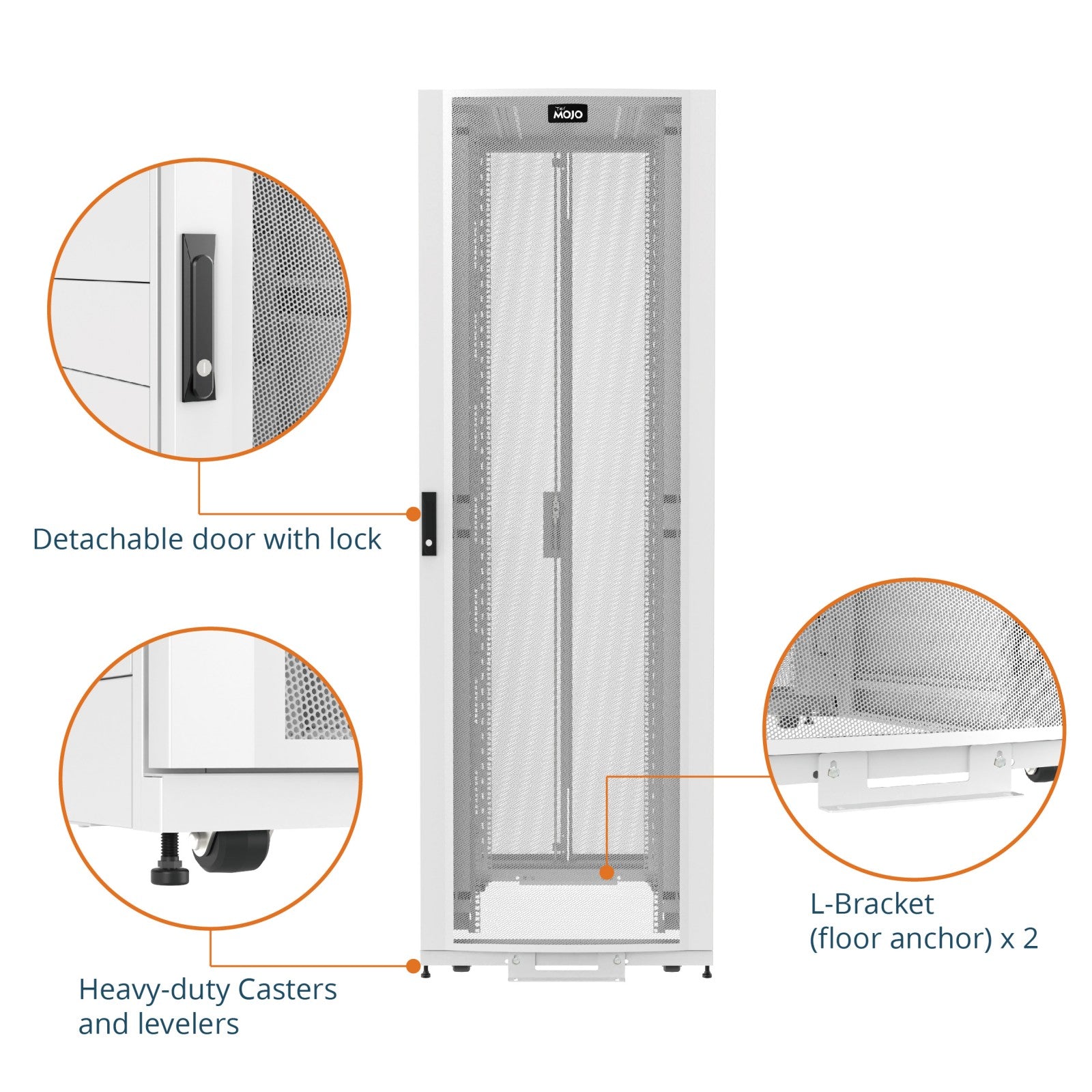 Tecmojo 48U Assembled 44.5inch Depth White Server Cabinet with Casters-3000lbs Weight Capacity