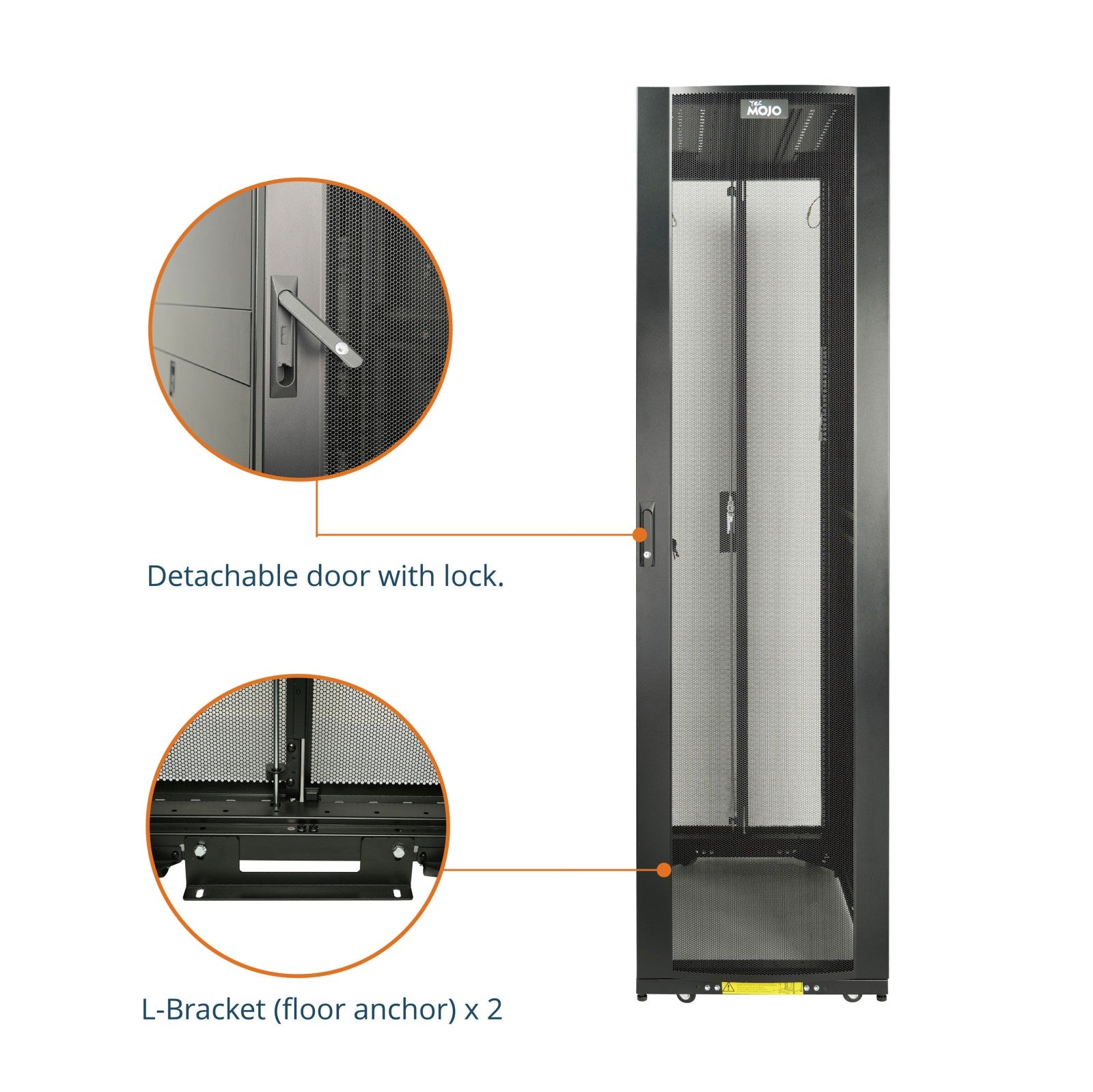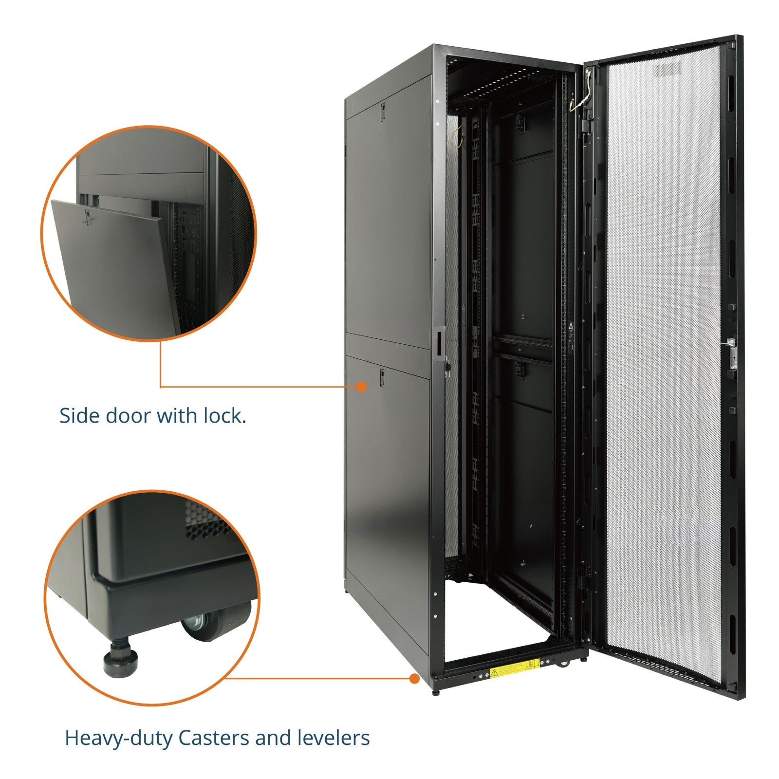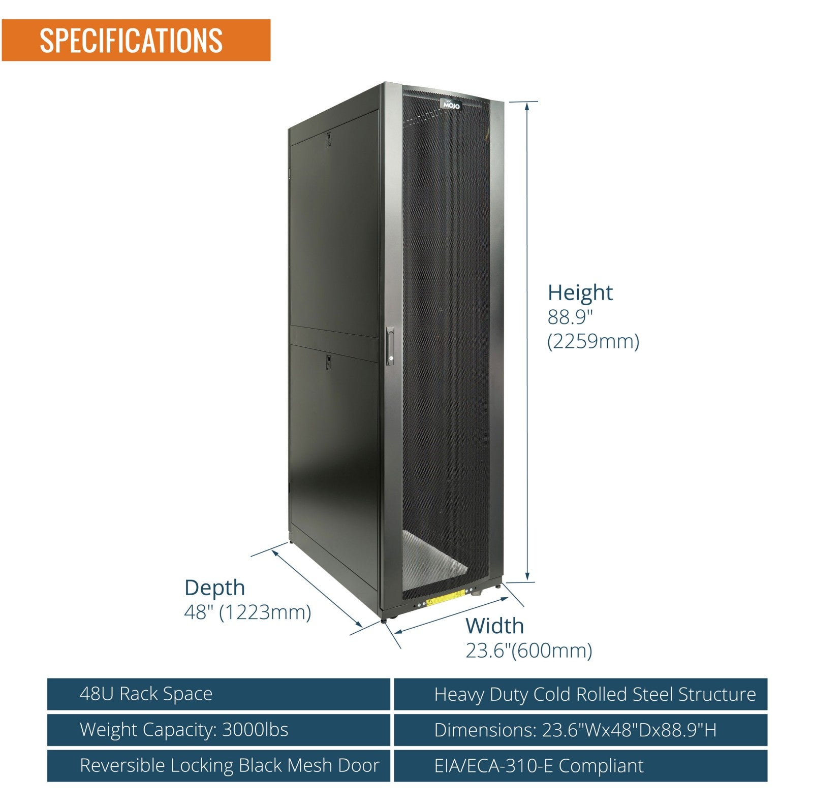 Tecmojo 48U Assembled 48inch Depth Black Server Cabinet with Casters-3000lbs Weight Capacity
