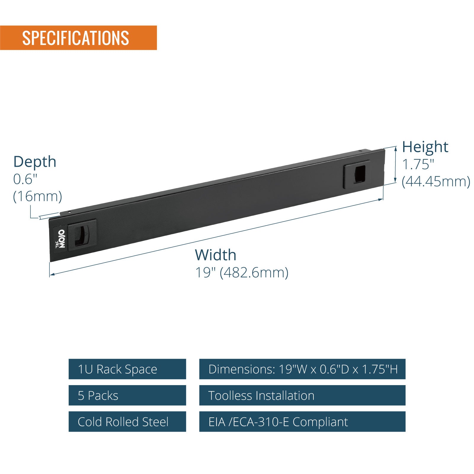 Tecmojo 1U Toolless Mounting Cold Rolled Steel Rack Blank Panel for 19 inch Equipment(5 Pack)