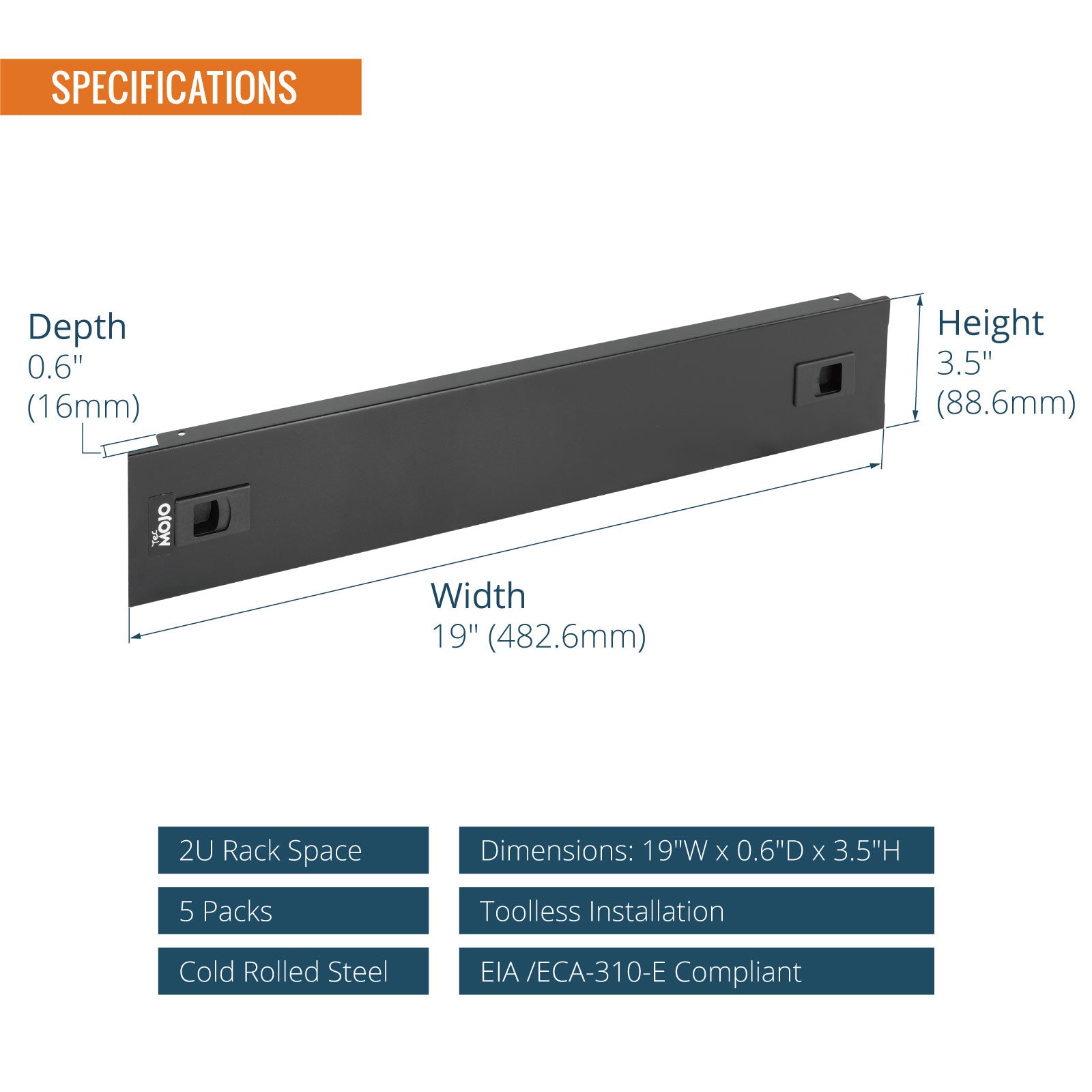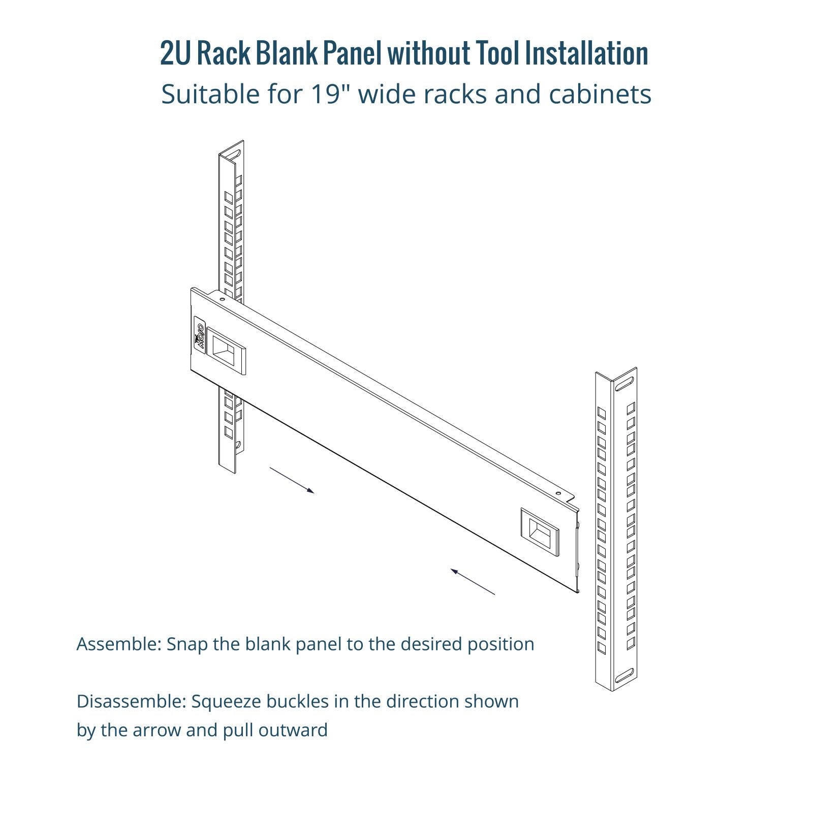 Tecmojo 2U Toolless Mounting Cold Rolled Steel Rack Blank Panel for 19 inch Equipment(5 Pack)