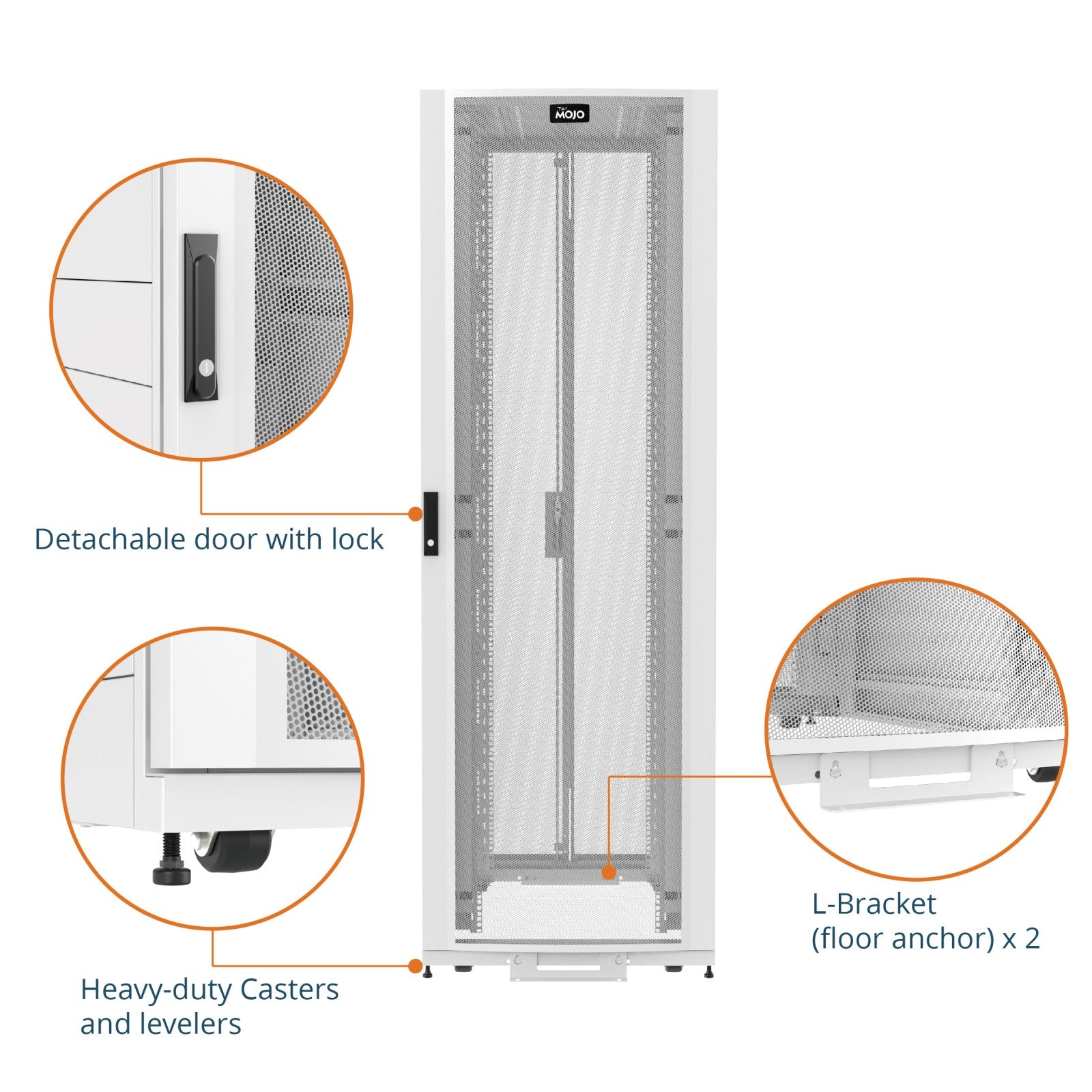 Tecmojo 52U Assembled 39.4inch Depth White Server Cabinet with Casters-3000lbs Weight Capacity